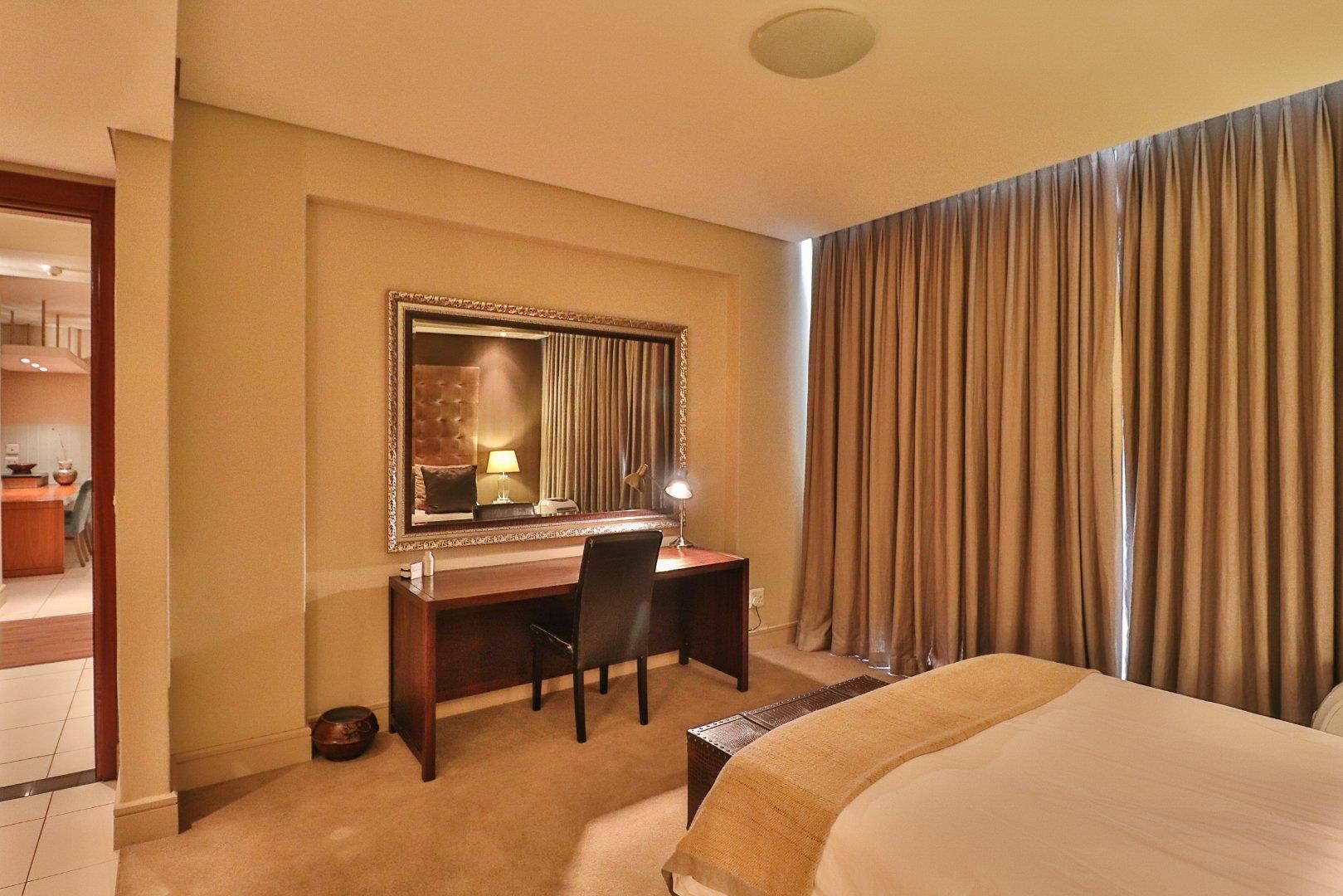 Luxury at its best. This ultra-modern north-facing apartment comes fully furnished. The unit offers 2 spacious bedrooms with the main en-suite open plan full bathroom and the second bathroom with a shower. Beautiful open plan kitchen that leads onto lounge/dining room. There is a balcony with the most beautiful and breathtaking views of the north that leads off the main bedroom.