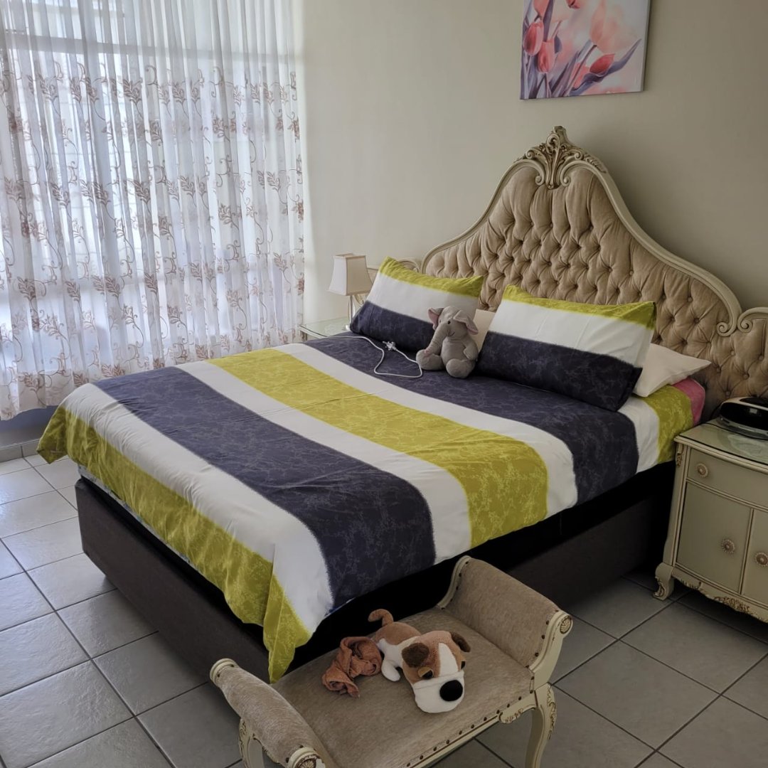 The generously sized main bedroom includes built-in cupboards, and additional linen cupboards are in the passage! Located on the 13th floor of a secure, well-maintained complex with 24/7 guards and boomed access, enjoy peace of mind! Amenities include two pools, a braai area, and ample kids' play space! Benefit from one secure underground parking, visitor parking, and elevators (with generator backup)! The complex also features a central boiler for continuous hot water supply! Walking distance to Bedford Gardens Hospital, Eastgate, and Bedford Centre! Perfect for young families, first-time buyers, investors, or students!
