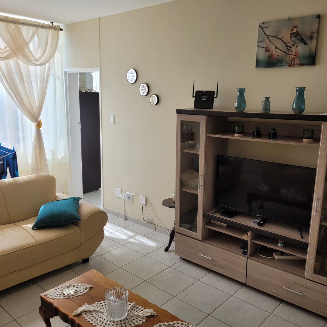 Experience modern living at its finest in this sun-drenched, move-in-ready apartment boasting breathtaking panoramic views! This spacious gem offers incredible potential, featuring neatly painted walls and stylish tiling throughout! Enjoy a well-fitted kitchen with ample cupboards, an electric stove, and oven, a neat bathroom, and a large lounge perfect for family gatherings, which opens onto an enclosed balcony ideal as a second bedroom!