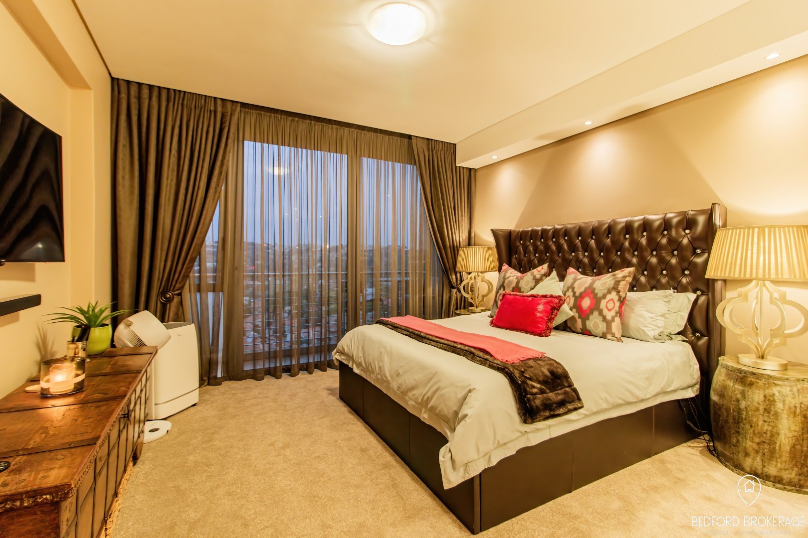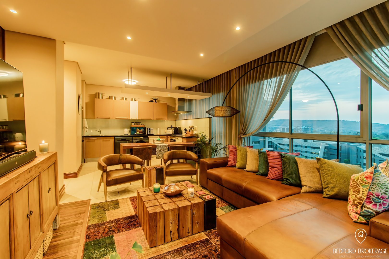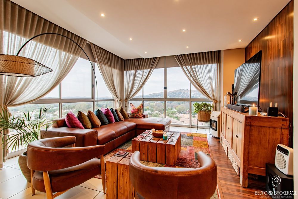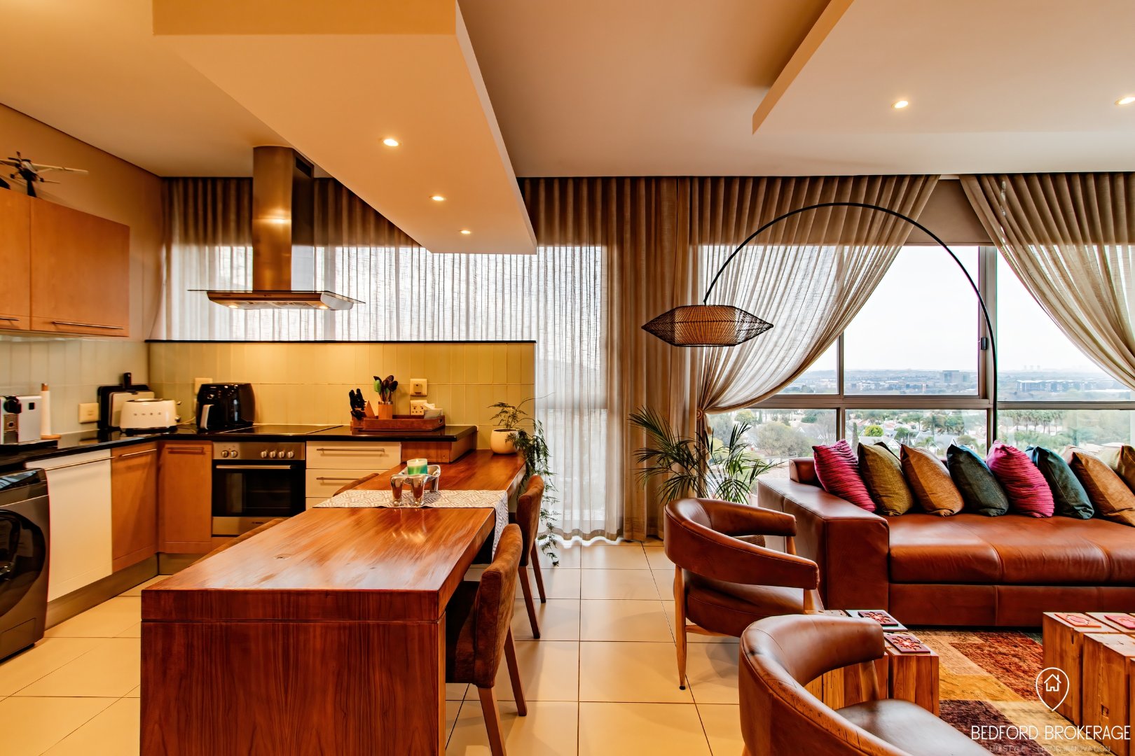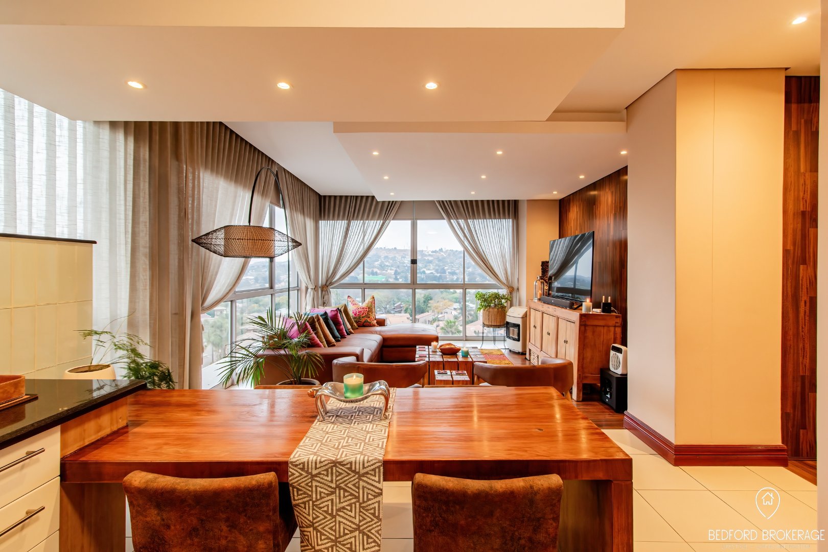 Bedford Brokerage is proud to introduce you to this one of a kind apartment. Step into the epitome of elegance with this one-of-a-kind corner apartment at the prestigious Bedford Apartments. Fully furnished with custom-made pieces and luxury finishes, this residence offers a seamless blend of sophistication and comfort. Every detail has been considered, from Weylandts designer furniture to state-of-the-art Smeg appliances, while both bedrooms feature Smart TVs and the lounge is enhanced by a large Smart TV paired with a premium soundbar. The free-flowing kitchen and dining area seamlessly connect to the lounge, creating an inviting open-plan living space with large windows and panoramic Johannesburg views.