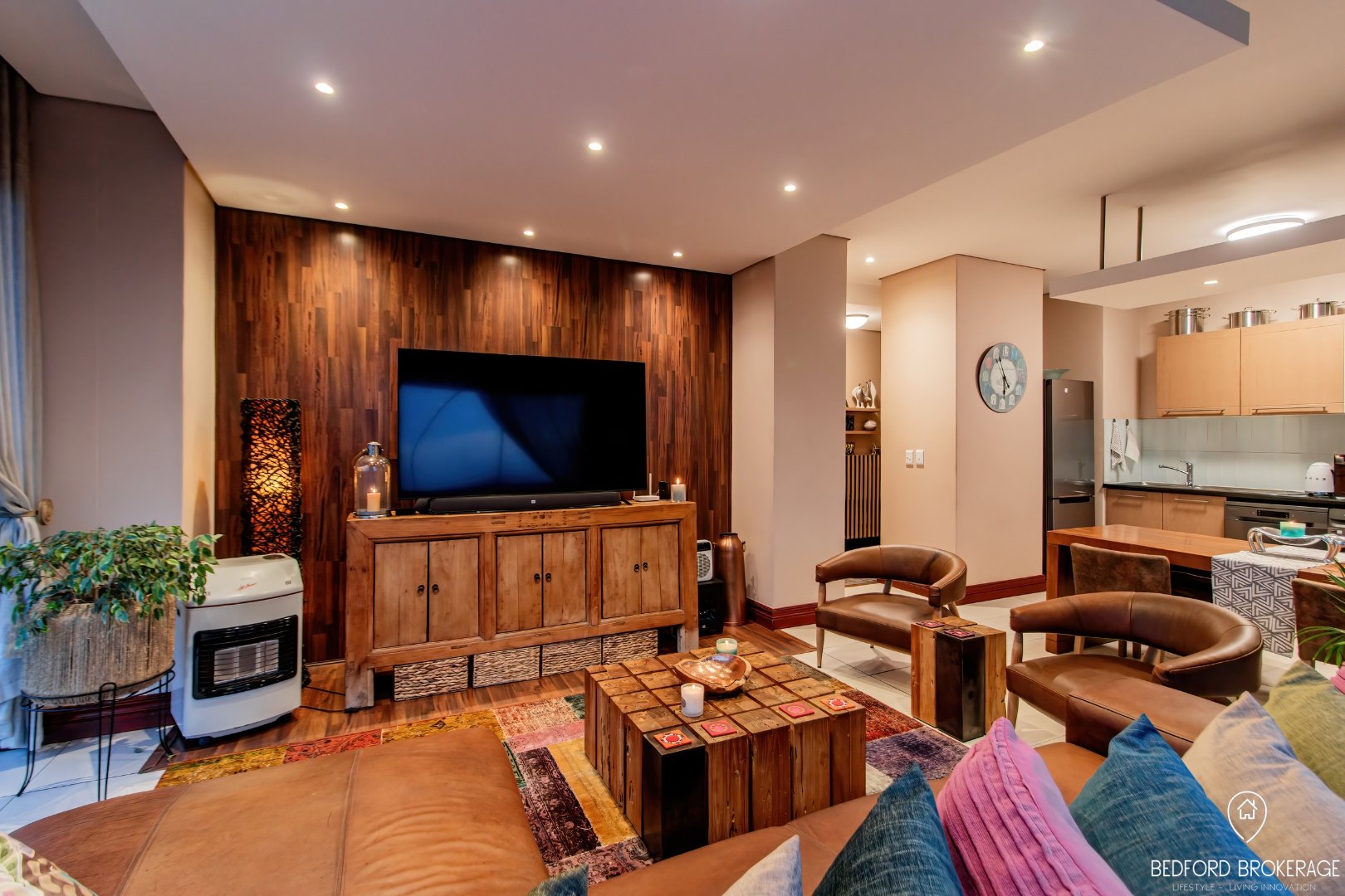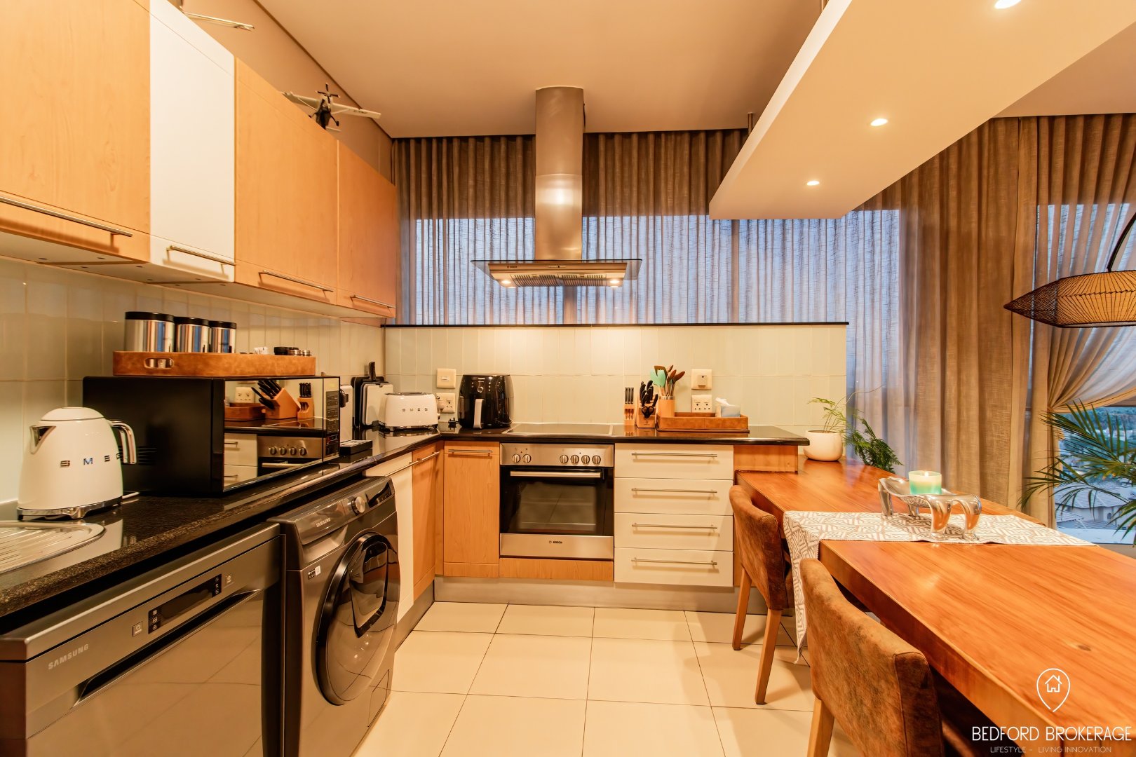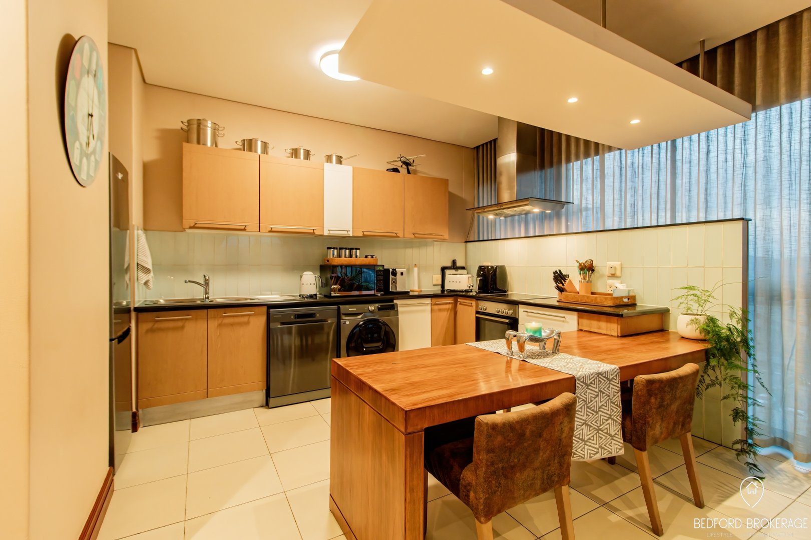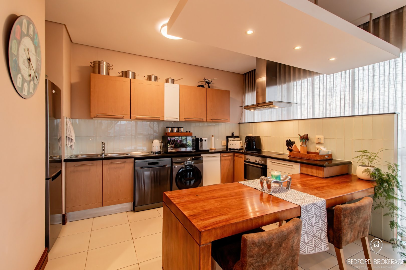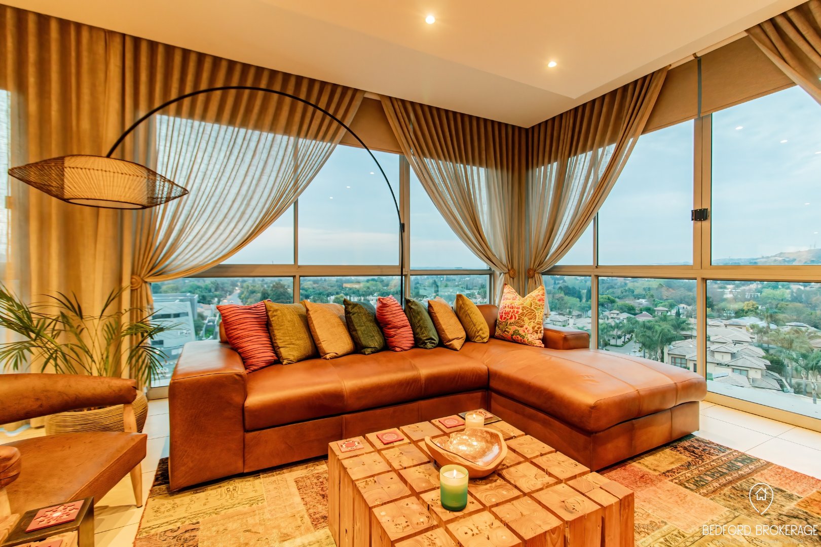 Bedford Brokerage is proud to introduce you to this one of a kind apartment. Step into the epitome of elegance with this one-of-a-kind corner apartment at the prestigious Bedford Apartments. Fully furnished with custom-made pieces and luxury finishes, this residence offers a seamless blend of sophistication and comfort. Every detail has been considered, from Weylandts designer furniture to state-of-the-art Smeg appliances, while both bedrooms feature Smart TVs and the lounge is enhanced by a large Smart TV paired with a premium soundbar. The free-flowing kitchen and dining area seamlessly connect to the lounge, creating an inviting open-plan living space with large windows and panoramic Johannesburg views.