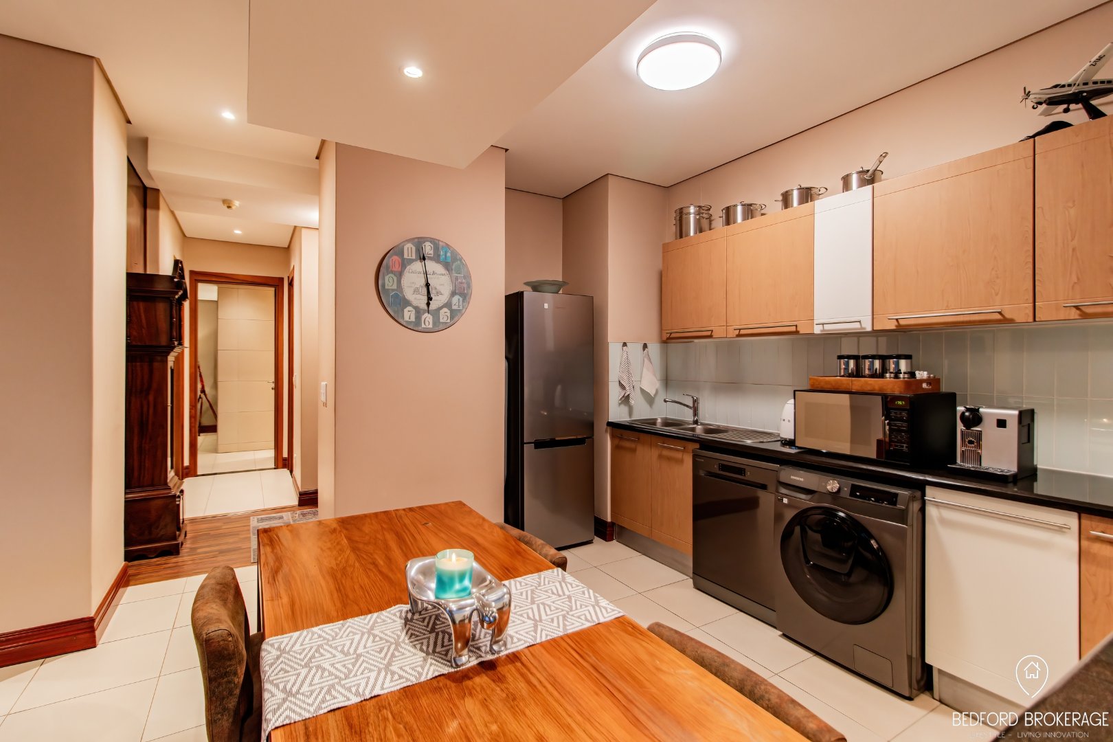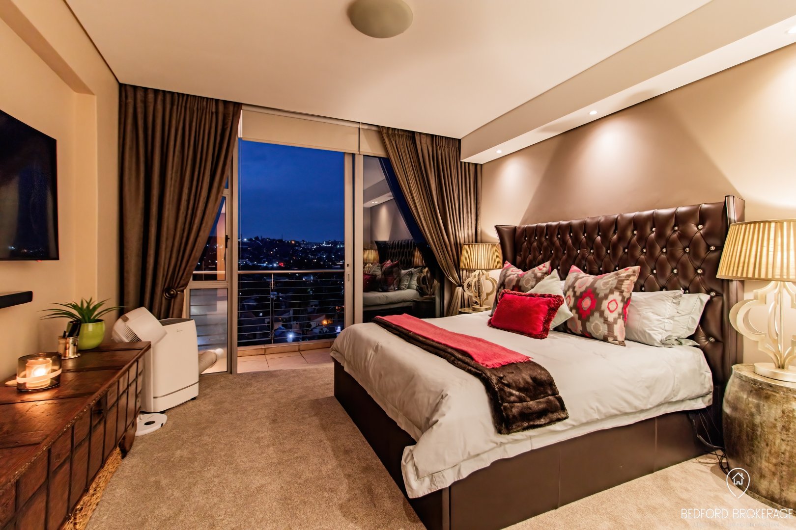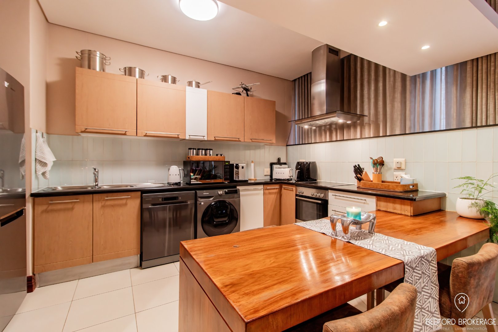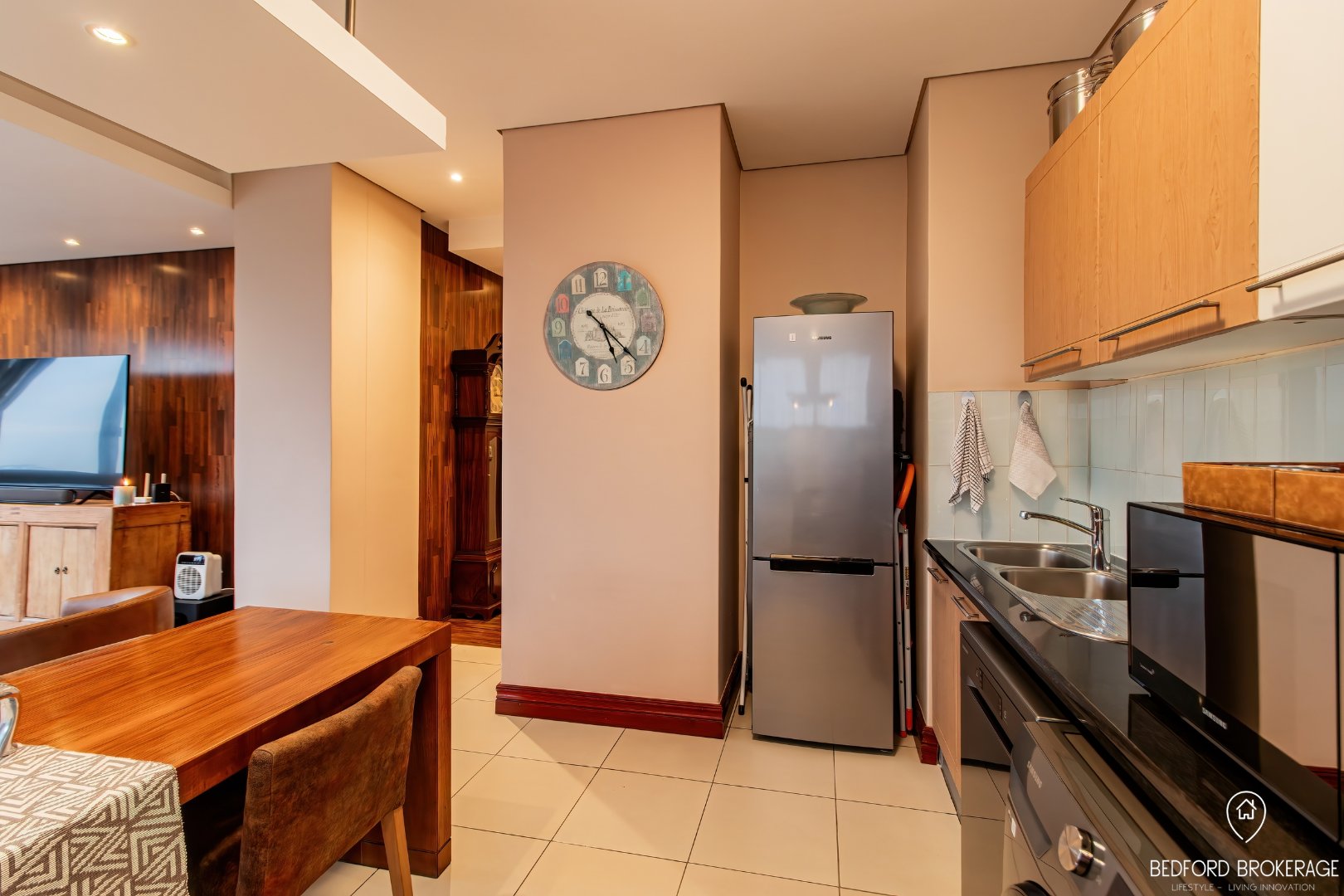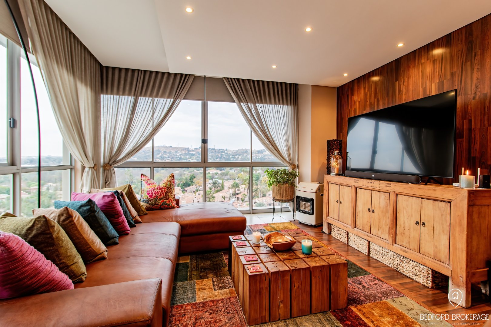 Bedford Brokerage is proud to introduce you to this one of a kind apartment. Step into the epitome of elegance with this one-of-a-kind corner apartment at the prestigious Bedford Apartments. Fully furnished with custom-made pieces and luxury finishes, this residence offers a seamless blend of sophistication and comfort. Every detail has been considered, from Weylandts designer furniture to state-of-the-art Smeg appliances, while both bedrooms feature Smart TVs and the lounge is enhanced by a large Smart TV paired with a premium soundbar. The free-flowing kitchen and dining area seamlessly connect to the lounge, creating an inviting open-plan living space with large windows and panoramic Johannesburg views.