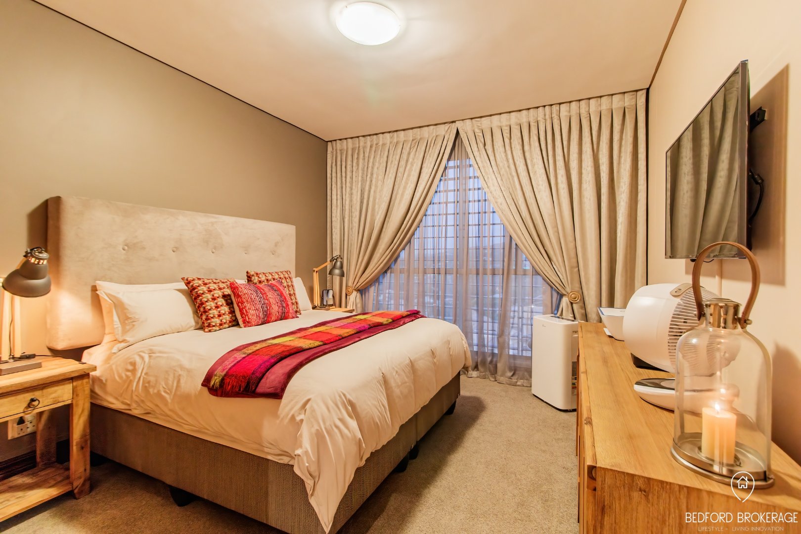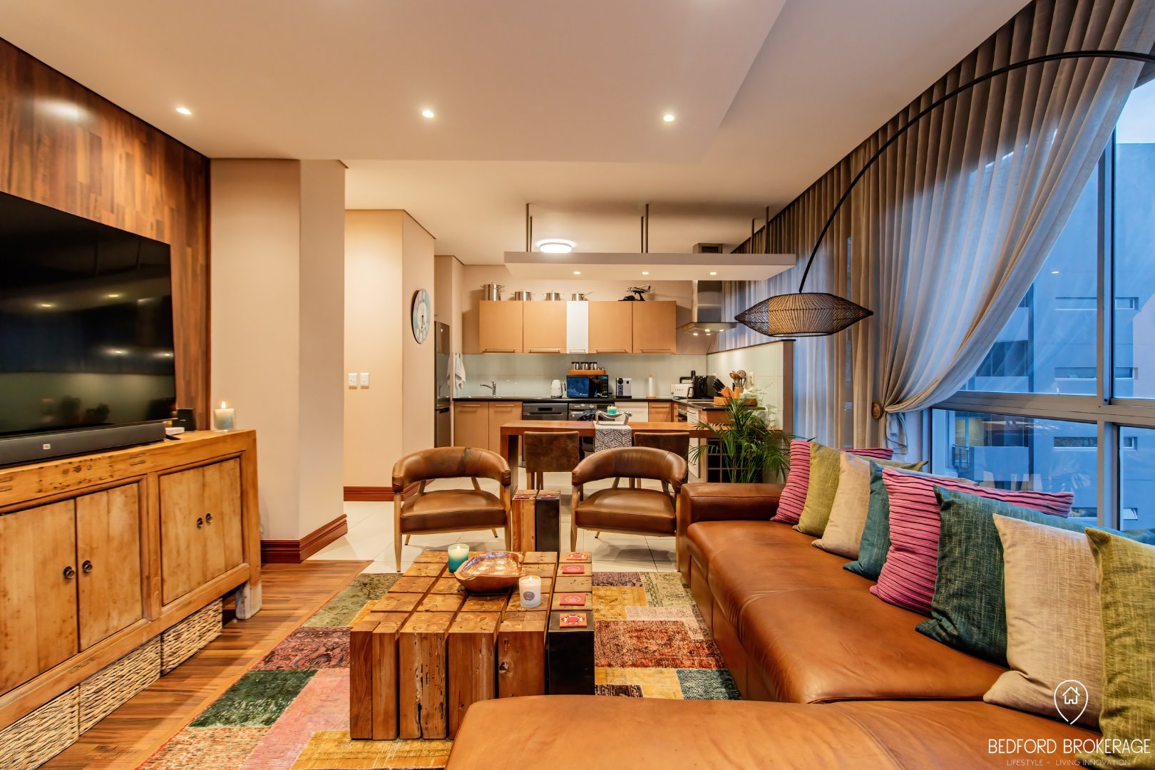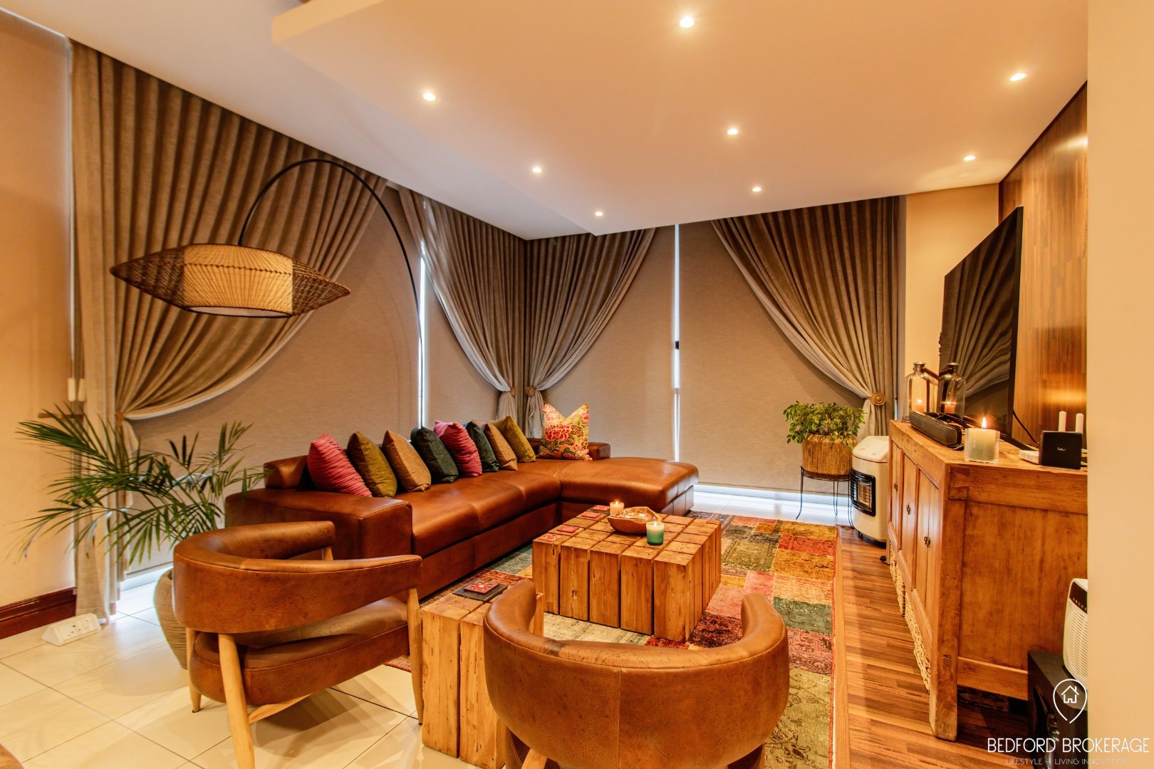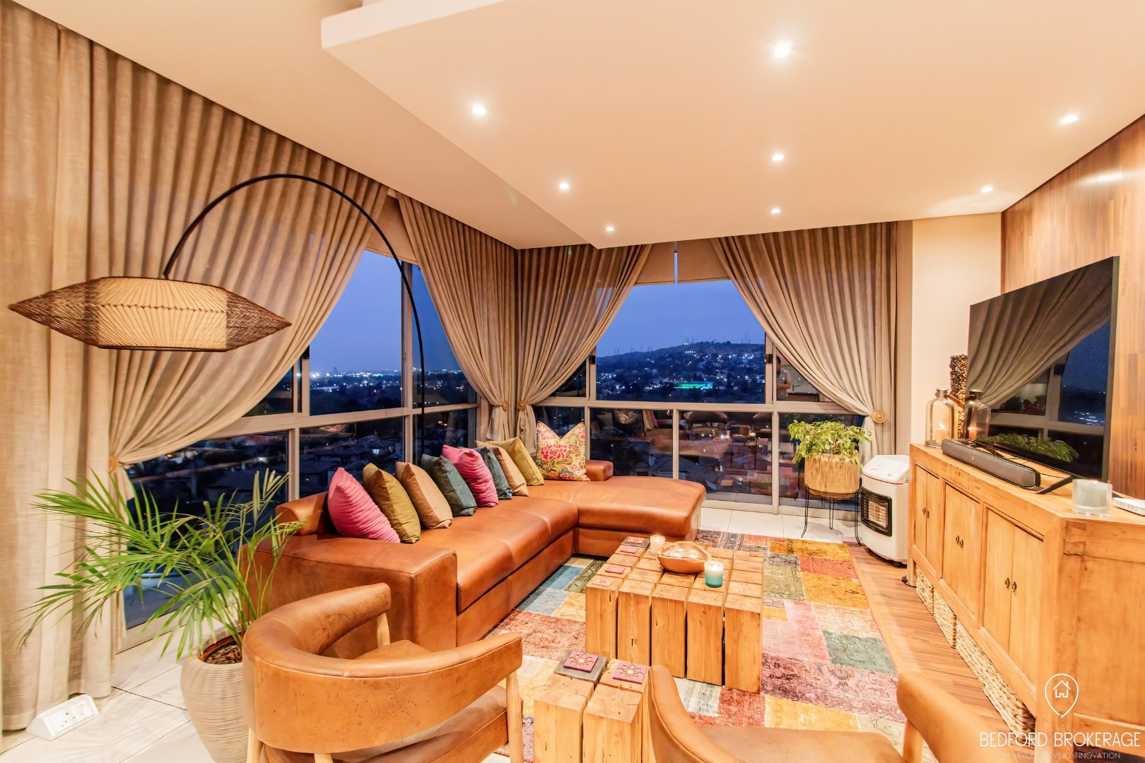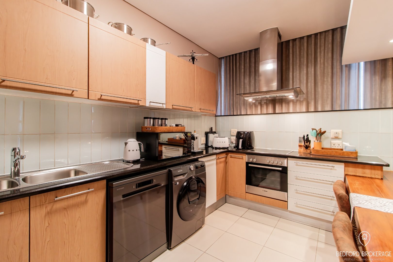 Bedford Brokerage is proud to introduce you to this one of a kind apartment. Step into the epitome of elegance with this one-of-a-kind corner apartment at the prestigious Bedford Apartments. Fully furnished with custom-made pieces and luxury finishes, this residence offers a seamless blend of sophistication and comfort. Every detail has been considered, from Weylandts designer furniture to state-of-the-art Smeg appliances, while both bedrooms feature Smart TVs and the lounge is enhanced by a large Smart TV paired with a premium soundbar. The free-flowing kitchen and dining area seamlessly connect to the lounge, creating an inviting open-plan living space with large windows and panoramic Johannesburg views.