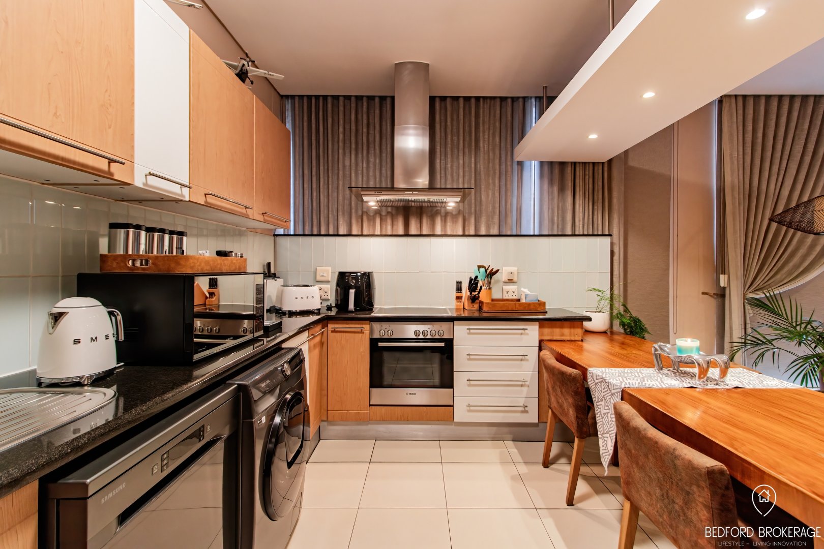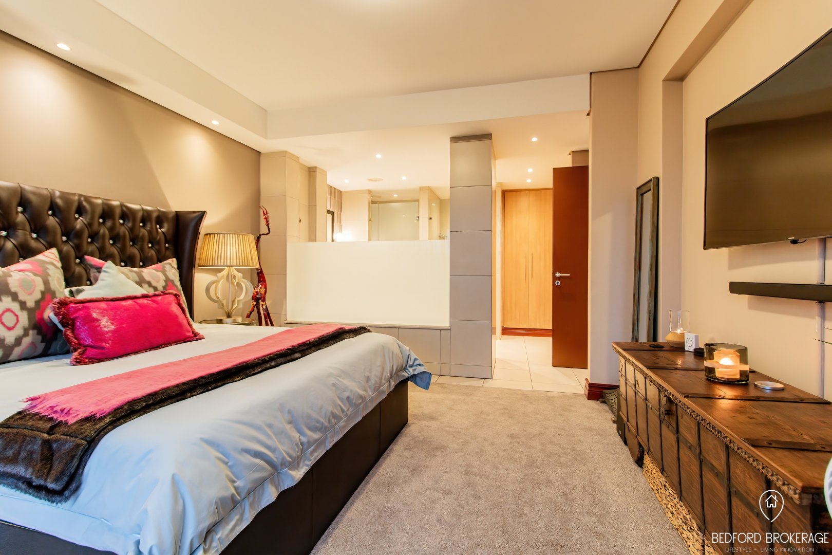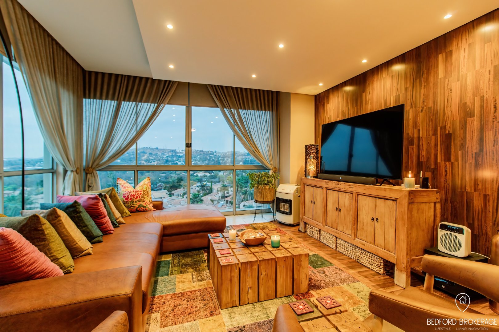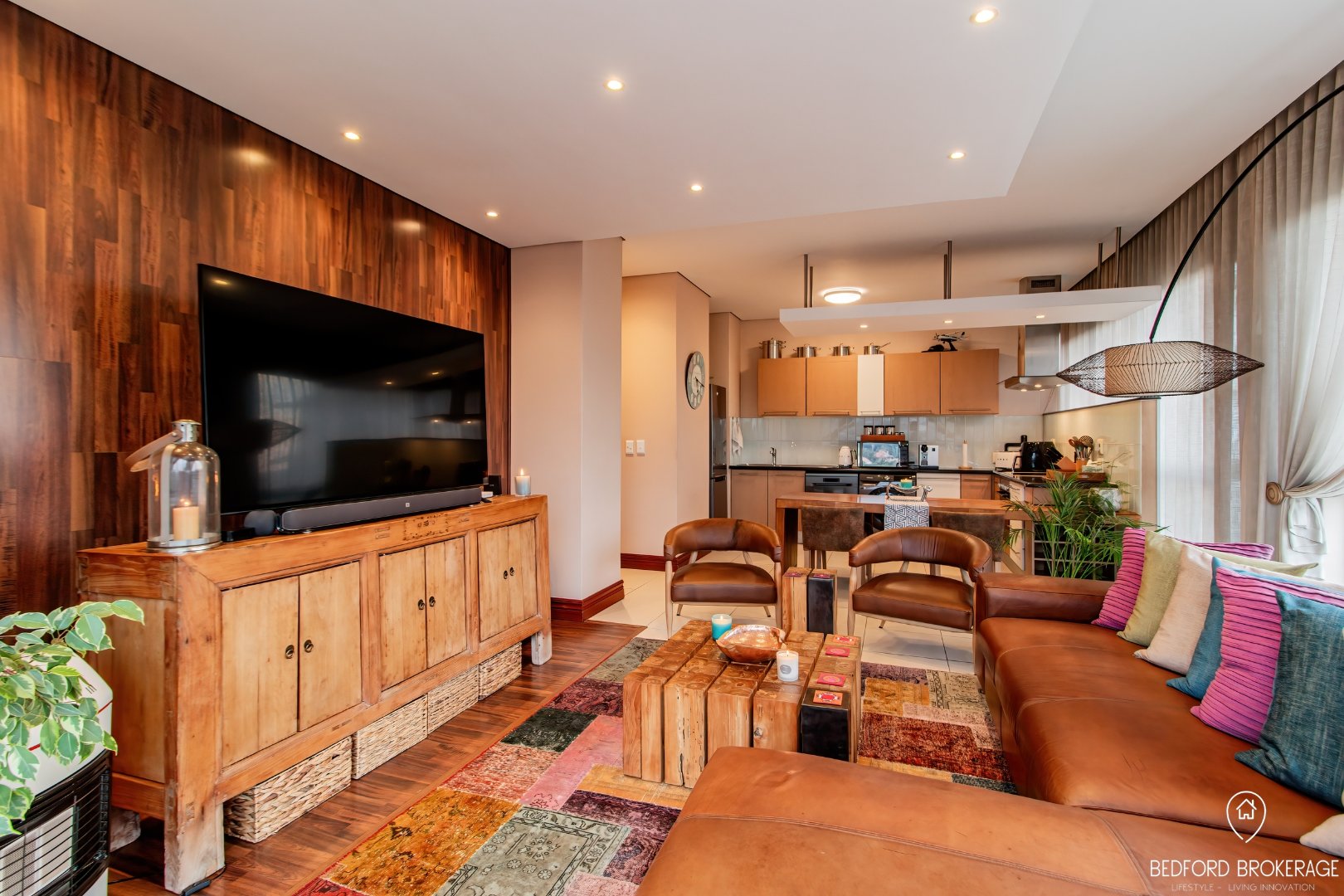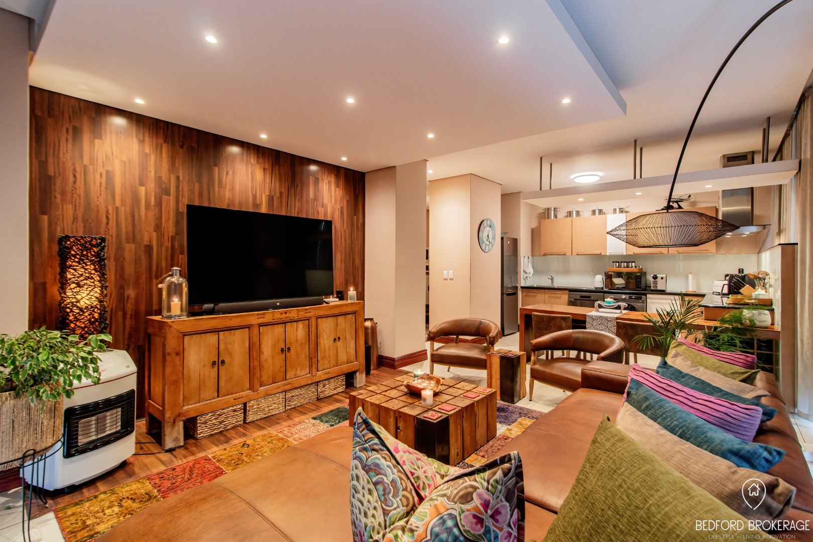 Bedford Brokerage is proud to introduce you to this one of a kind apartment. Step into the epitome of elegance with this one-of-a-kind corner apartment at the prestigious Bedford Apartments. Fully furnished with custom-made pieces and luxury finishes, this residence offers a seamless blend of sophistication and comfort. Every detail has been considered, from Weylandts designer furniture to state-of-the-art Smeg appliances, while both bedrooms feature Smart TVs and the lounge is enhanced by a large Smart TV paired with a premium soundbar. The free-flowing kitchen and dining area seamlessly connect to the lounge, creating an inviting open-plan living space with large windows and panoramic Johannesburg views.