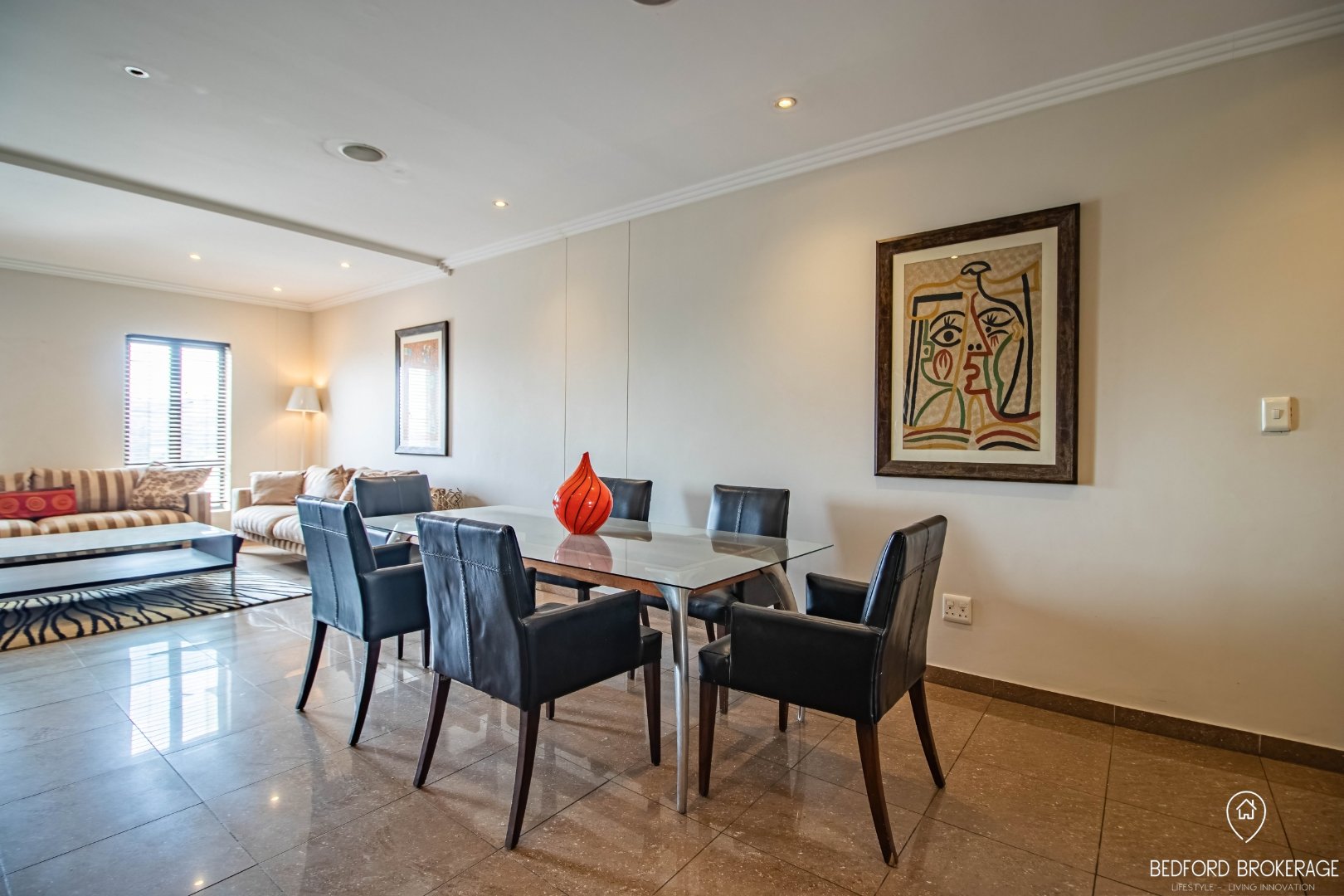 The dining and lounge extends out onto a covered balcony with stunning views of Bedfordview.