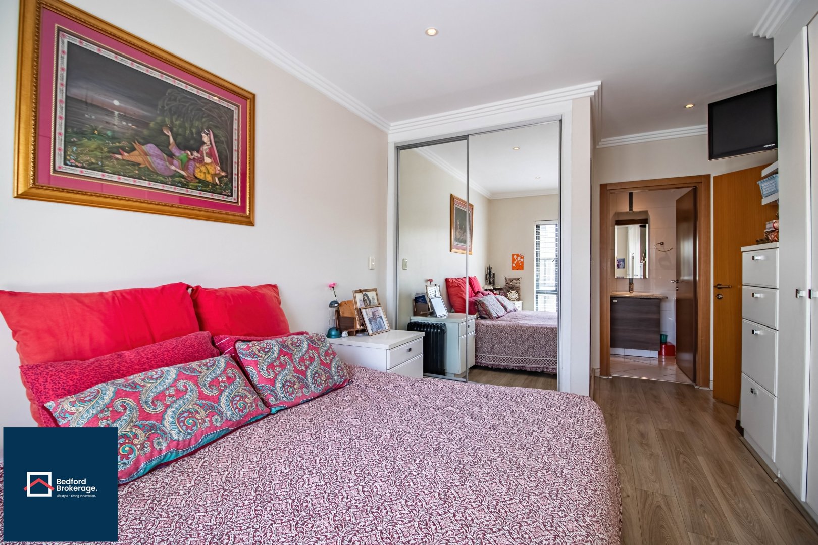 The master en-suite boasts a luxurious double vanity, shower, and bathtub, providing a touch of spa-like comfort.