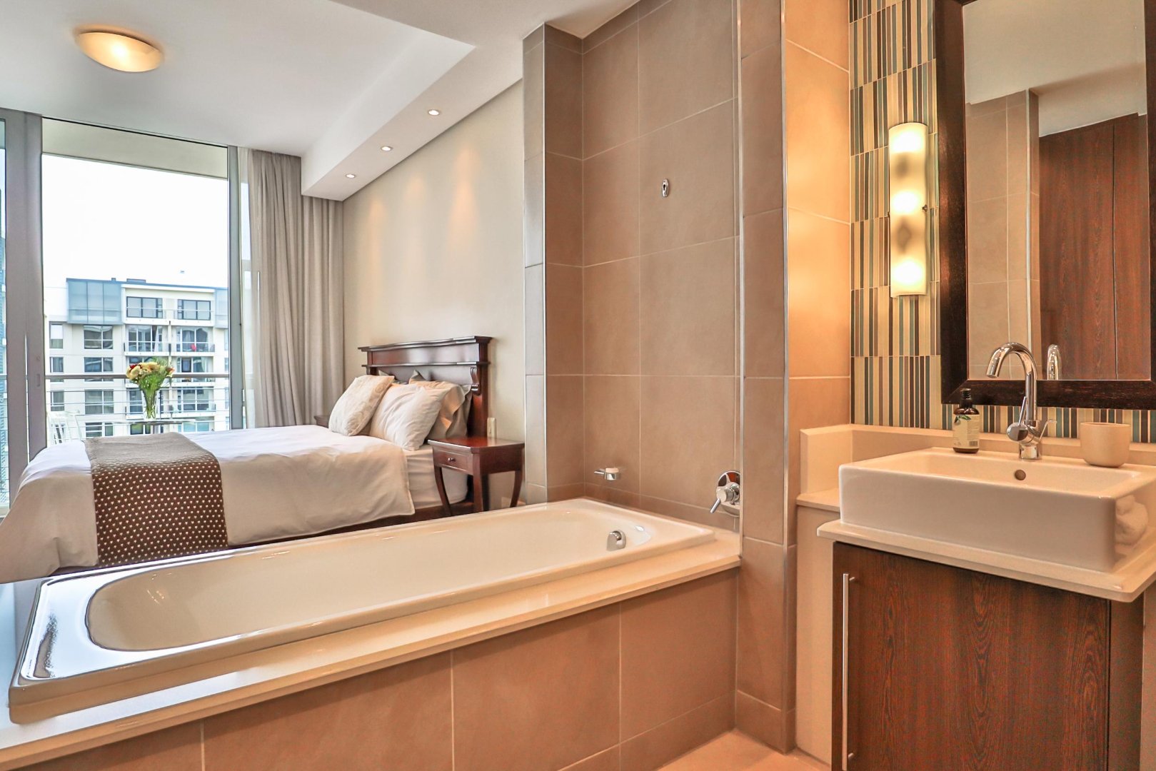 Set in the heart of Bedford Center, with the lifestyle at your call. Beautiful open plan kitchen leads onto the dining and spacious lounge area. Stunning views of the Piazza from the bedroom balcony and the big windows of the lounge.