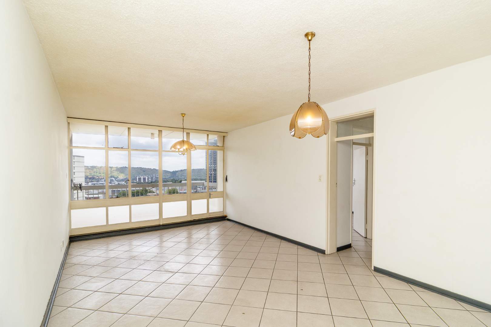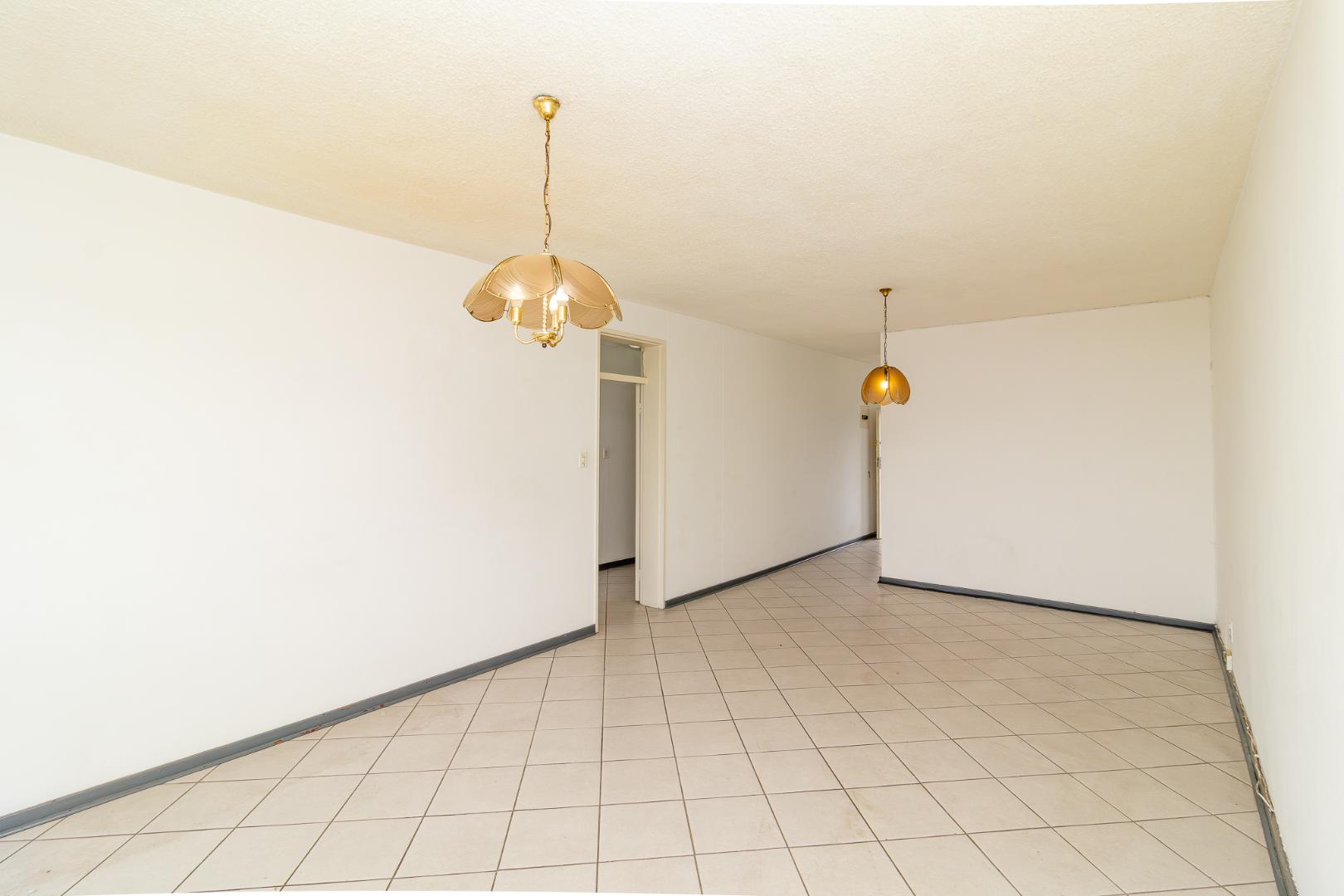 The two-bedroom unit features a functional kitchen with standard fittings, providing a solid foundation for modern enhancement. Both bedrooms offer ample built-in cupboard space, while the open-plan dining and lounge area flows effortlessly onto a covered patio, where you can enjoy elevated, picturesque views.