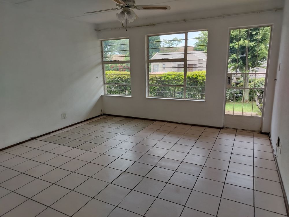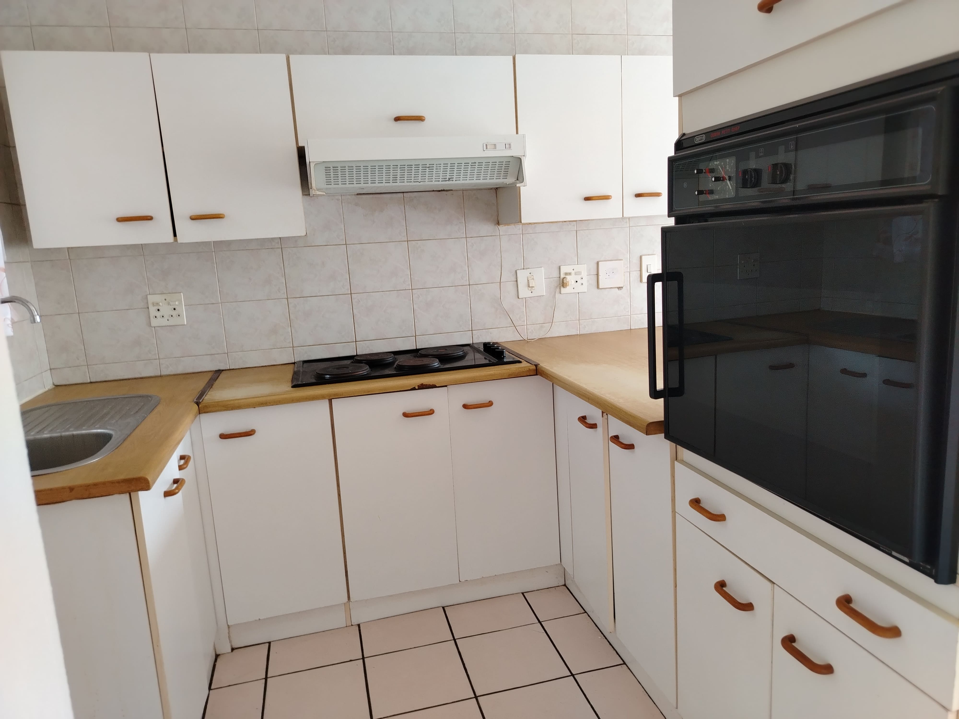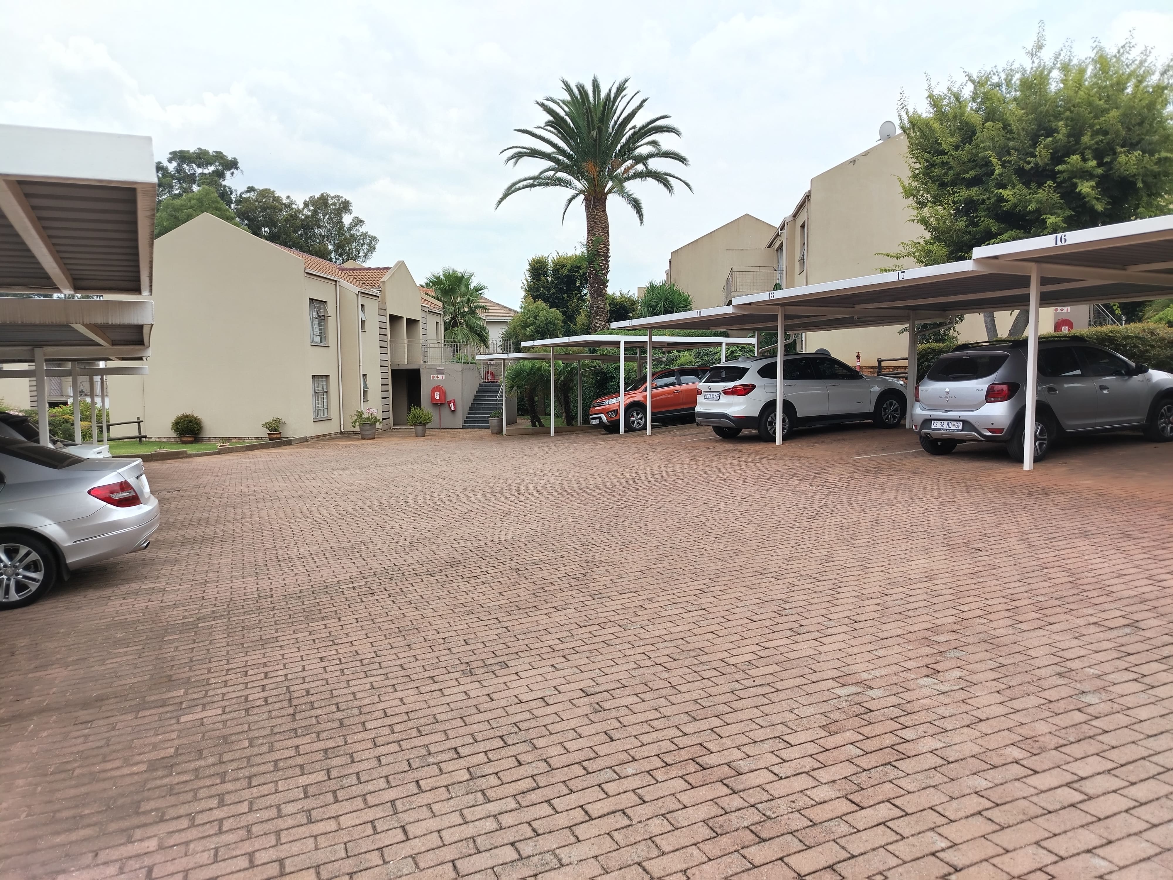 The unit features an open-plan kitchen and lounge that flows effortlessly onto a private garden in pristine condition. A cleverly designed linen cupboard is plumbed for a washing machine and tumble dryer, adding everyday convenience. Additional extras include a separate storeroom, one covered carport, and ample visitors’ parking.