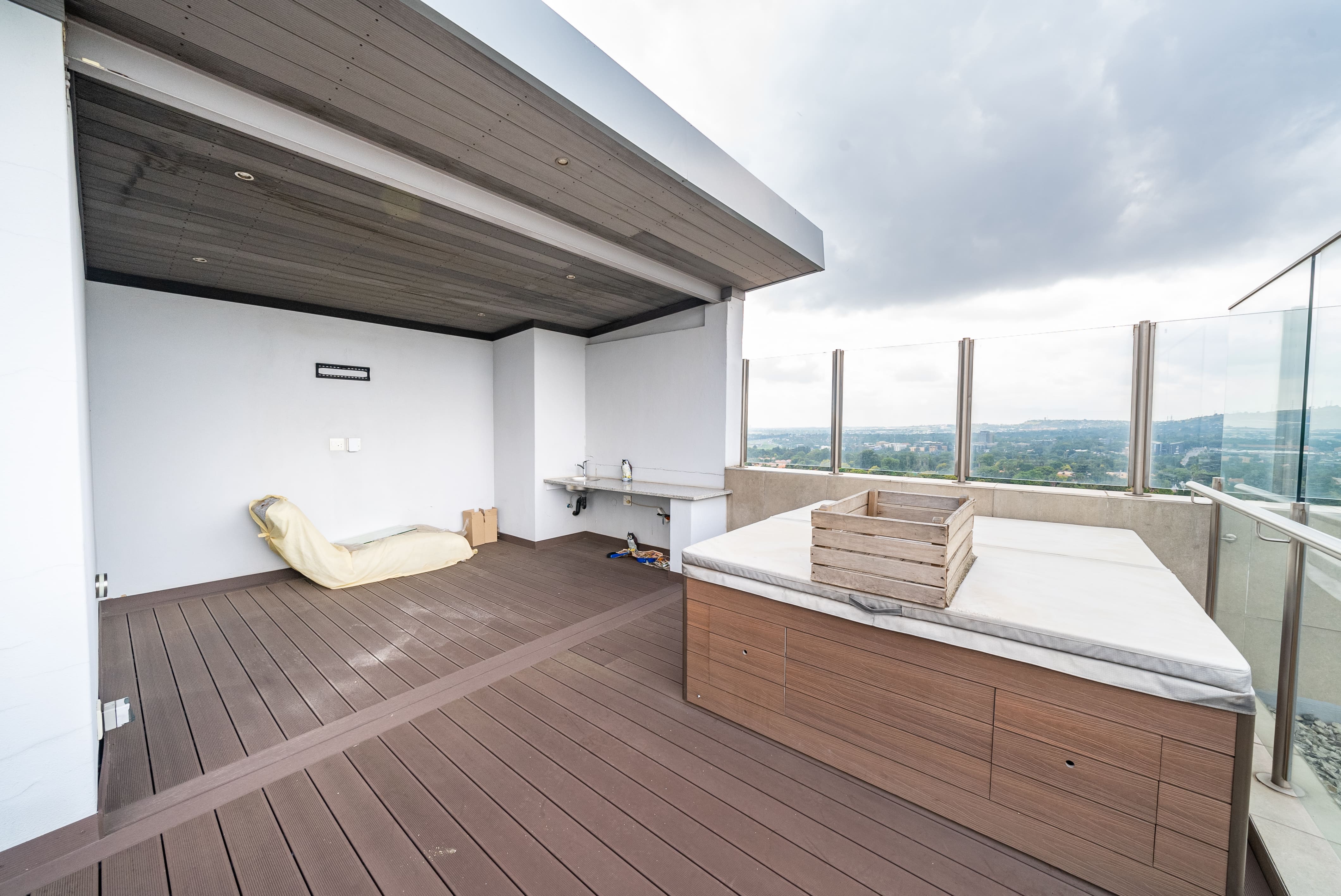 Experience the height of contemporary elegance in this penthouse designed for those who appreciate refined living. Set in a sought-after Bedfordview location, this home offers expansive open-plan spaces that blend comfort with sophistication. The modern kitchen, finished with granite countertops and state-of-the-art appliances, flows seamlessly into spacious living areas ideal for entertaining or relaxing with family. Step outside to your private rooftop terrace featuring a built-in braai and jacuzzi. The perfect spot to unwind while enjoying elevated views. With top-tier security, four garages, and access to a sparkling communal pool, this residence combines convenience, exclusivity, and style in perfect balance.