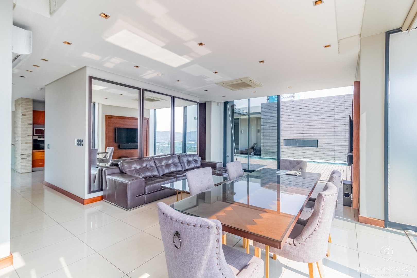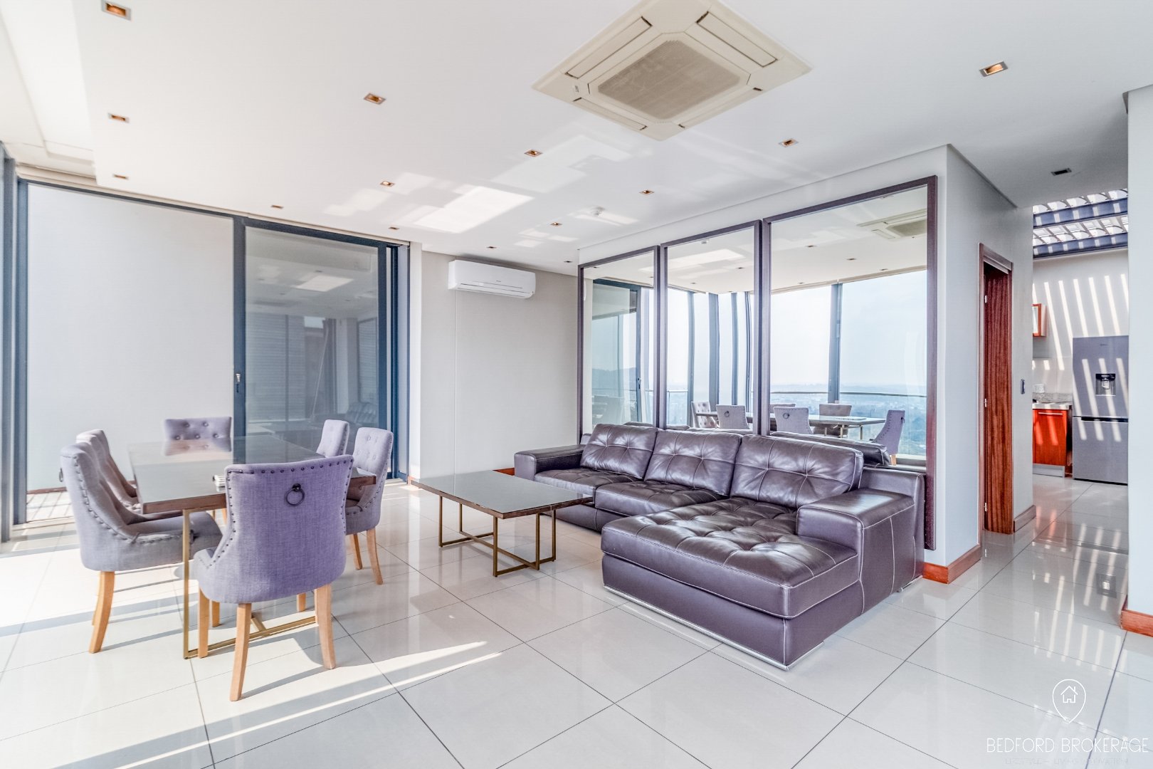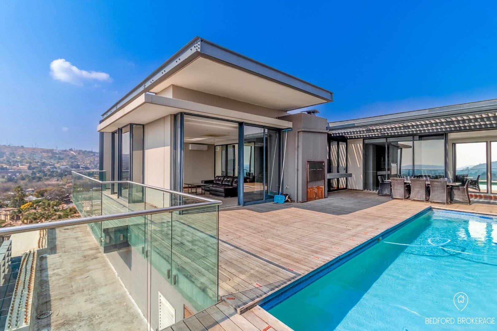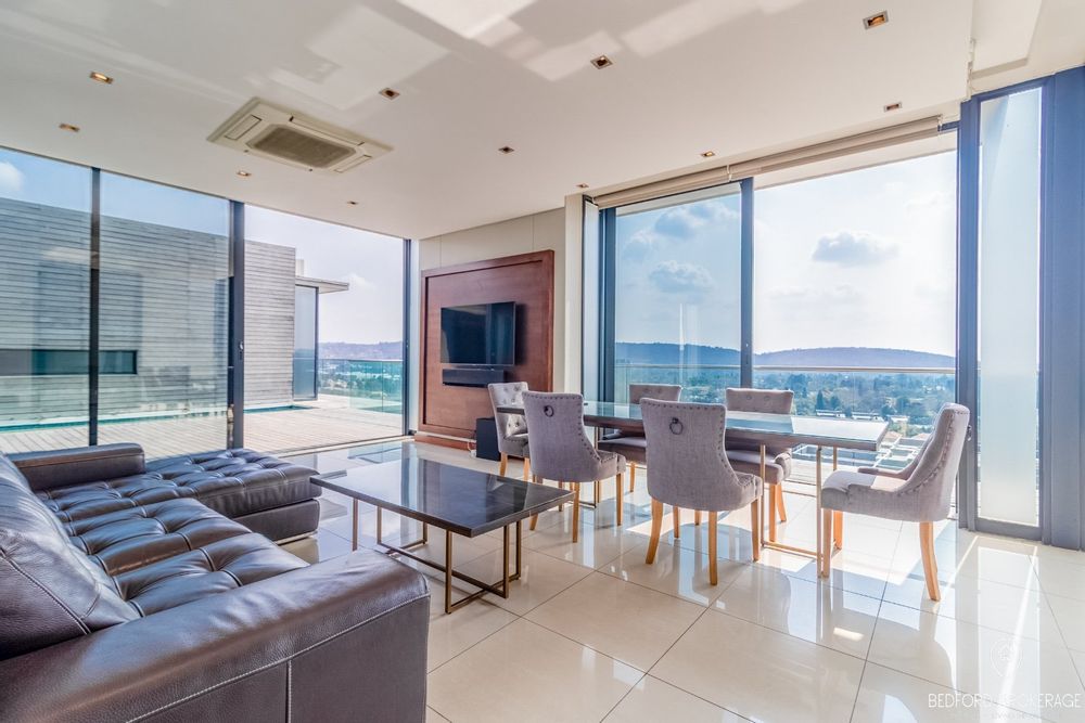This stunning 3-bedroom all-ensuite penthouse in Bedfordview offers the perfect blend of luxury and convenience. The elegant entrance hall leads to sun-filled open-plan living areas, including a formal lounge and dining room that open onto a covered patio and decked pool area with breathtaking views.