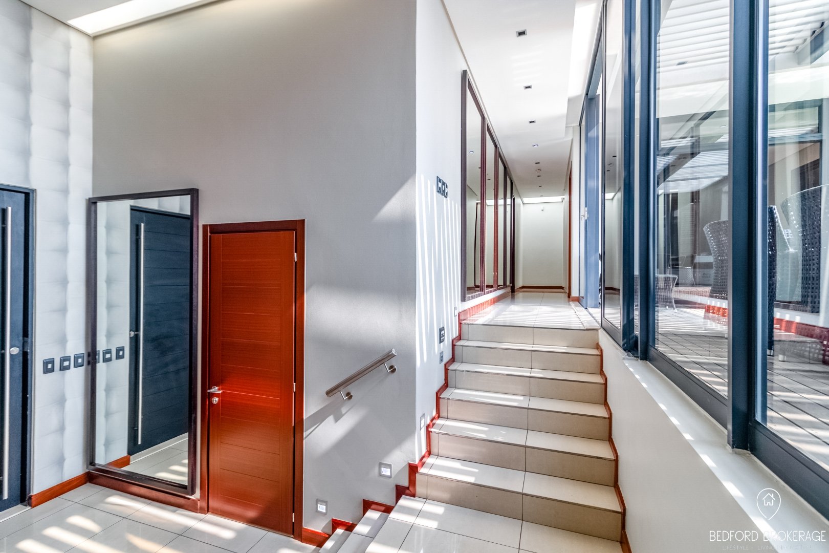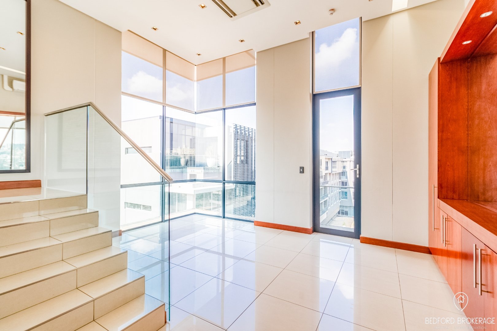 This secure penthouse includes 24-hour manned security, and three parking bays. Located in Bedfordview’s most sought-after complex, it offers direct access to the mall and gym, and is close to schools, the hospital, mosque, and major highways.