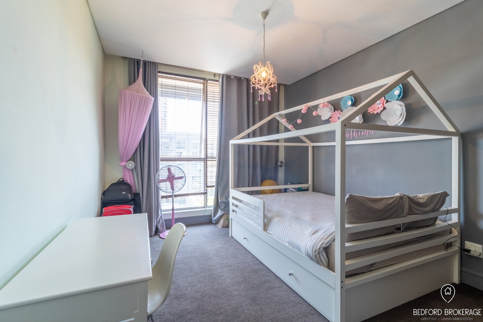 This apartment is situated in an upmarket complex and offers a luxurious and convenient lifestyle. This beautiful apartment facing the Piazza offers 2 bedrooms, and 2 bathrooms with the main en-suite full bathroom. The open-plan kitchen has a built-in diner flows into the spacious lounge. The main bedroom opens onto a balcony that overlooks the landscaped gardens at Bedford Square.