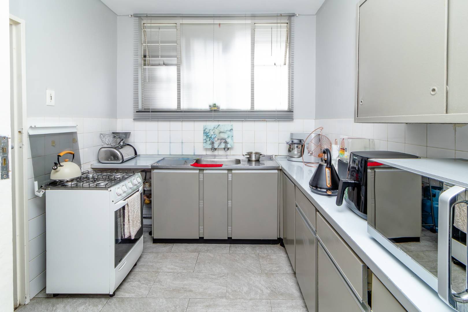 This apartment boasts a neat kitchen with space for two appliances, ample cupboard space.