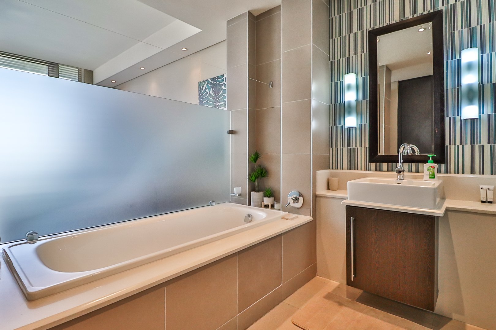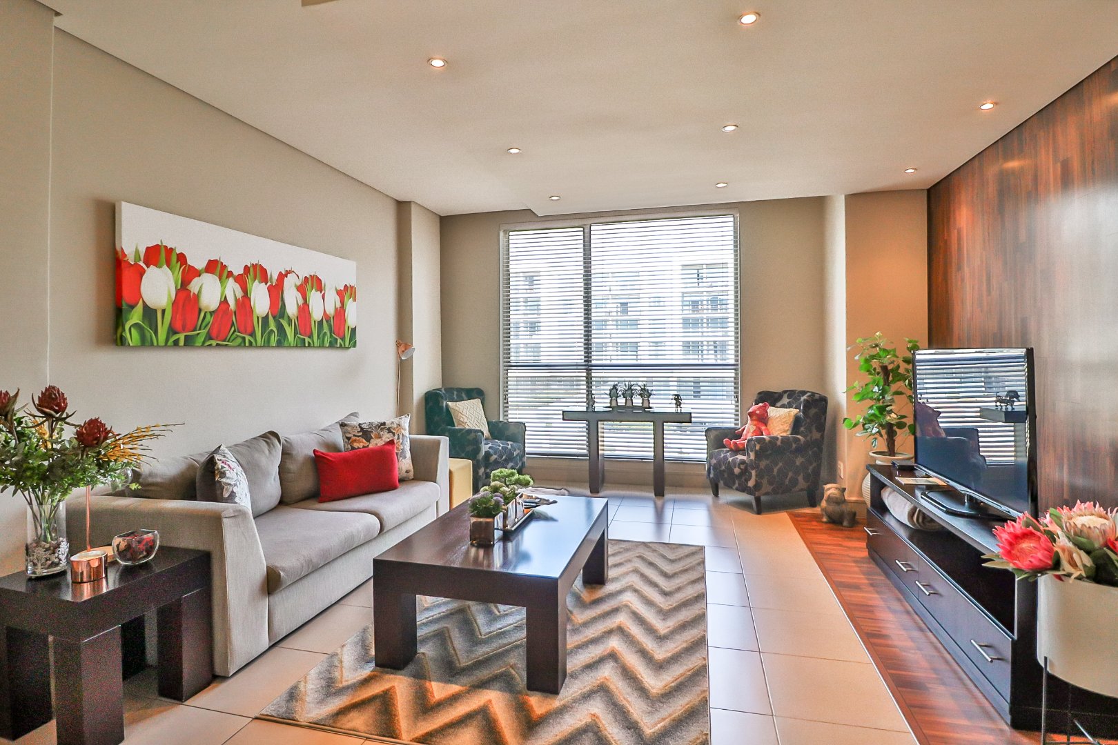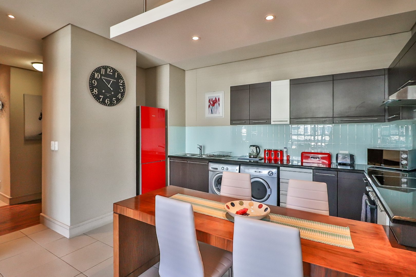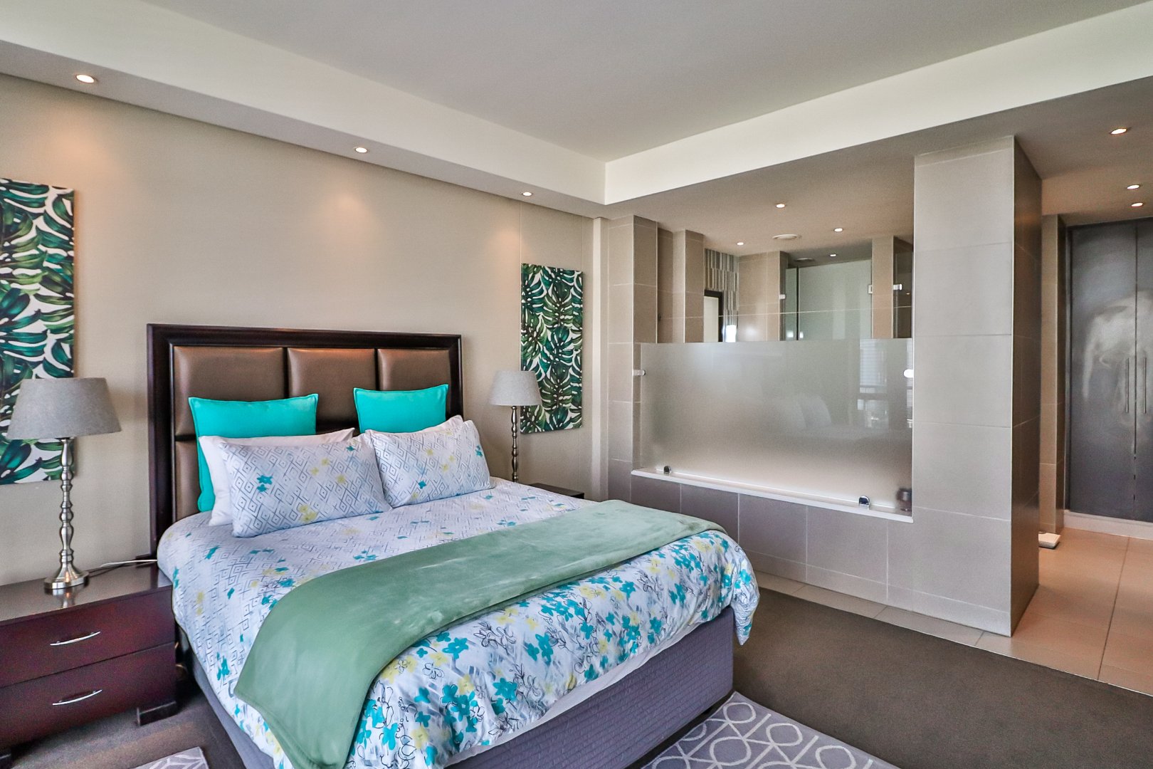 The contemporary kitchen is spacious and thoughtfully designed, fitted with a Bosch stove and hob, Caesarstone countertops, and space for two appliances. The open-plan dining and lounge areas flow seamlessly from the kitchen, offering generous living space that is ideal for both everyday living and entertaining.