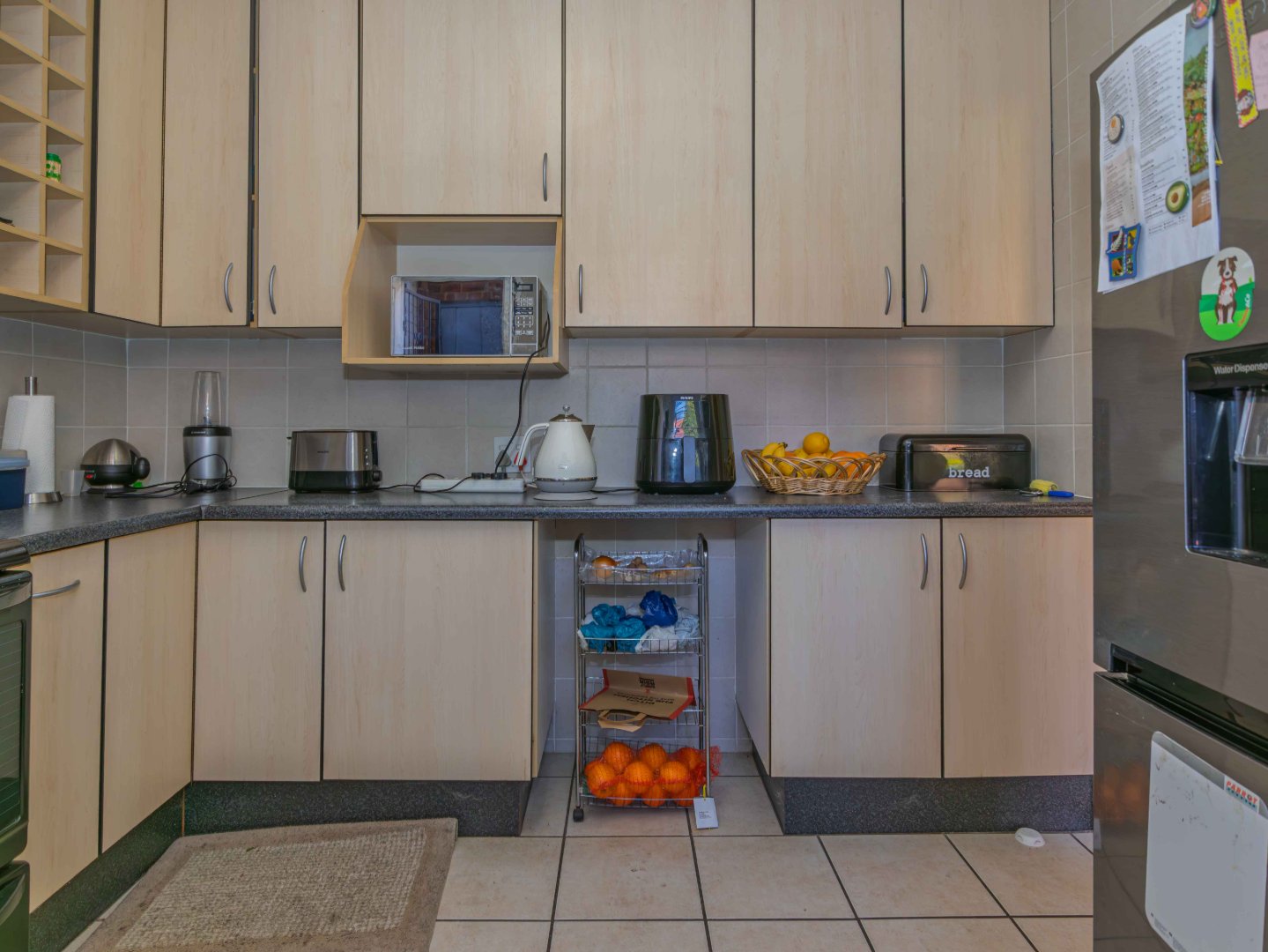 The spacious, open-concept lounge seamlessly extends into the garden, creating a warm, inviting heart for everyday living. The neat kitchen is thoughtfully equipped with generous cabinetry, a double sink, an extractor fan, and designated space for a washhing machine or a dishwasher.