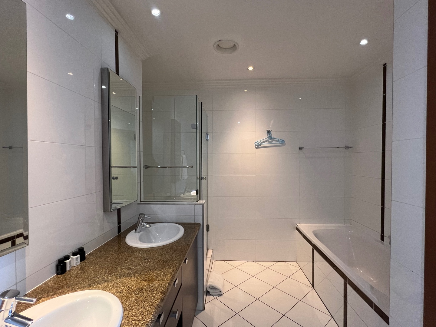 The main bedroom includes an en-suite bathroom, while the second bedroom is well-sized and serviced by a second bathroom — ideal for sharing or working professionals.