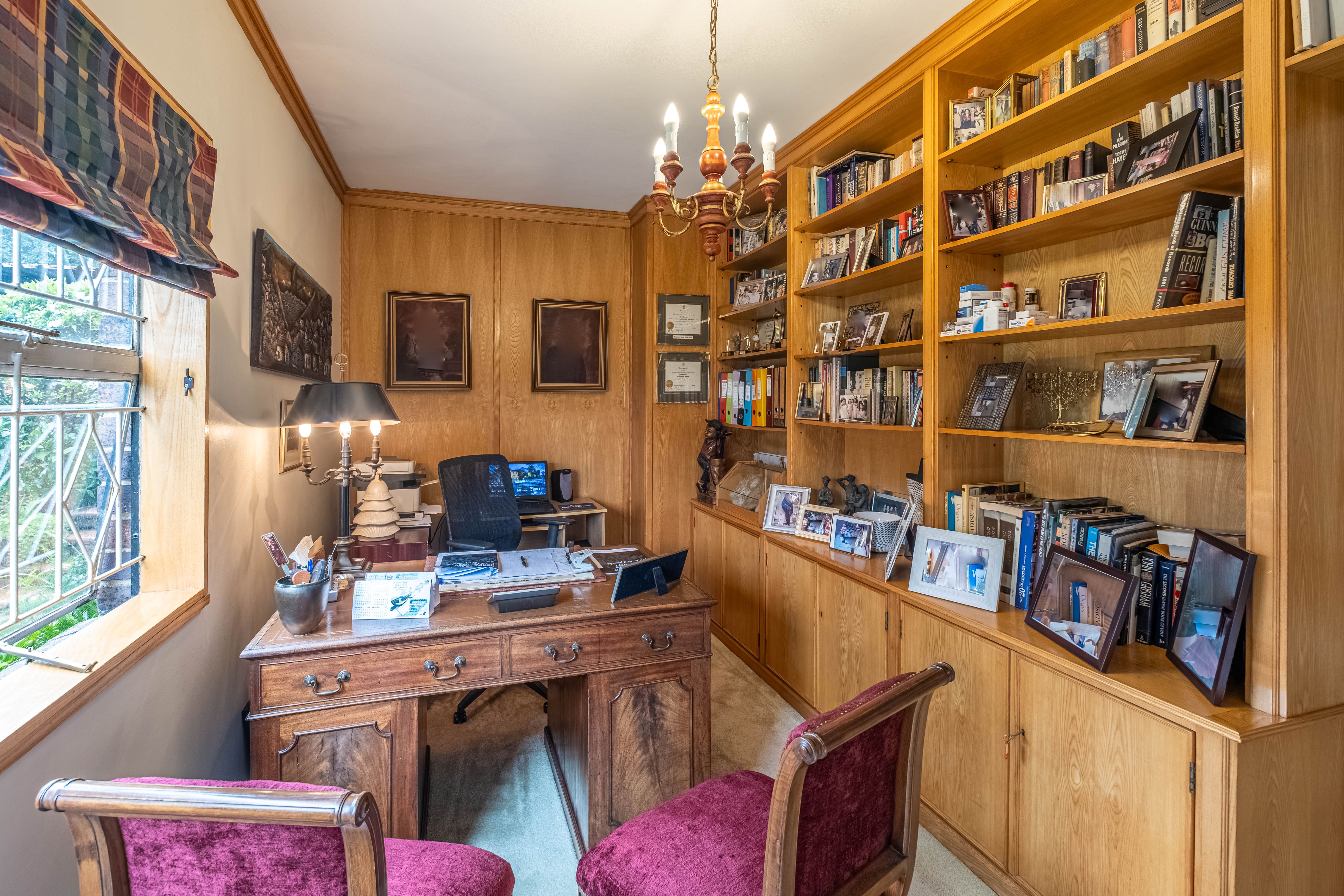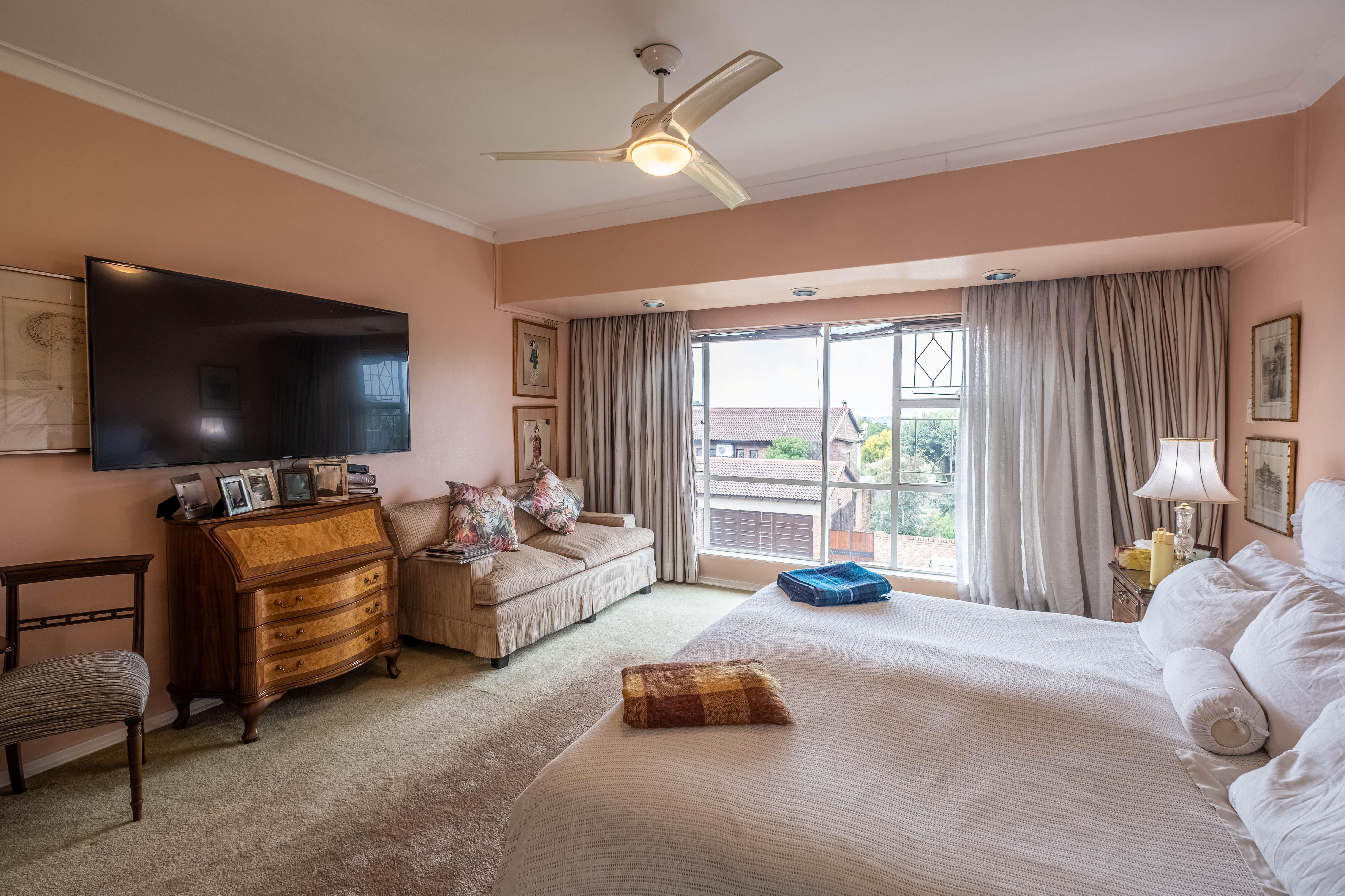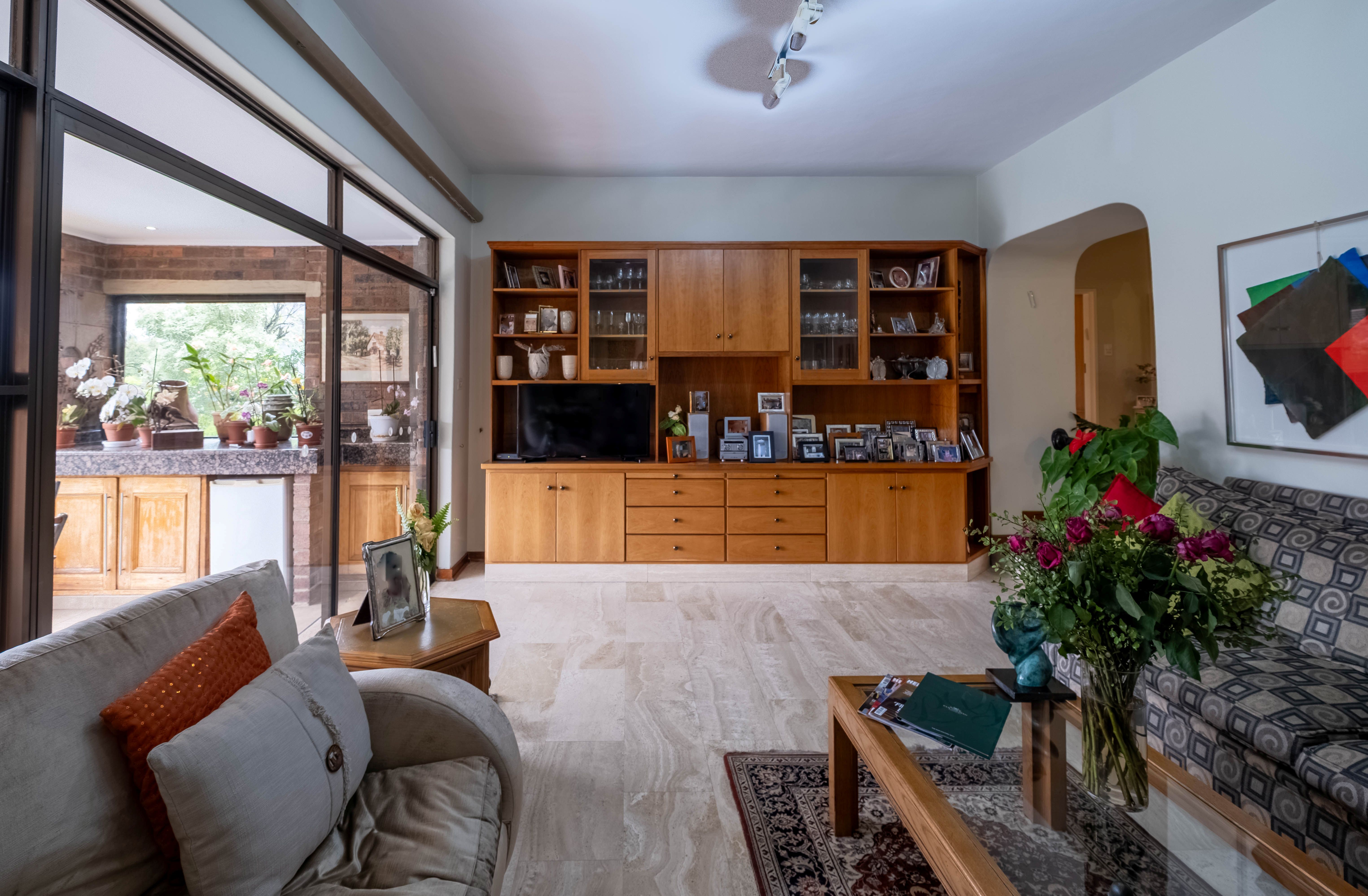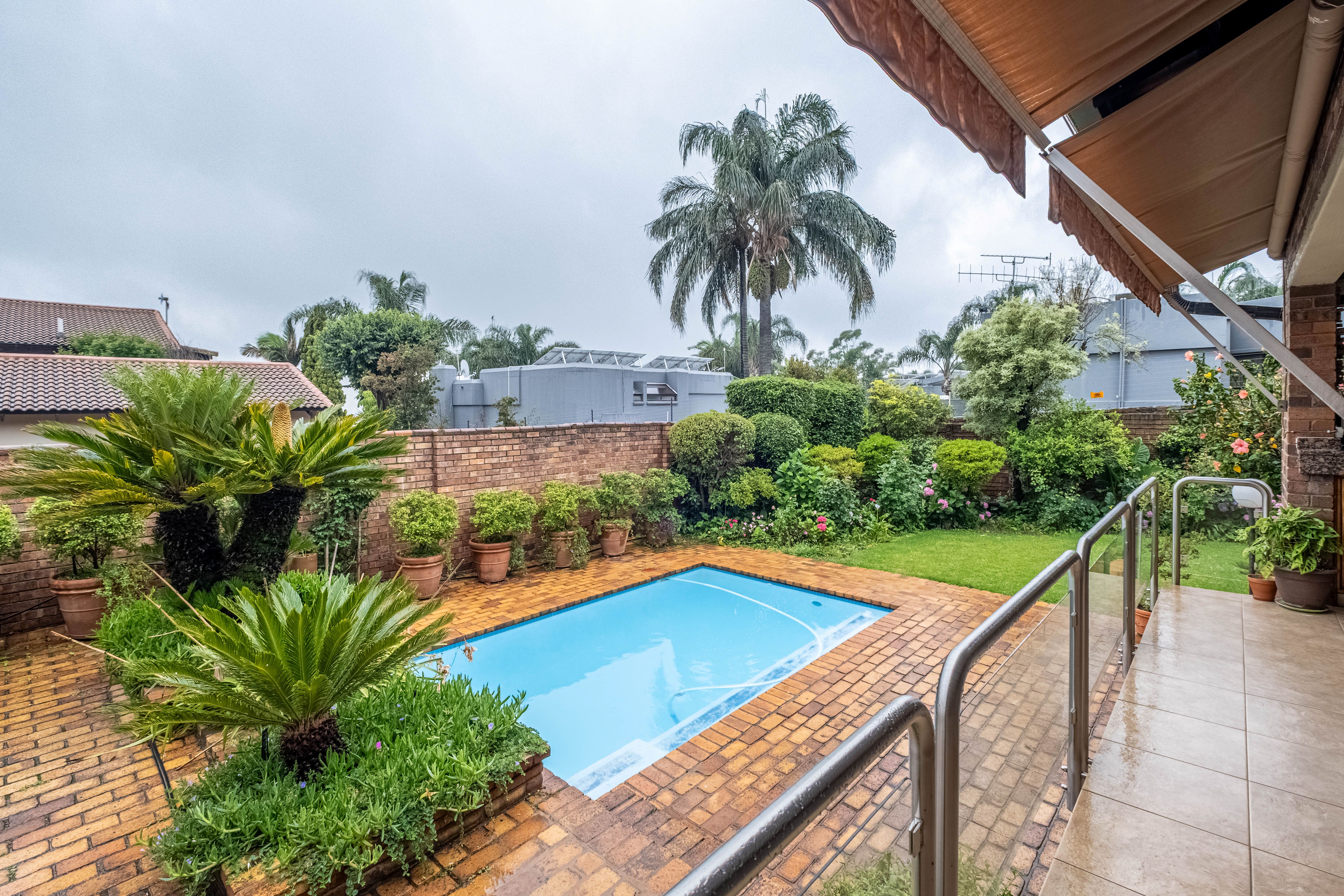 Indulge in the luxurious amenities designed for entertaining and relaxation, featuring a private pool, a large patio, and a dedicated wine cellar. The home is complemented by an invertor system, 4 garages, domestic accommodation, and an established garden, visible in the photographs. Located in a complex with 24-hour guarded access, you'll have peace of mind, just a short drive from schools like St Andrew's School For Girls and King David Linksfield.