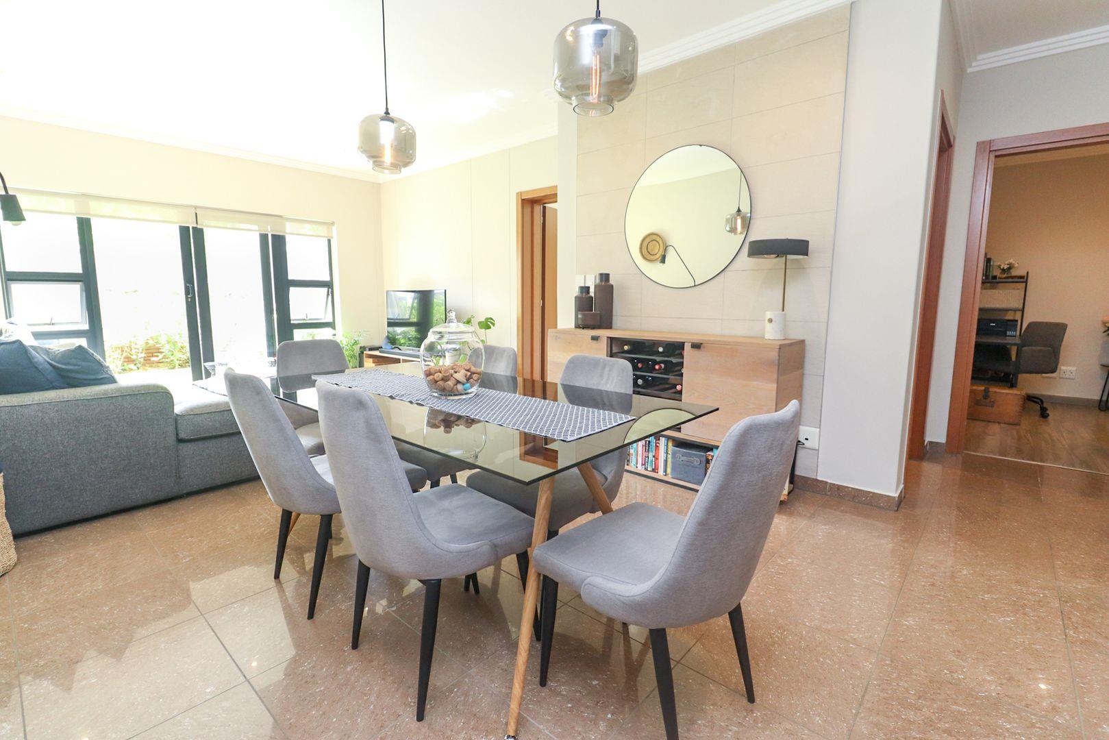 Beautiful Dining room with well thought out Pendants fixtures that would light up any dinner dish. Cosy lounge that although open plan creates its own atmosphere with the sliding doors leading out to a semiprivate garden