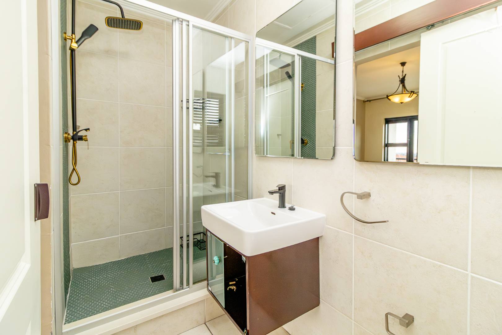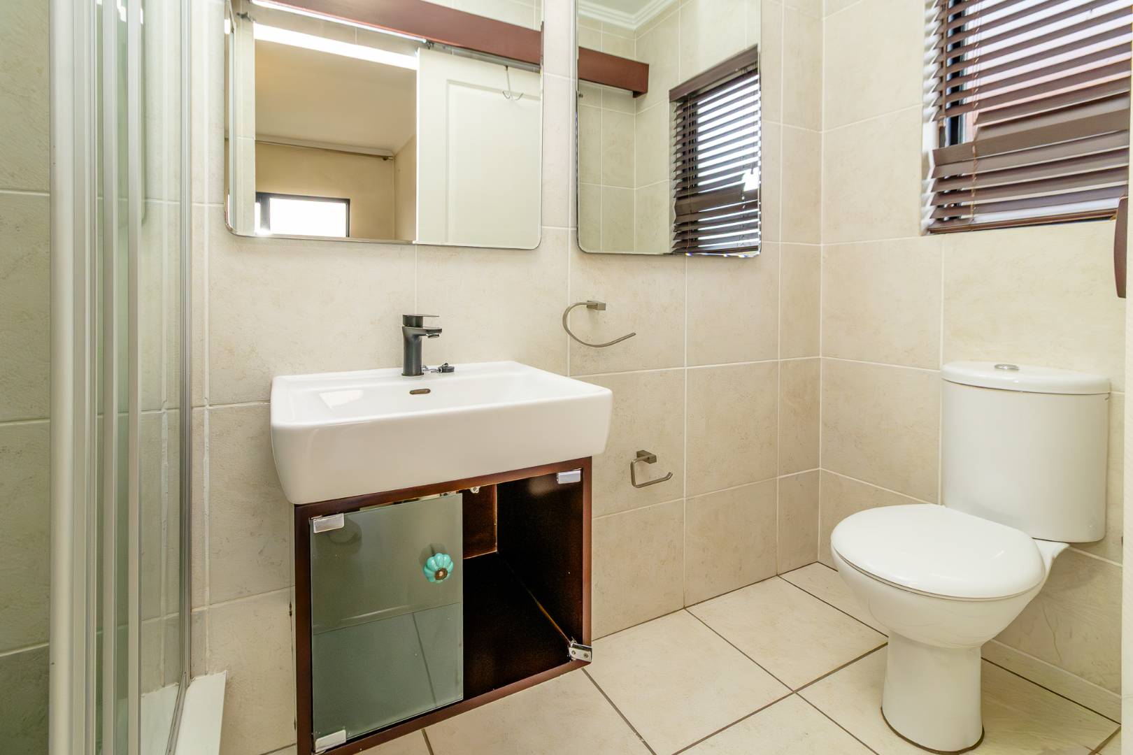 Downstairs features two well-sized bedrooms, including a master bedroom with an ensuite bathroom, while the second bedroom is serviced by an off-suite bathroom, ideal for guests or family.