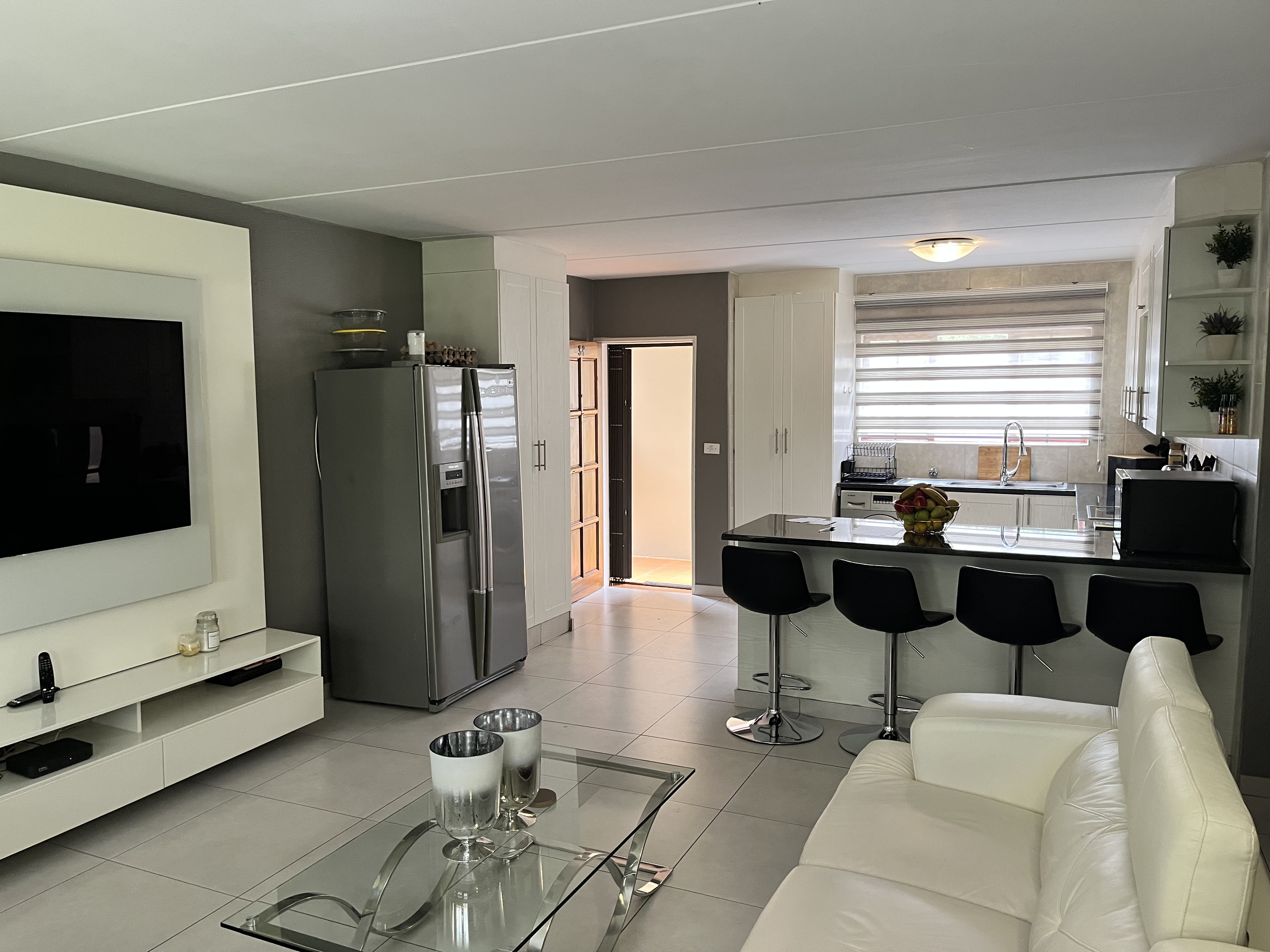 Welcome to this beautifully maintained ground-floor unit that combines privacy, space, and modern living. Set in a secure and sought-after complex, this home offers a peaceful retreat with a large garden—perfect for family gatherings, entertaining, or simply enjoying your own green haven. The interior flows seamlessly from a bright, tiled living area to a modern kitchen fitted with granite countertops, white cabinetry, and space for two appliances.