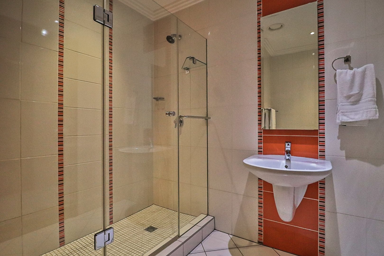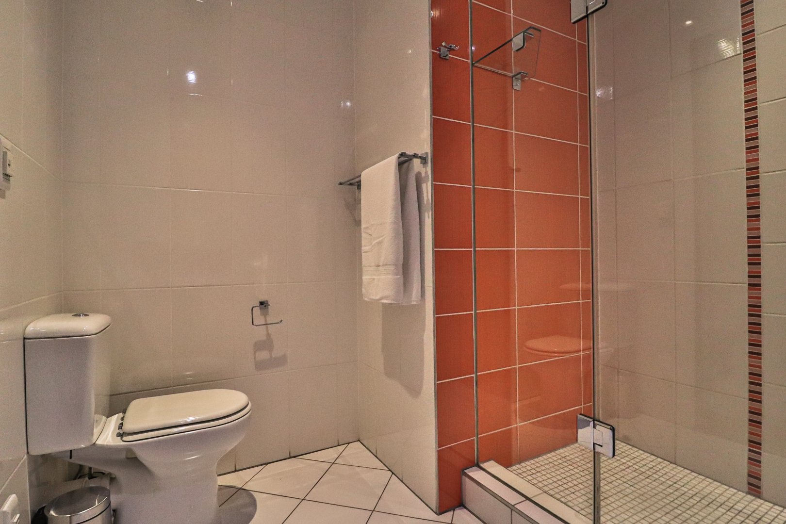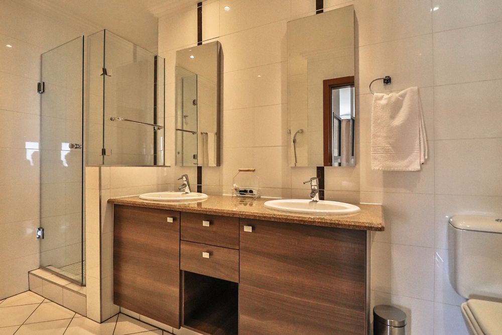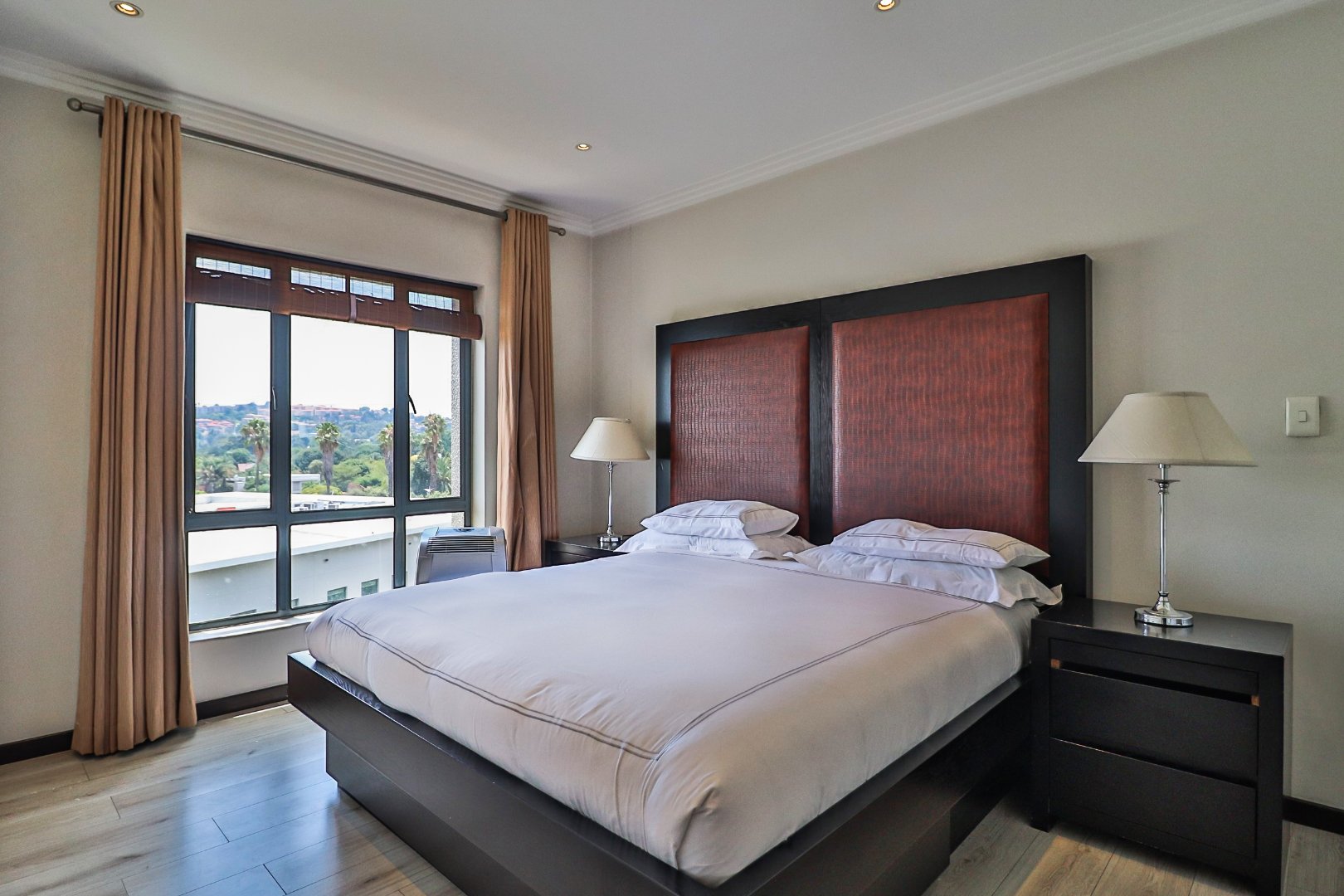 The apartment has an open plan living area with the kitchen and breakfast bar, overlooking the dining room and lounge with amazing views of Bedfordview from a Juliet balcony.