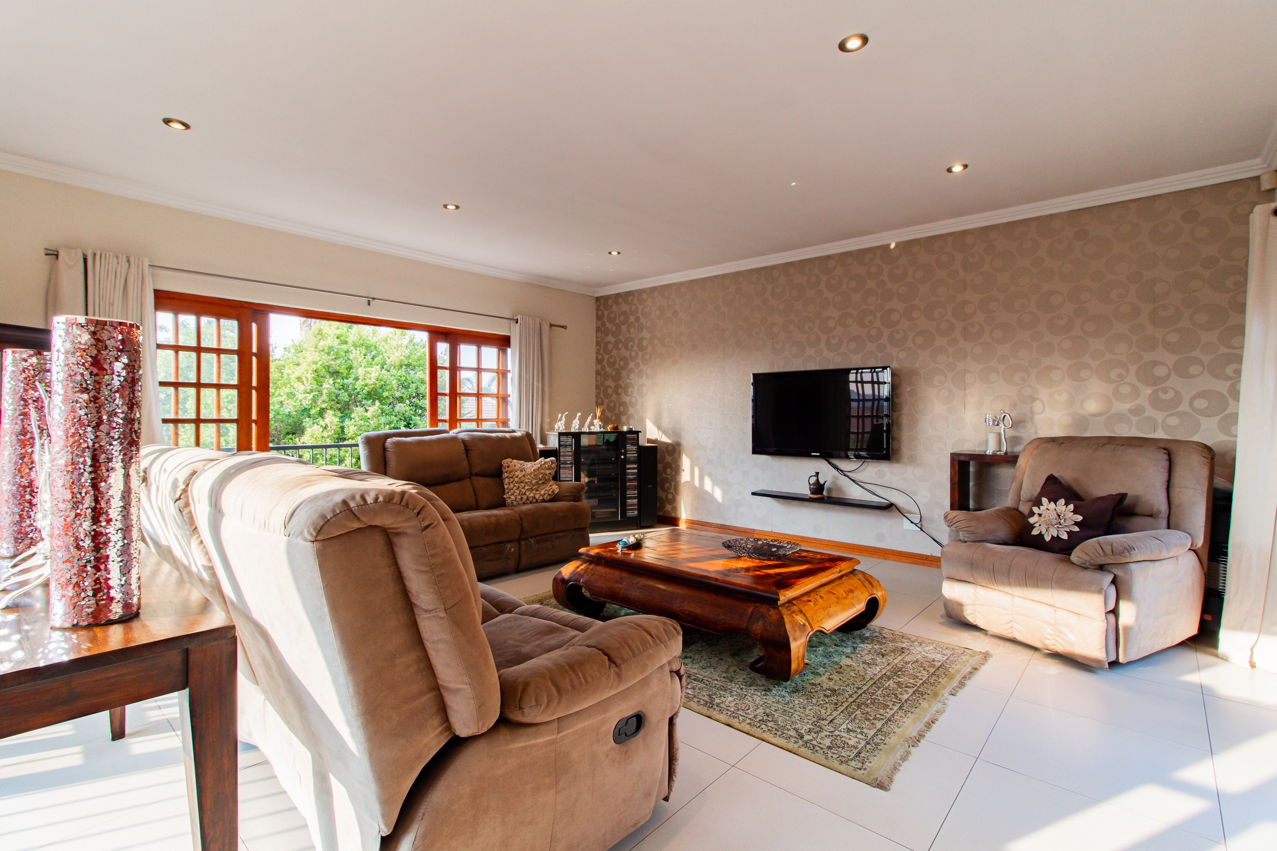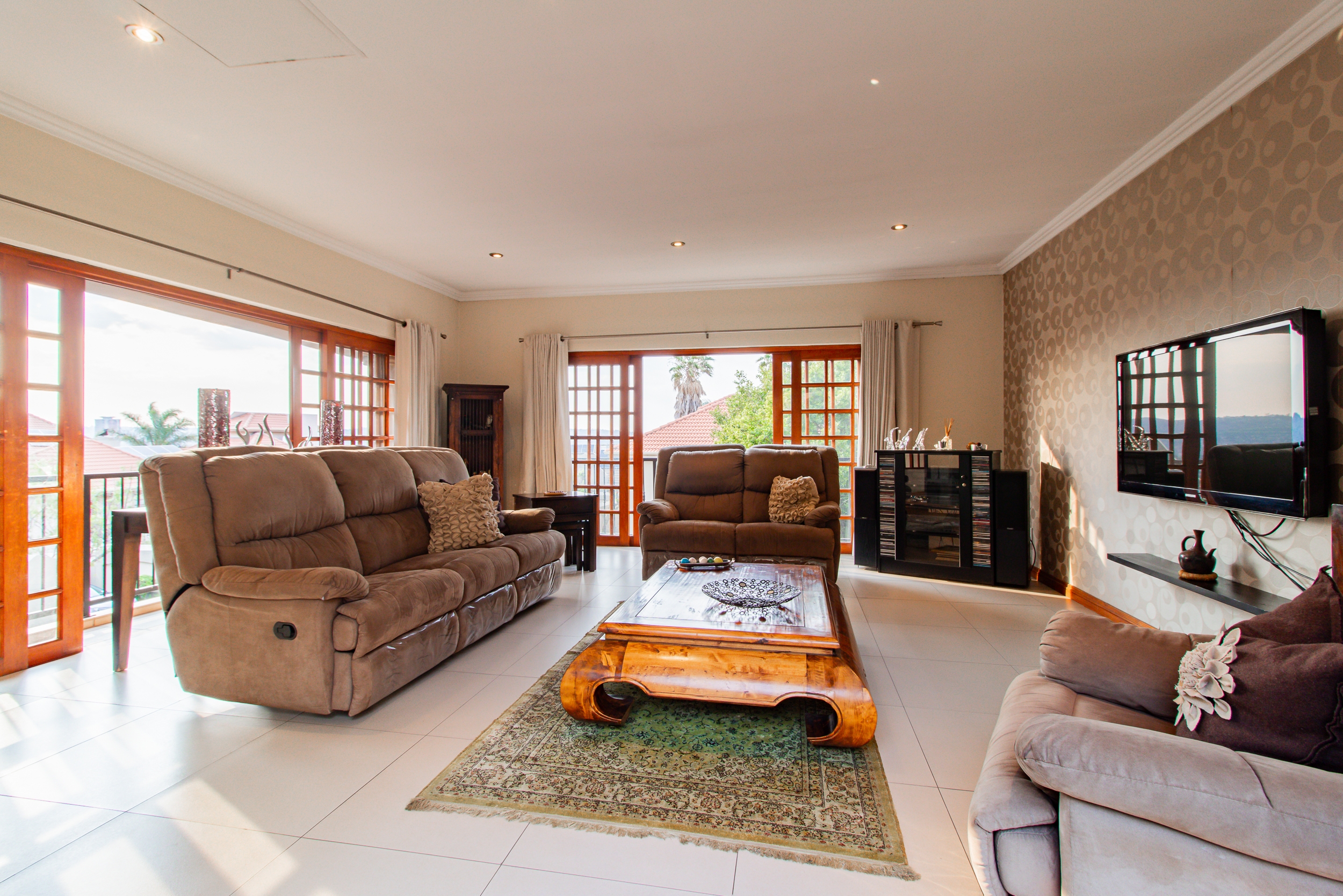 The open-plan living areas are ideal for entertaining, flowing seamlessly from the gourmet kitchen—complete with high-end appliances, granite countertops, and separate scullery — into the dining and lounge spaces. In addition there is also a formal lounge and a TV lounge.