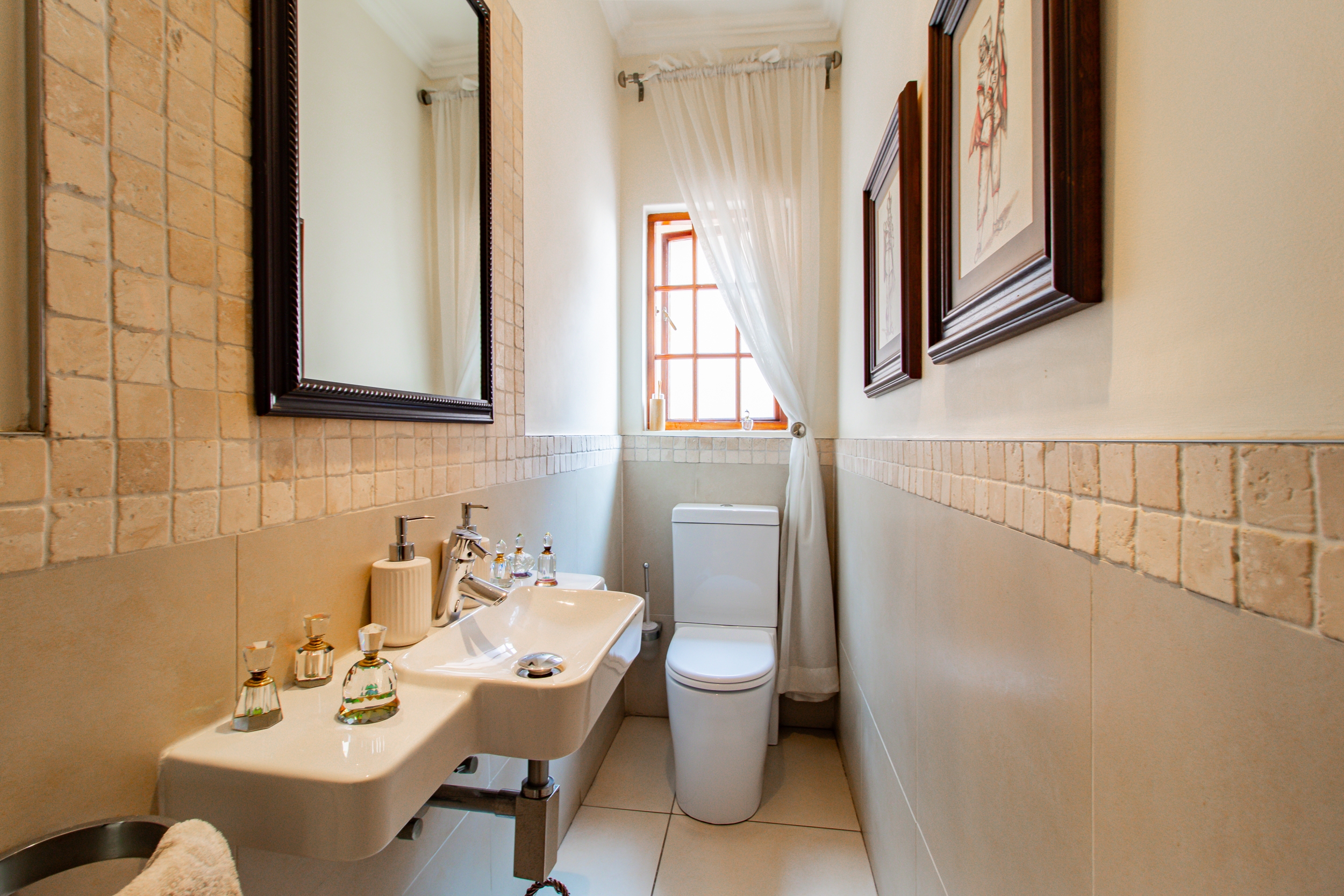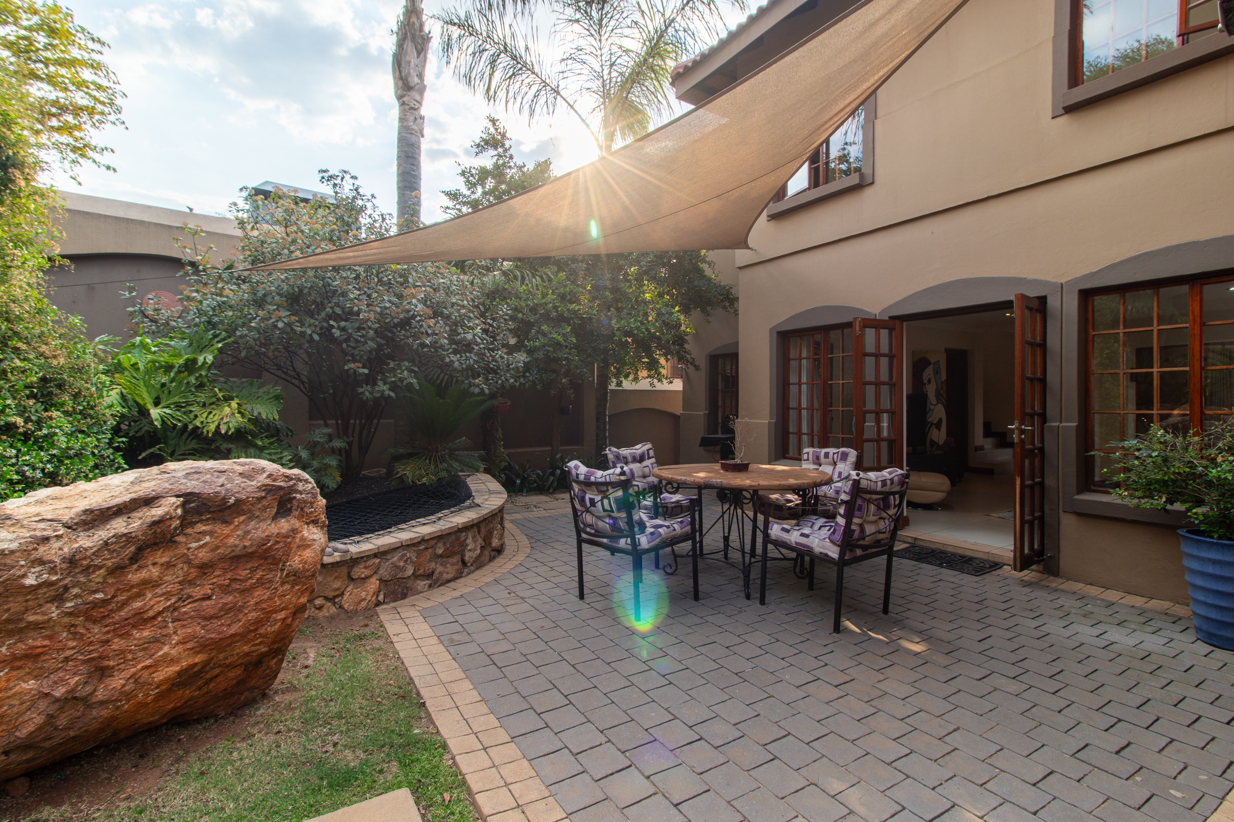 With upmarket finishes throughout, and in tip top condition this home is nestled in a secure estate with two beautiful gardens spaces - one leading off the TV Lounge and diningroom onto the pool and the other from the family room onto the Koi pond. Ideal to enjoy our beautiful South African climate.