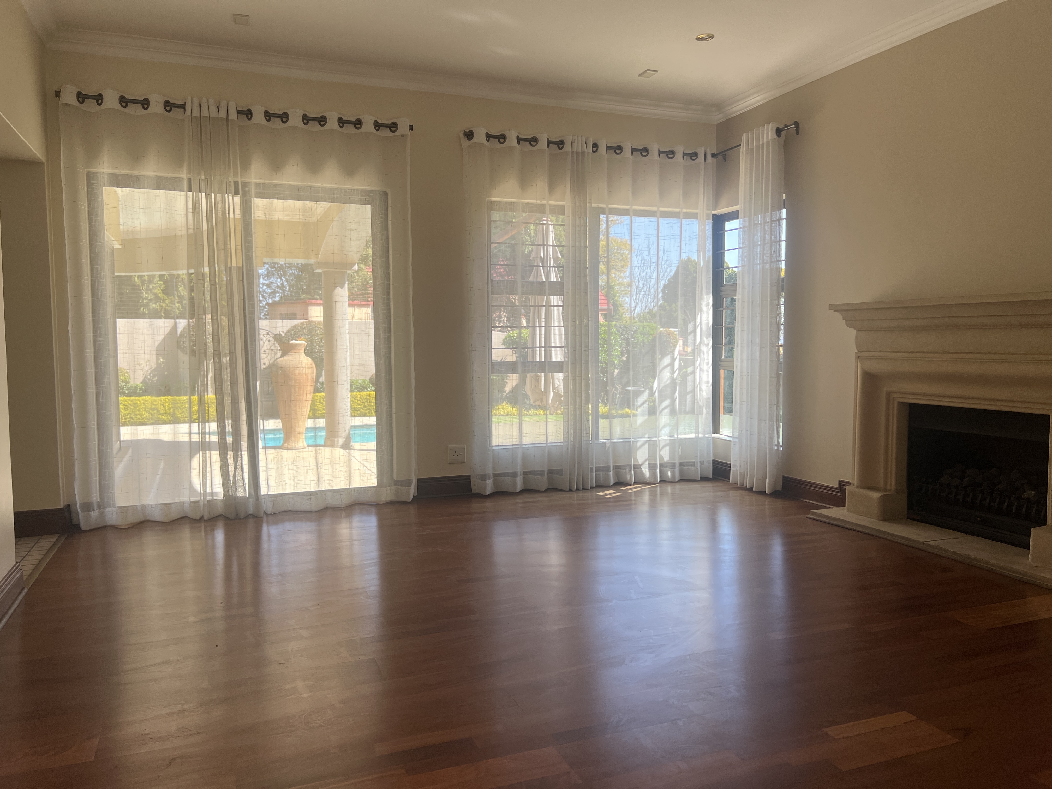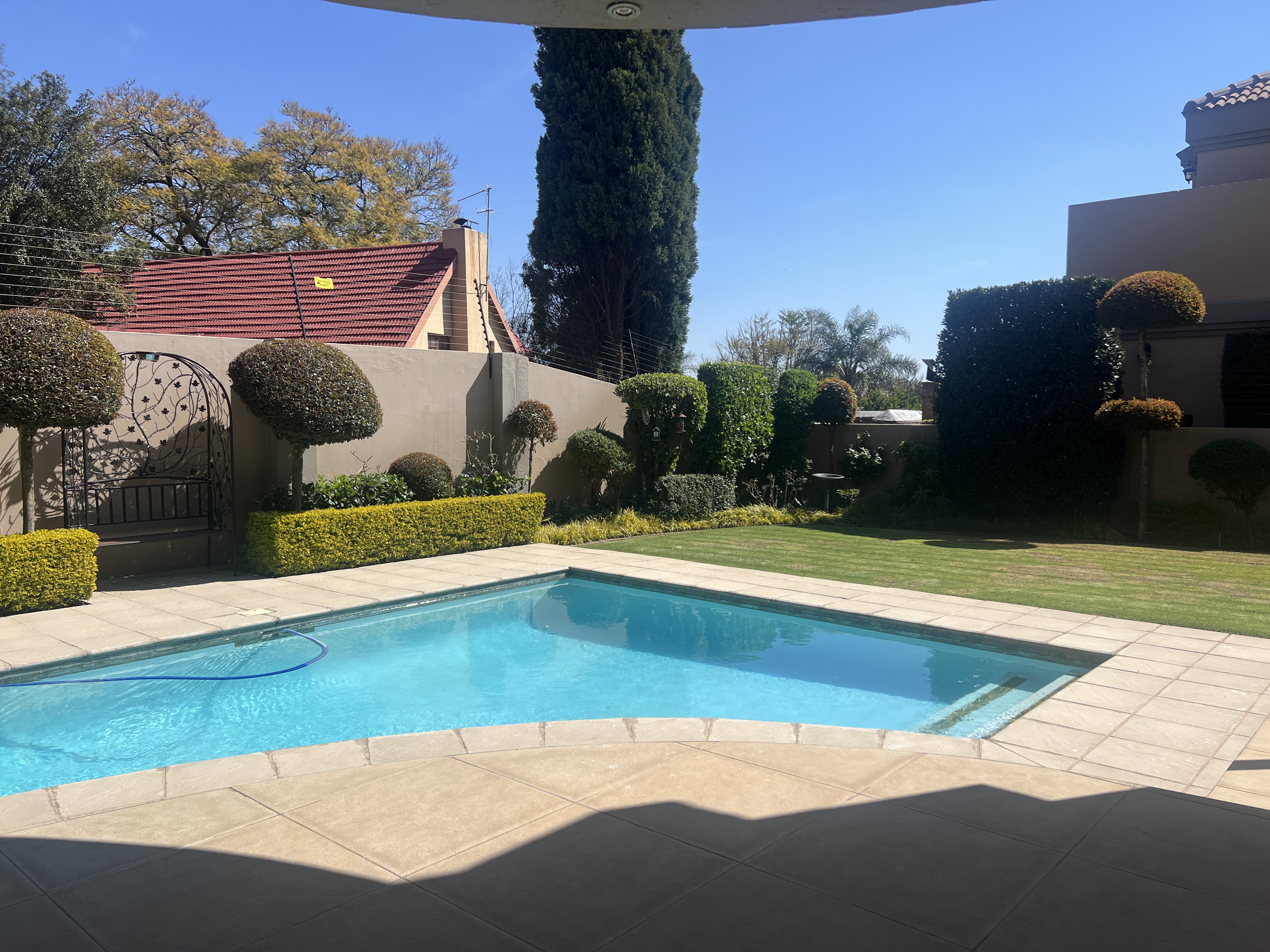 The spacious reception areas flow seamlessly to a large covered veranda, ideal for year-round gatherings, overlooking the sparkling pool and magnificent landscaped garden. The large open-plan kitchen, complete with quality finishes, serves as the heart of the home, connecting effortlessly to the living and dining spaces. The kitchen has a breakfast nook, pantry and separate scullery.