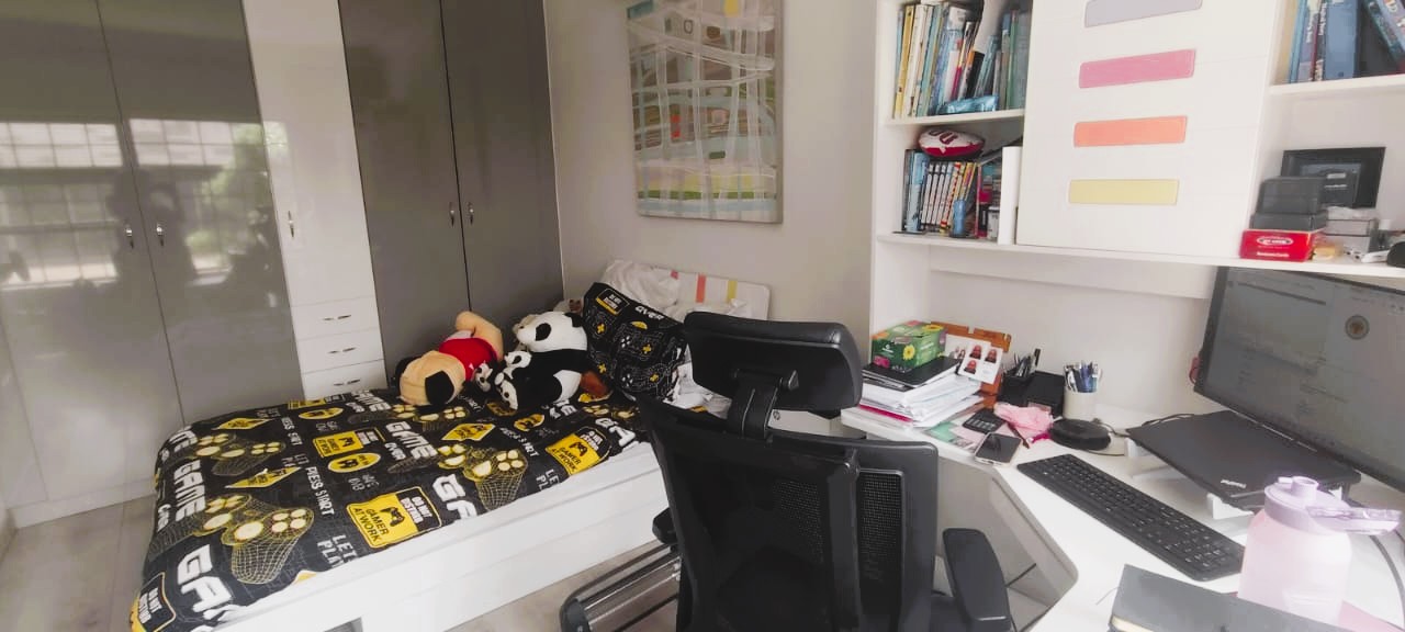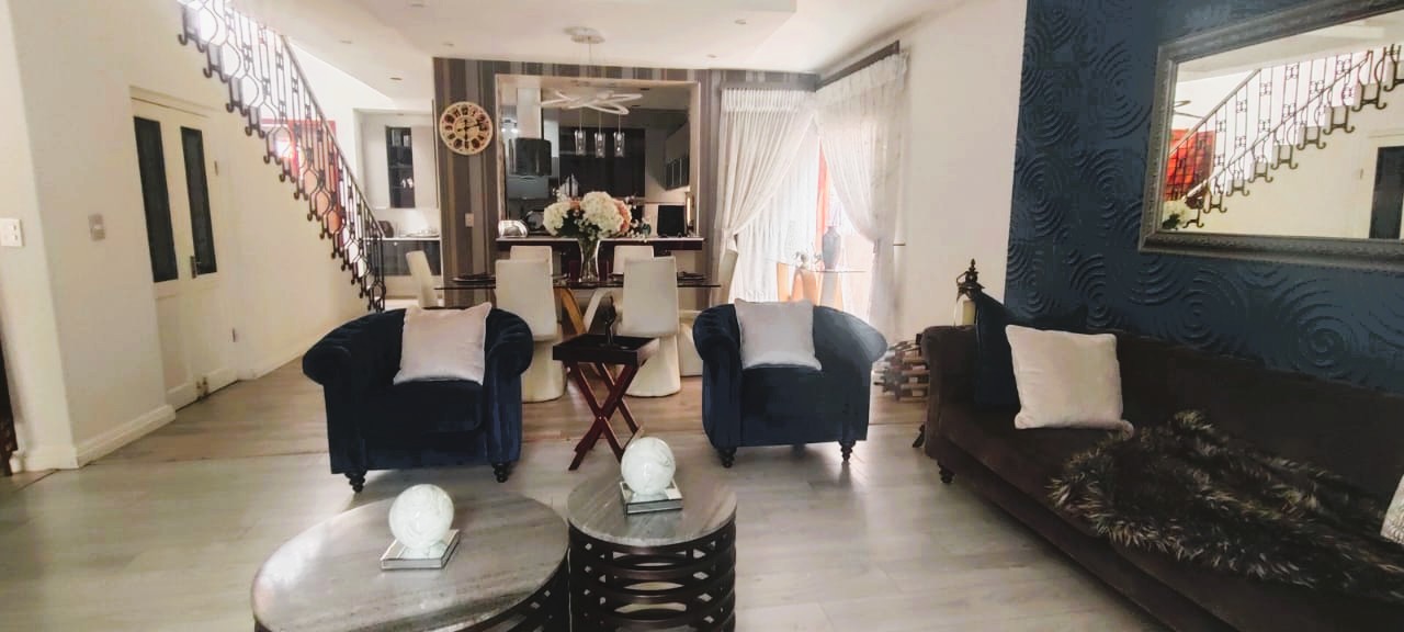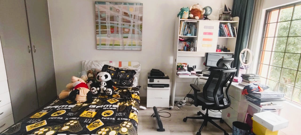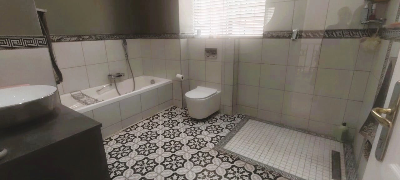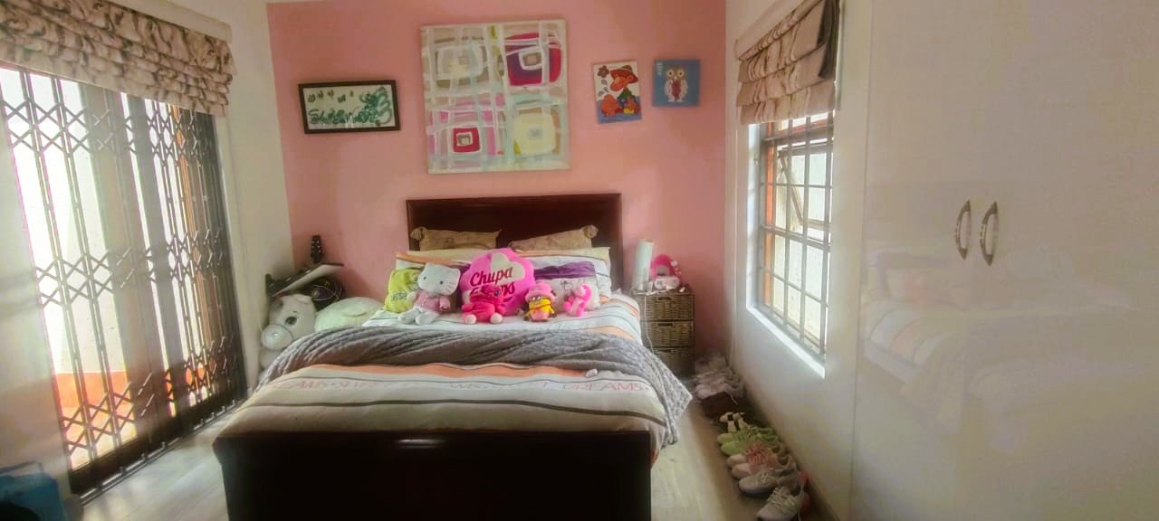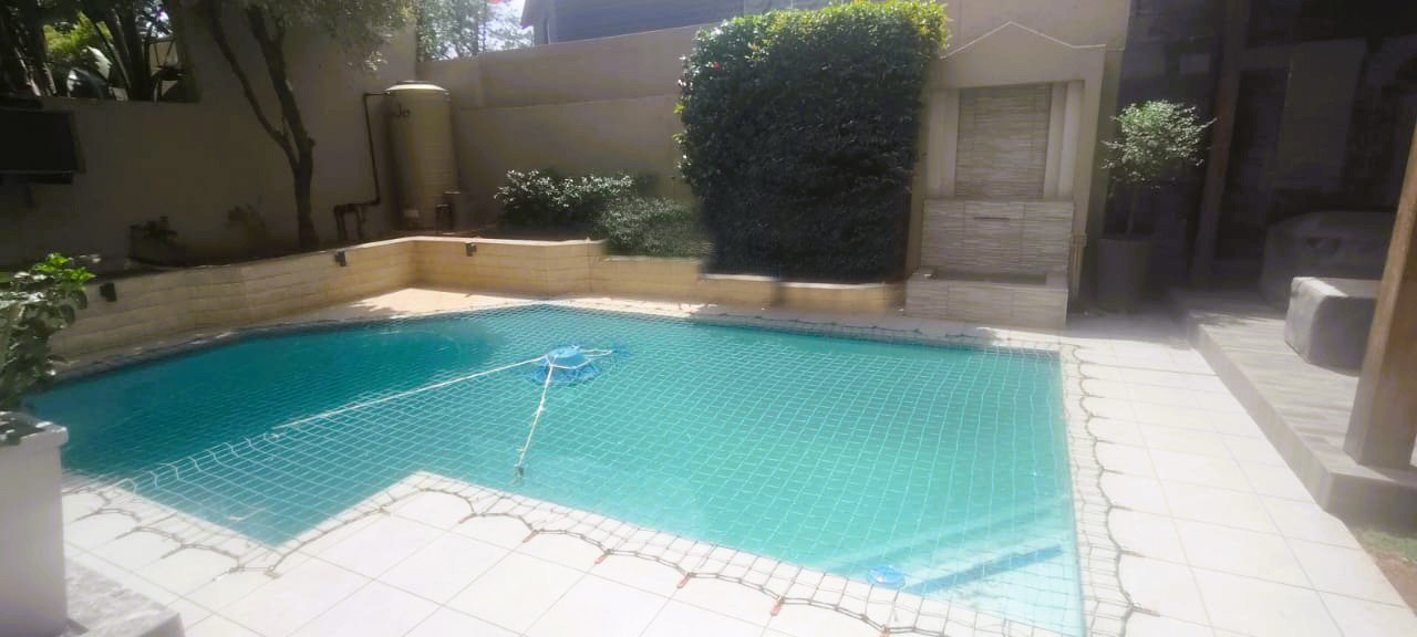 Introducing a sleek and contemporary 4-bedroom cluster home situated in a sought-after estate. This property features an open-plan kitchen and dining area, a cozy TV room, and an elegant formal lounge. The guest room includes a kitchenette and a private bathroom. Enjoy the convenience of a double garage, a sparkling pool, and a built-in braai in a stunning entertainment space. The home boasts three bedrooms, including one with an en-suite bathroom, along with a full family bathroom. Additional highlights include two outdoor balconies and a comfortable pajama lounge.