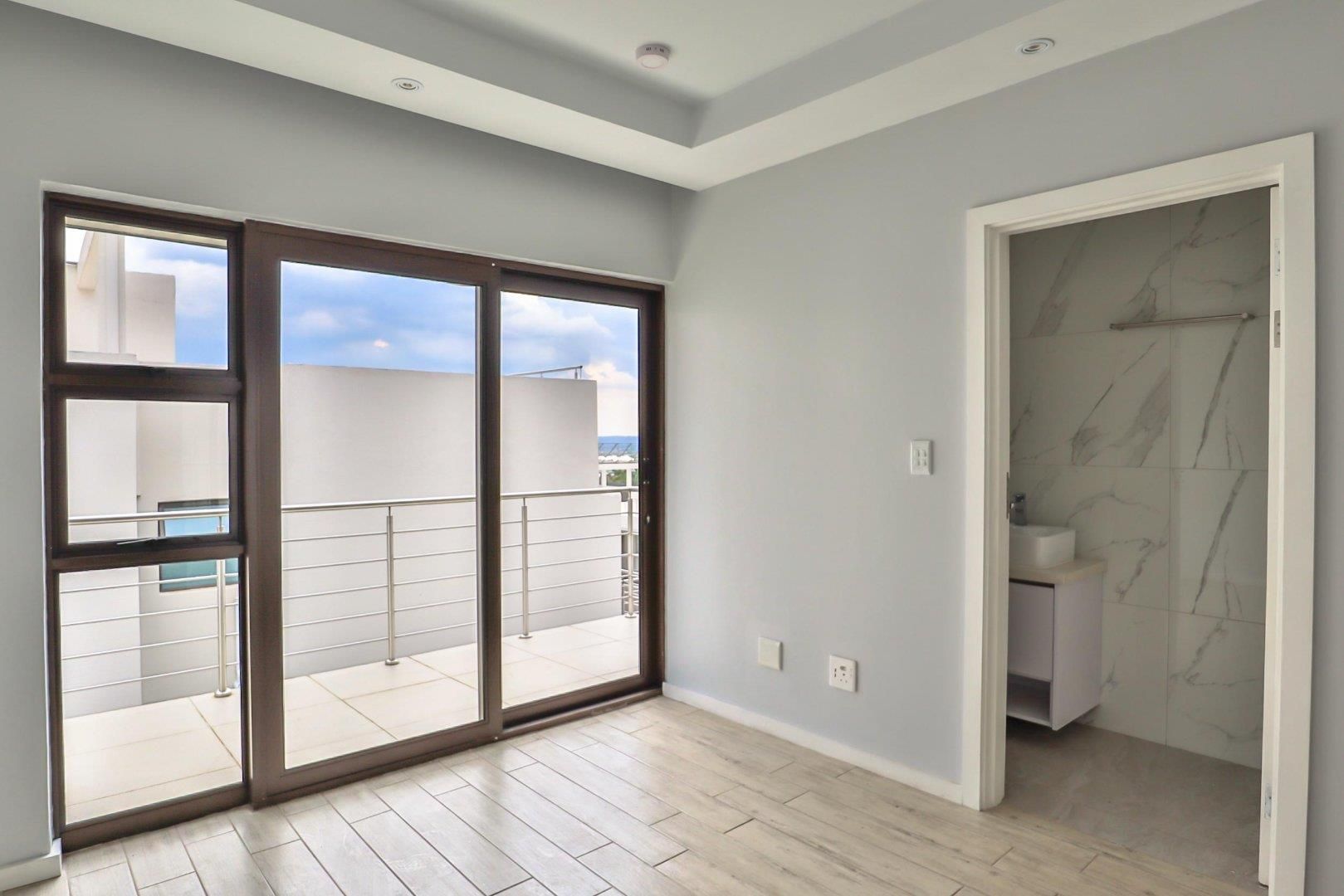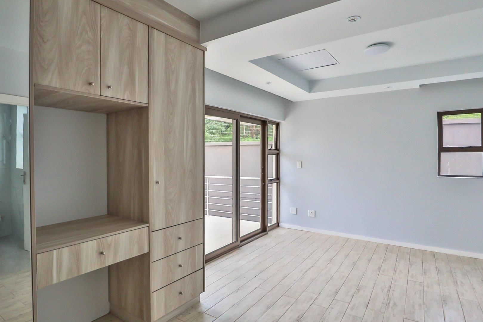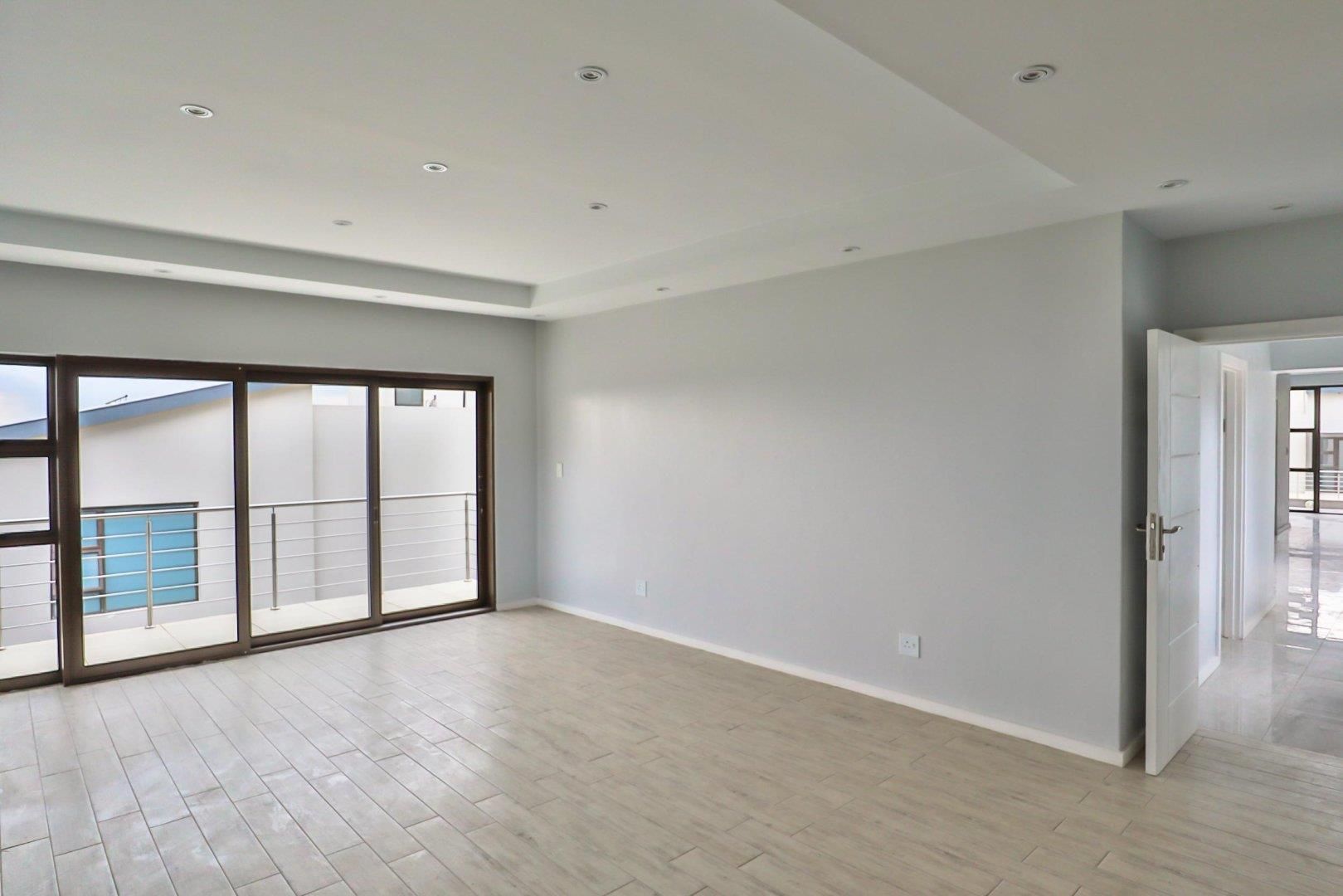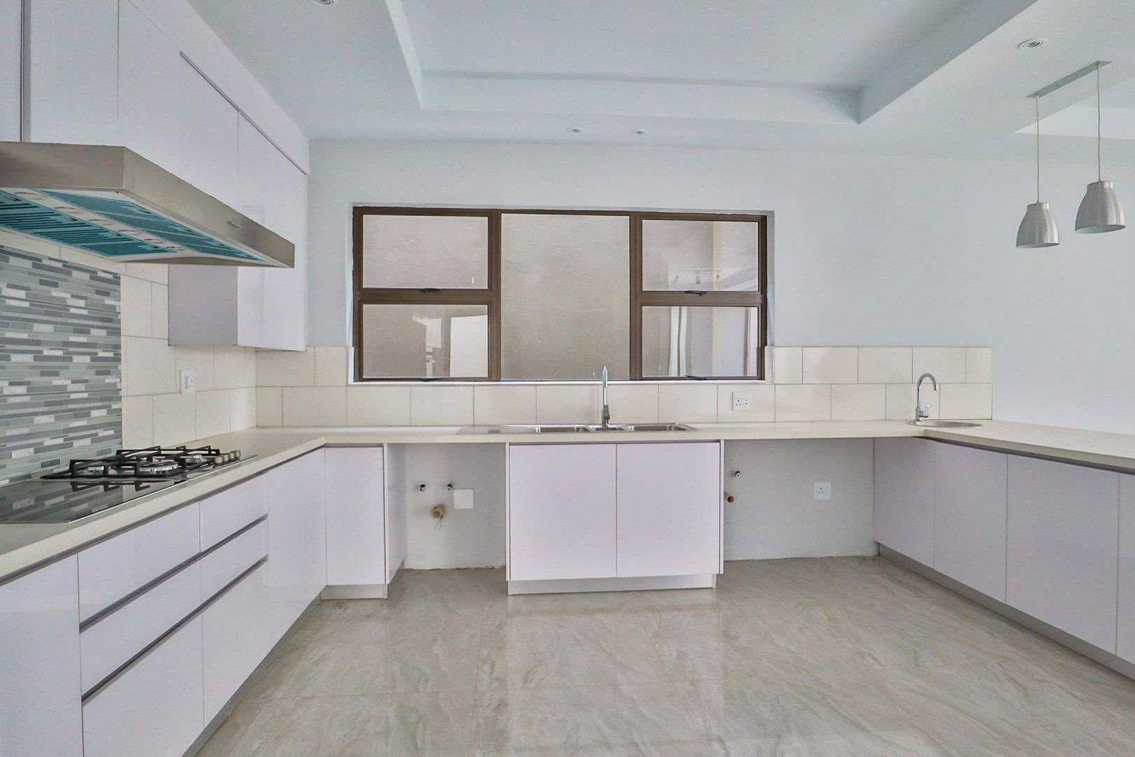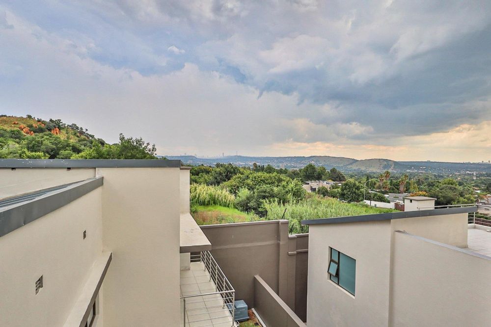 This luxurious cluster is located in a 24-hour secured complex in the heart of Bedfordview. This brand new home comes equipped with the most up-to-date modern finishes from the double volume front entrance all the way up to the 3rd story rooftop terrace. There are 3 reception rooms that lead off from the spacious gourmet kitchen fitted with Caesar stone tops and a breakfast bar/island. The spacious dining room leads onto a beautiful covered patio with a built-in braai, a low-maintenance garden, and a sparkling lap pool. There is also a study downstairs.