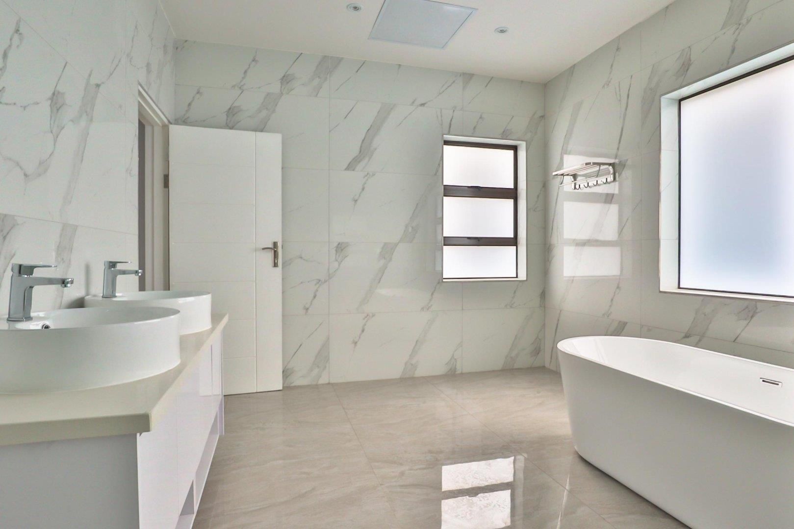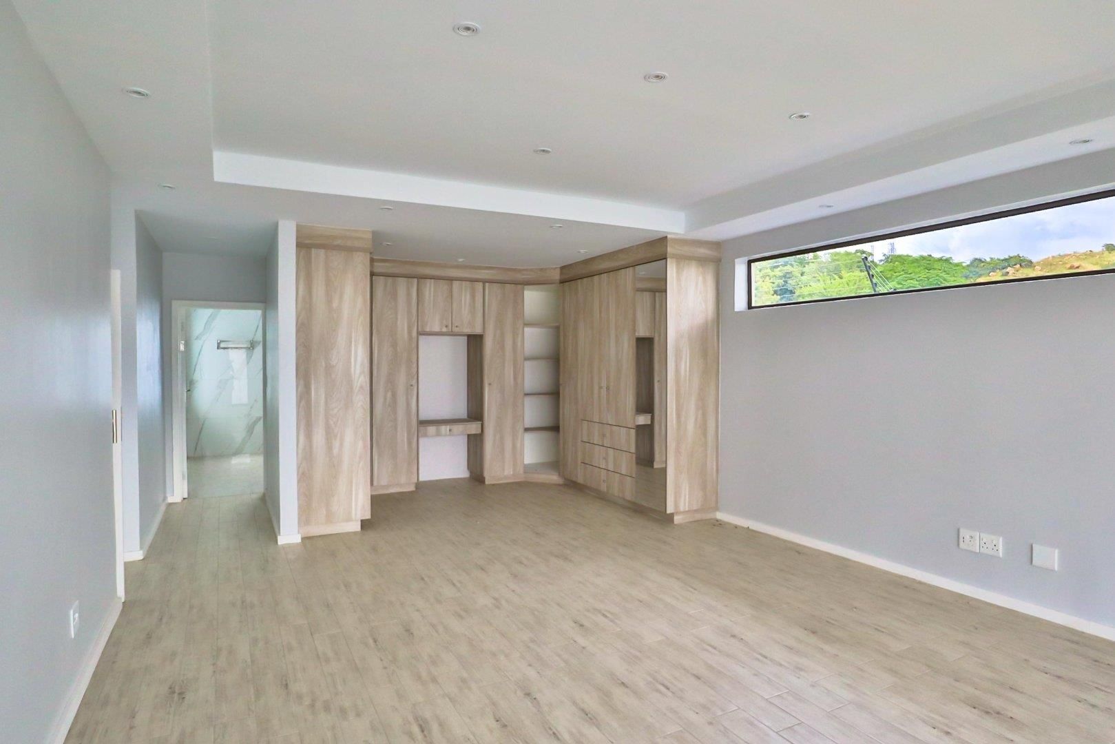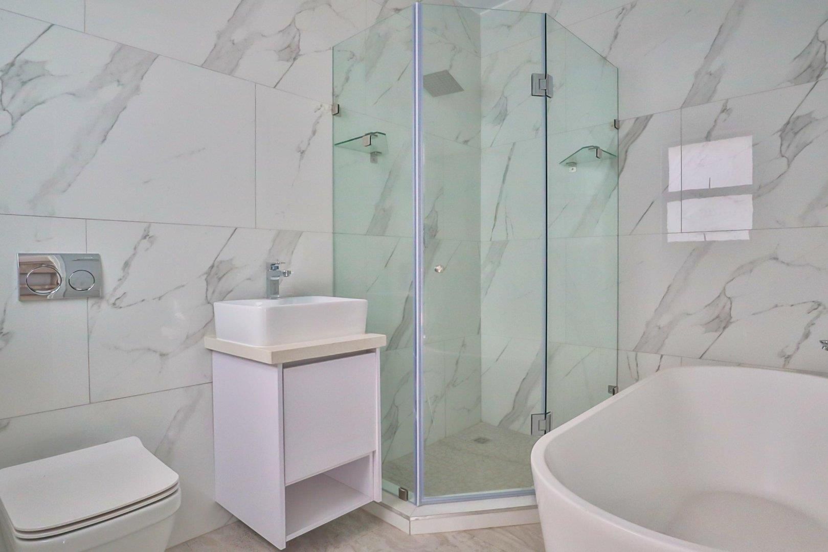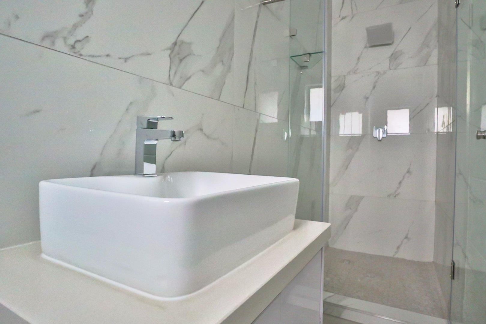 This luxurious cluster is located in a 24-hour secured complex in the heart of Bedfordview. This brand new home comes equipped with the most up-to-date modern finishes from the double volume front entrance all the way up to the 3rd story rooftop terrace. There are 3 reception rooms that lead off from the spacious gourmet kitchen fitted with Caesar stone tops and a breakfast bar/island. The spacious dining room leads onto a beautiful covered patio with a built-in braai, a low-maintenance garden, and a sparkling lap pool. There is also a study downstairs.