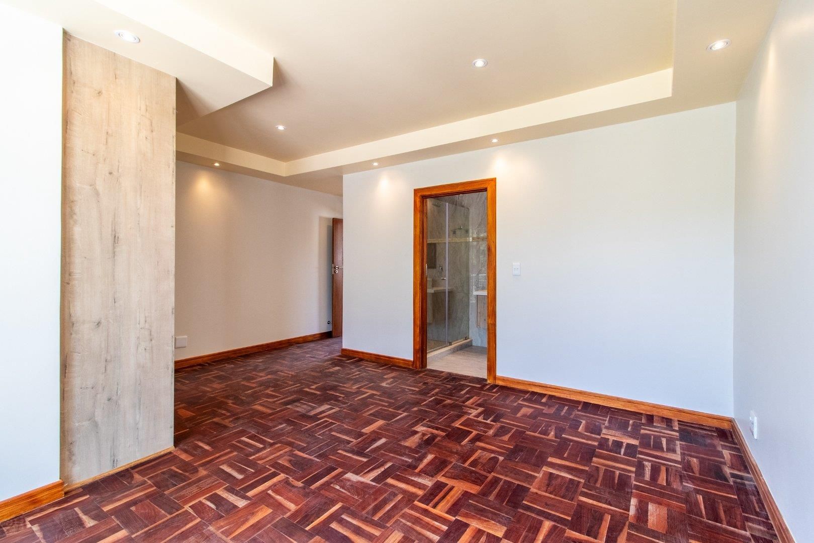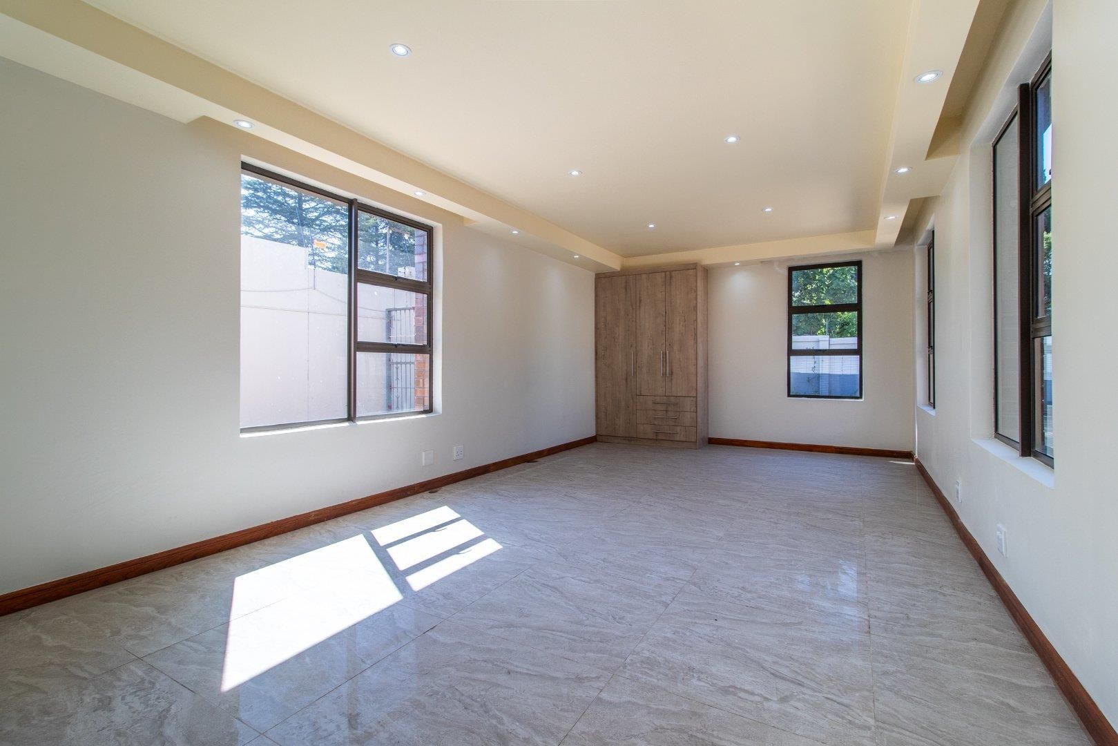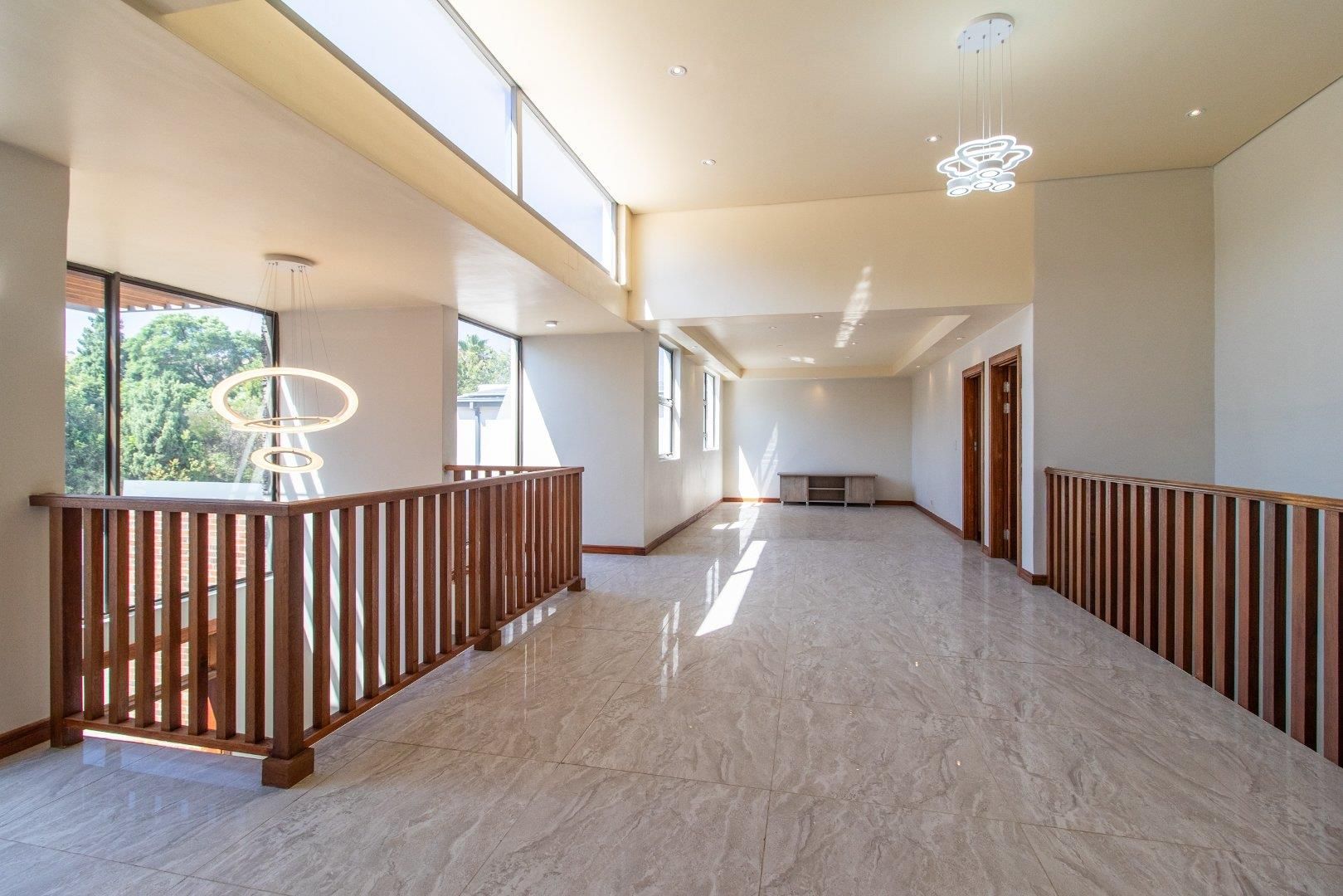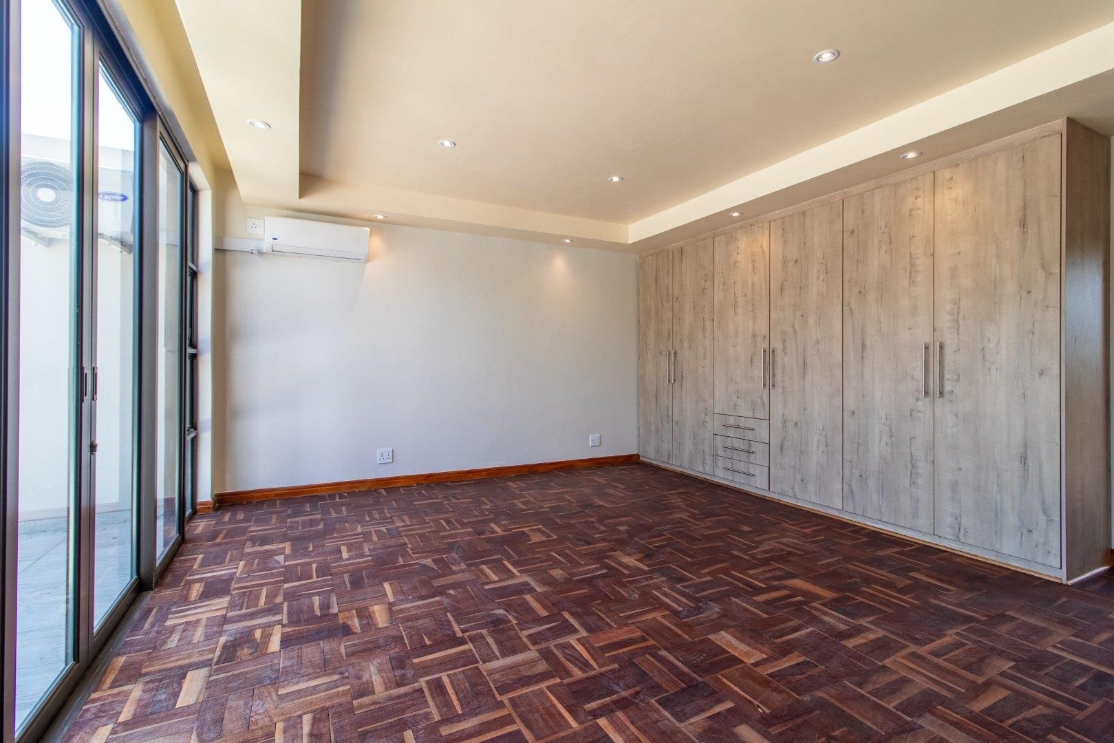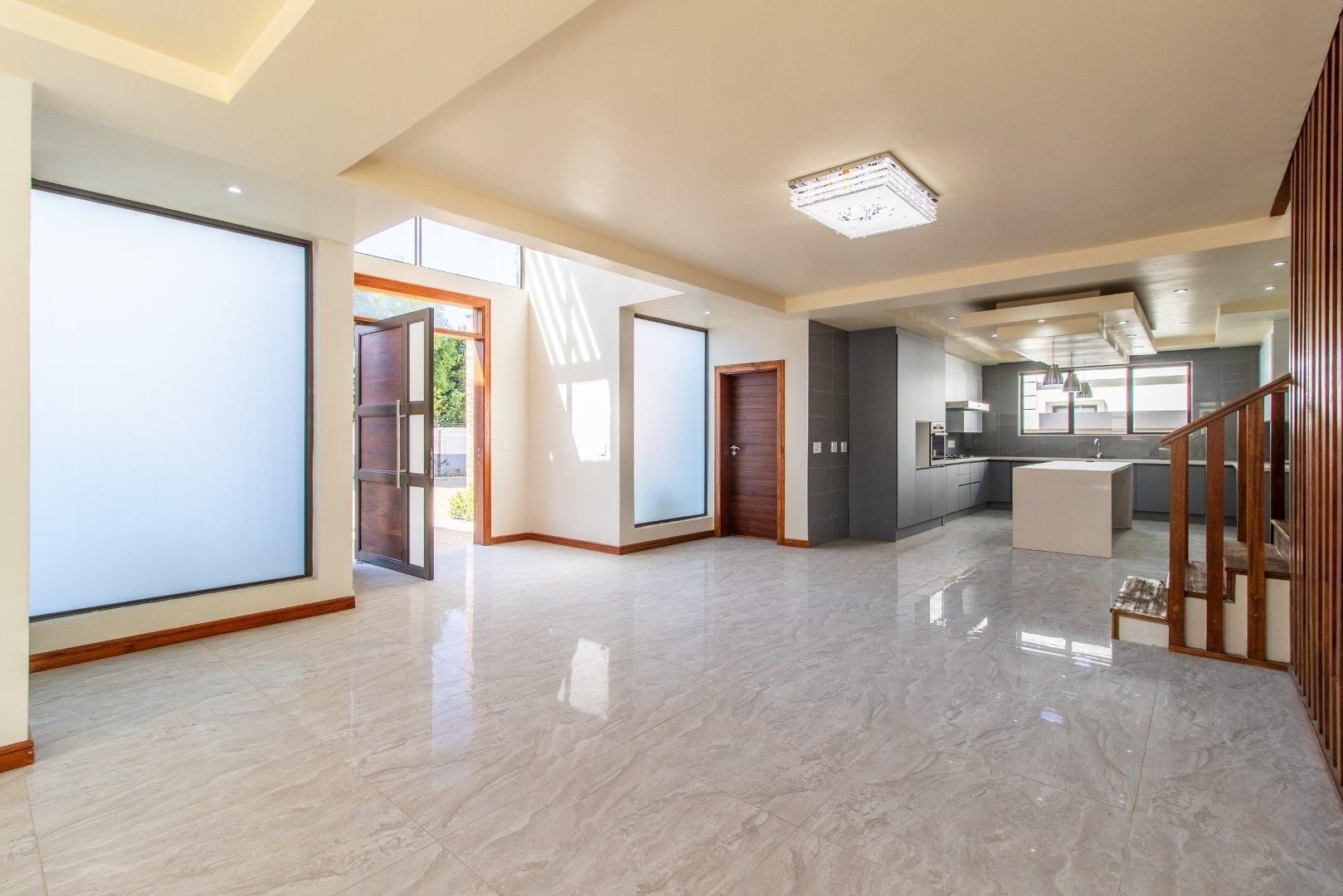 Last unit left in this elite complex of Bedfordview. This home comprises of cotemporary living with vast open plan, tiles and parquet flooring. As you enter the double volume entrance you are invited by the brightness and warmth of a family home. The open plan gourmet kitchen is ideal for entertaining and cooking up a storm with its large island, and bulkhead design over the island, gas hob and electric stove, Ceasar Stone tops and space for a double door fridge/freezer. There is a seperate scullery with space for all appliances.
