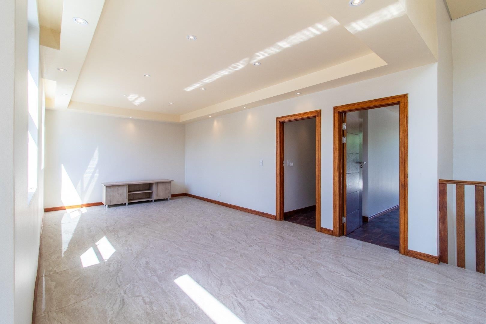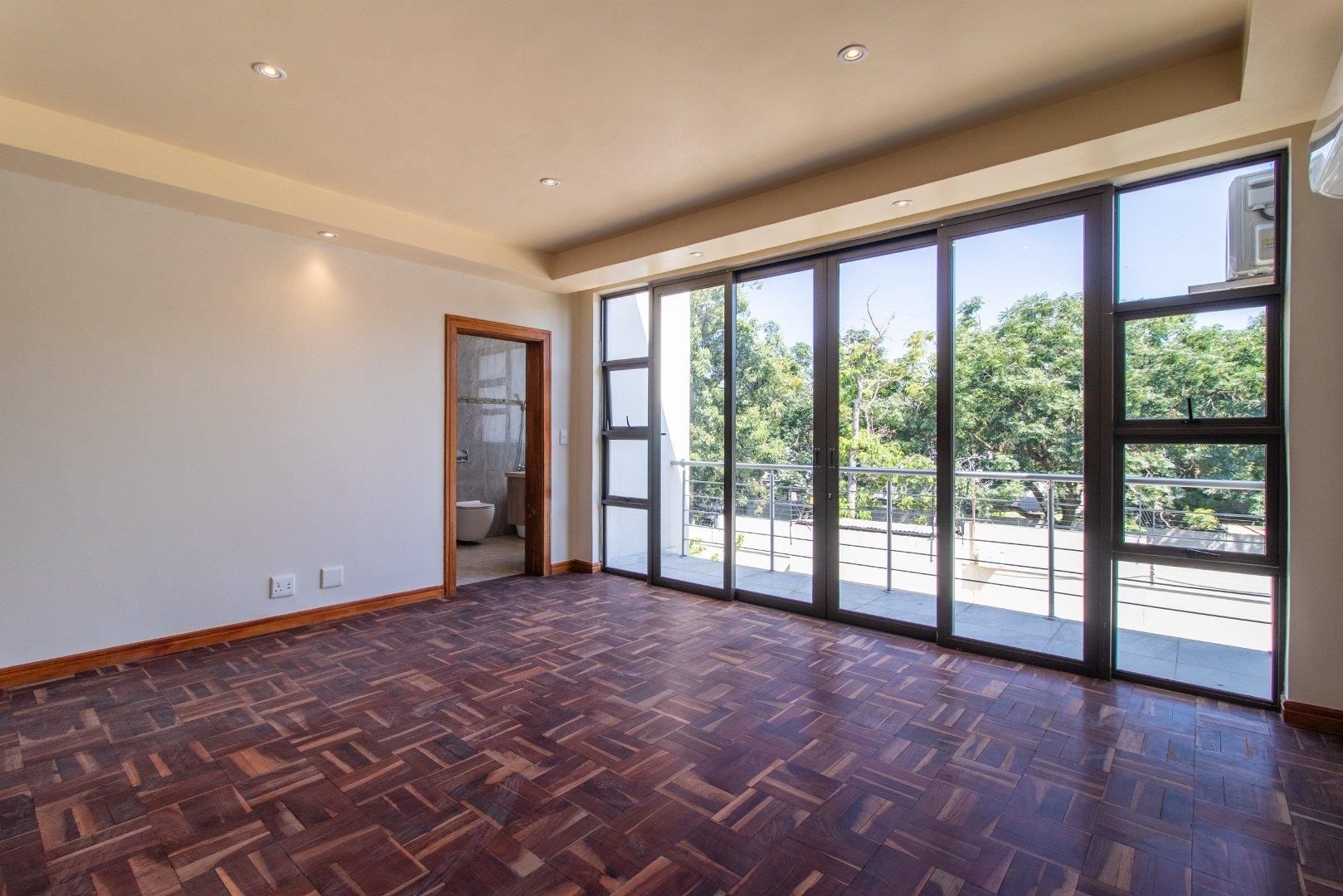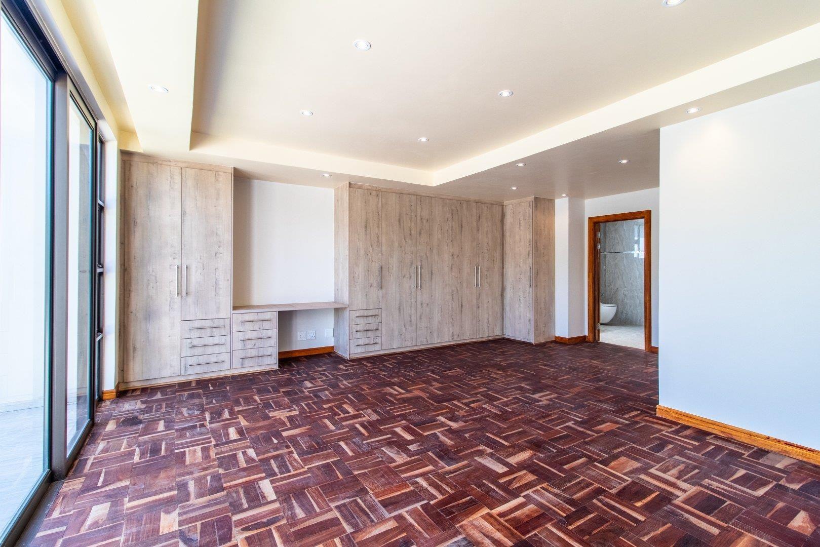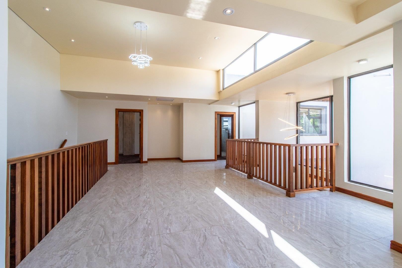 Last unit left in this elite complex of Bedfordview. This home comprises of cotemporary living with vast open plan, tiles and parquet flooring. As you enter the double volume entrance you are invited by the brightness and warmth of a family home. The open plan gourmet kitchen is ideal for entertaining and cooking up a storm with its large island, and bulkhead design over the island, gas hob and electric stove, Ceasar Stone tops and space for a double door fridge/freezer. There is a seperate scullery with space for all appliances.