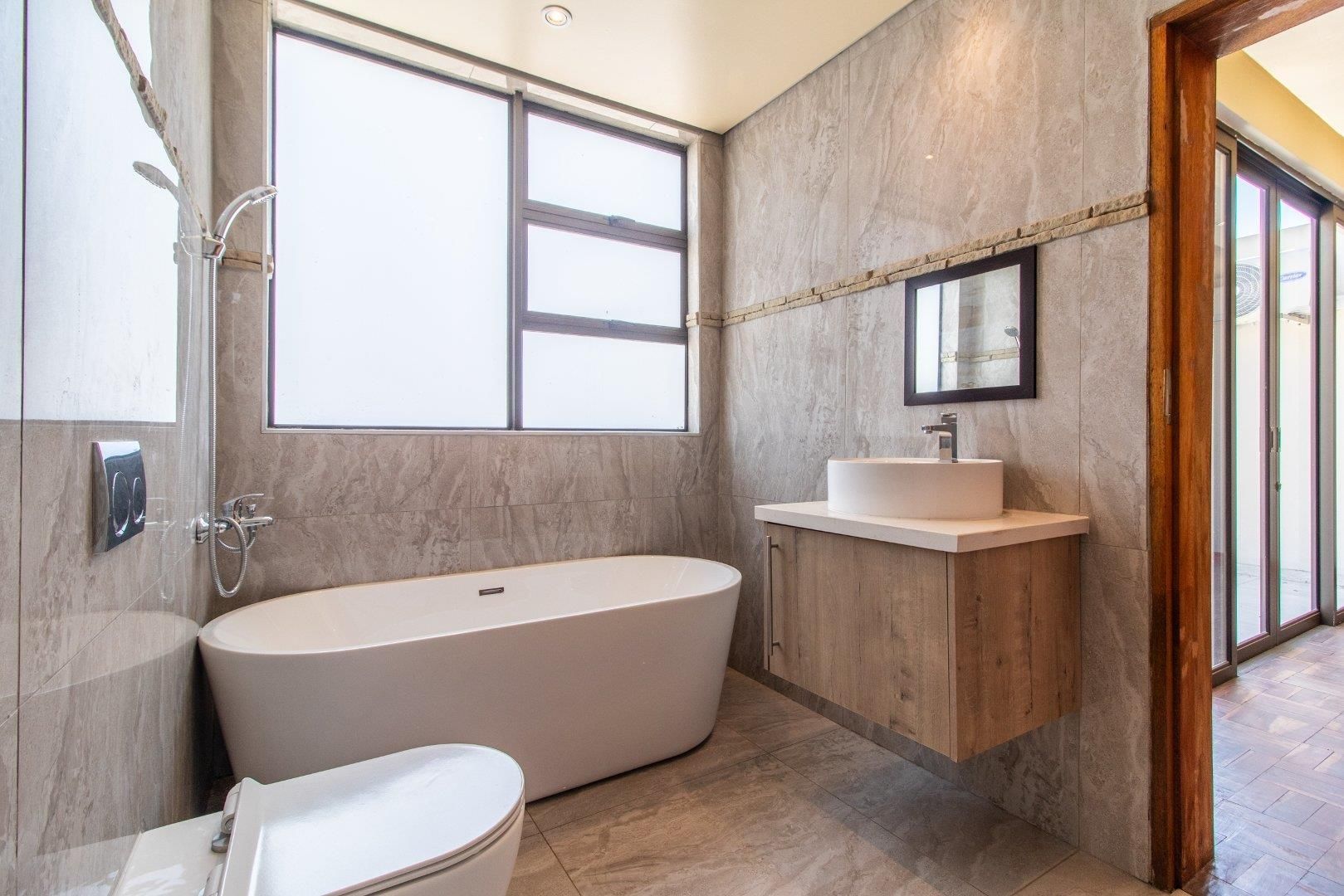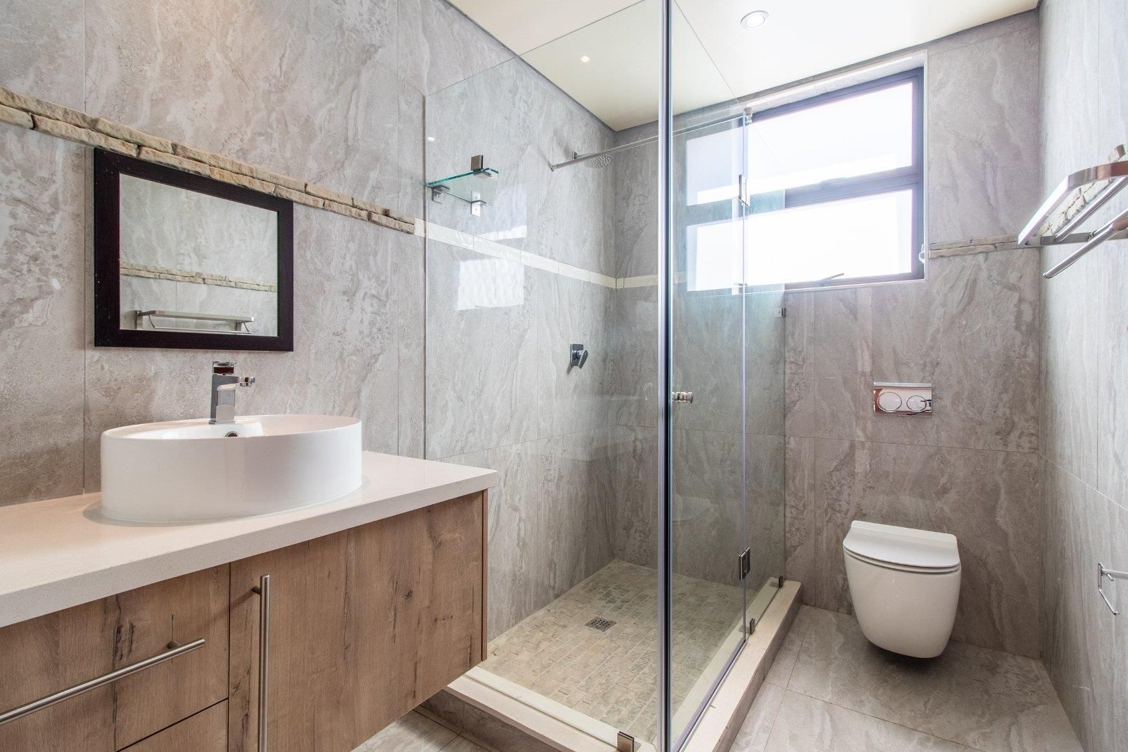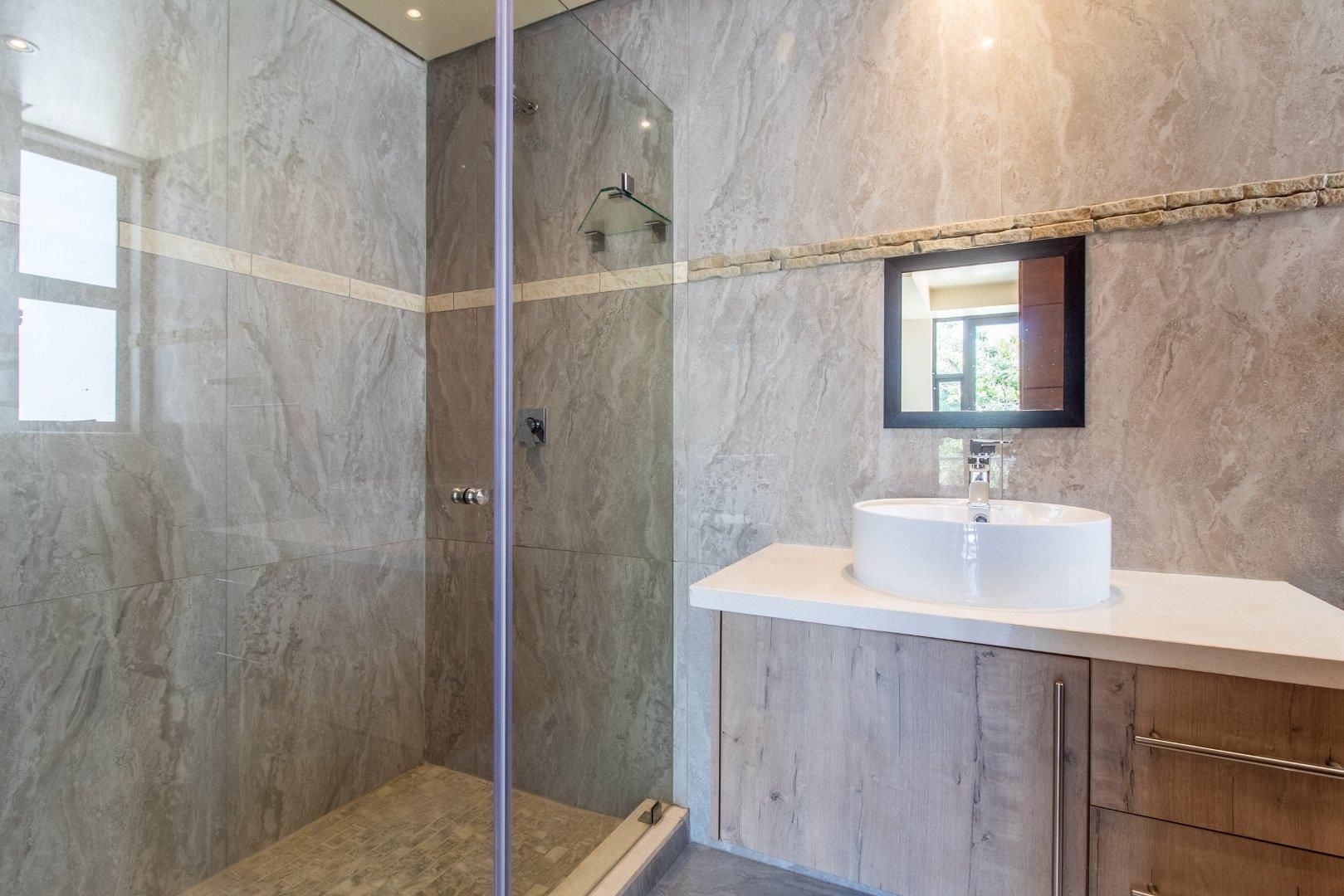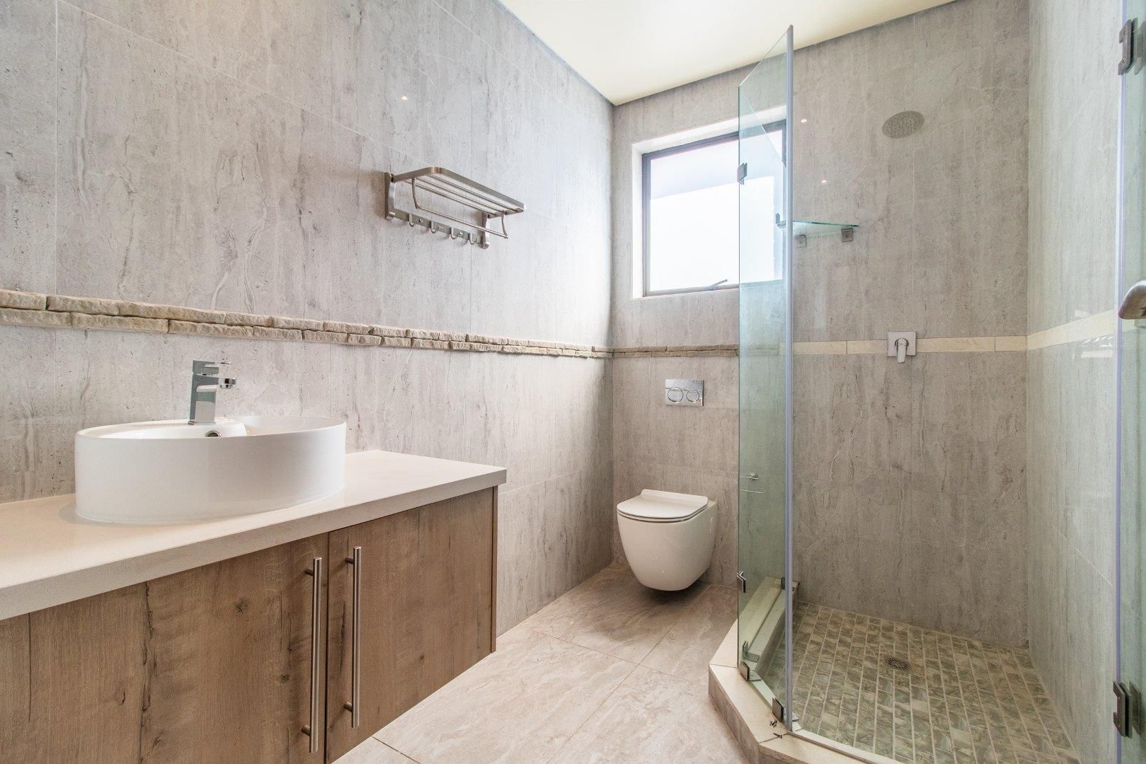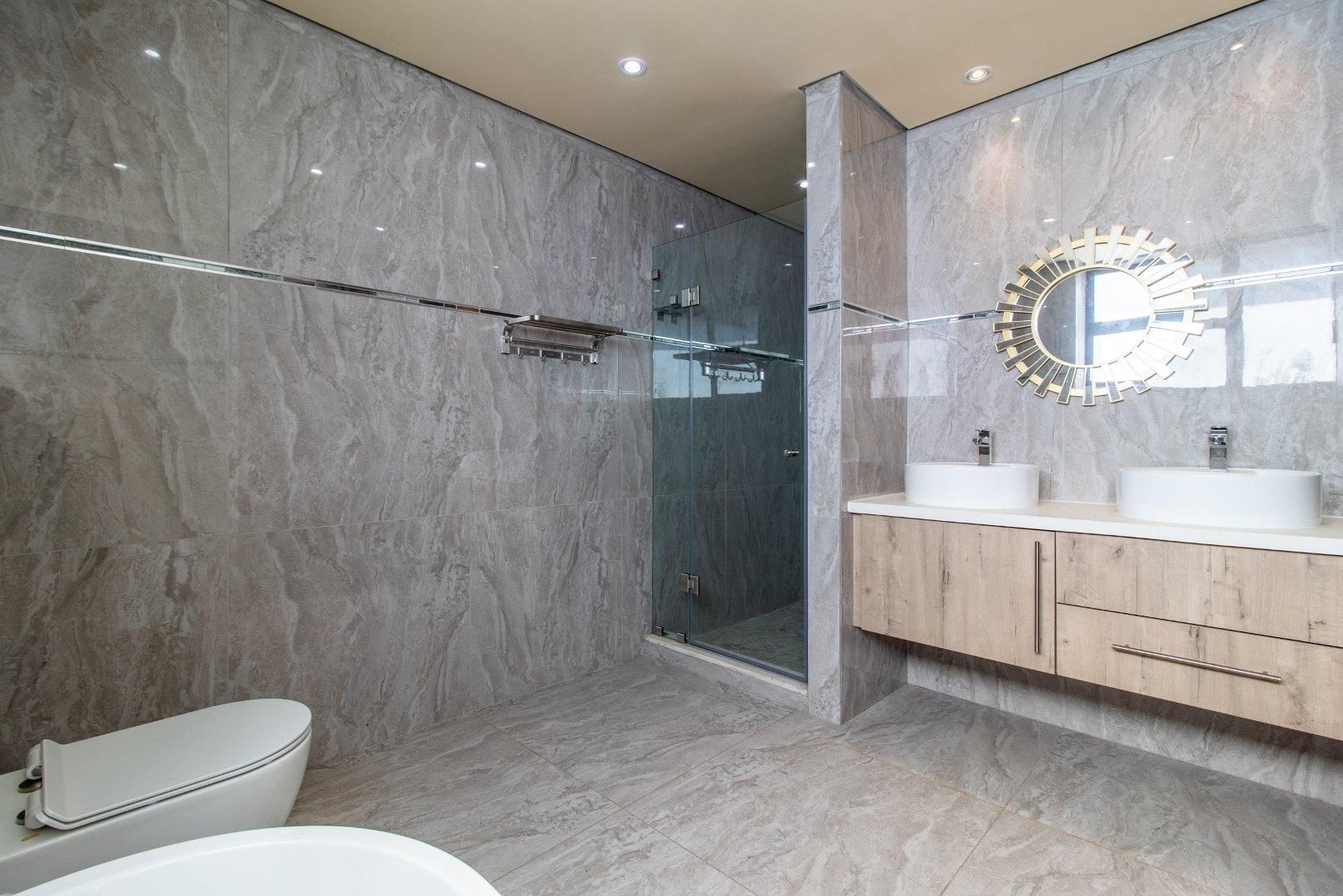 Last unit left in this elite complex of Bedfordview. This home comprises of cotemporary living with vast open plan, tiles and parquet flooring. As you enter the double volume entrance you are invited by the brightness and warmth of a family home. The open plan gourmet kitchen is ideal for entertaining and cooking up a storm with its large island, and bulkhead design over the island, gas hob and electric stove, Ceasar Stone tops and space for a double door fridge/freezer. There is a seperate scullery with space for all appliances.