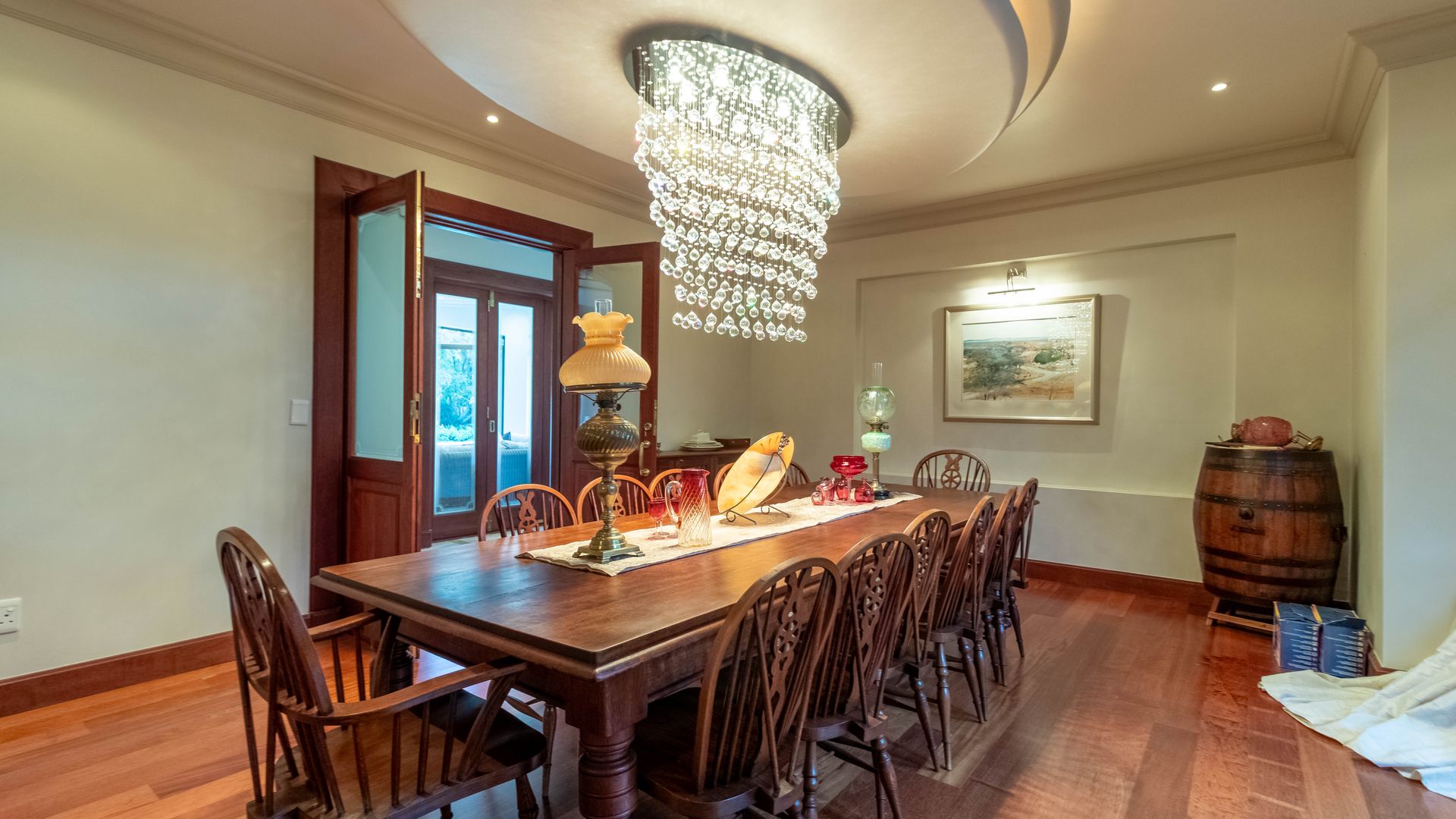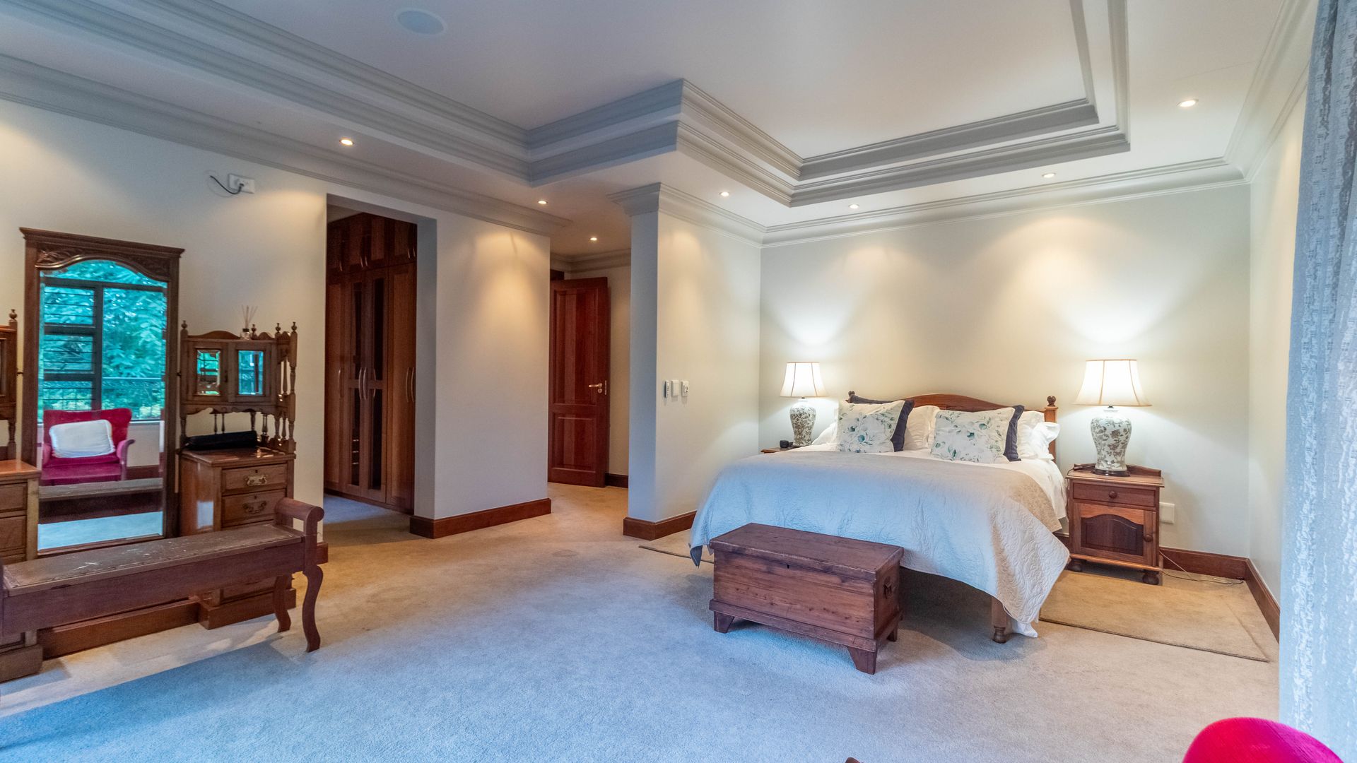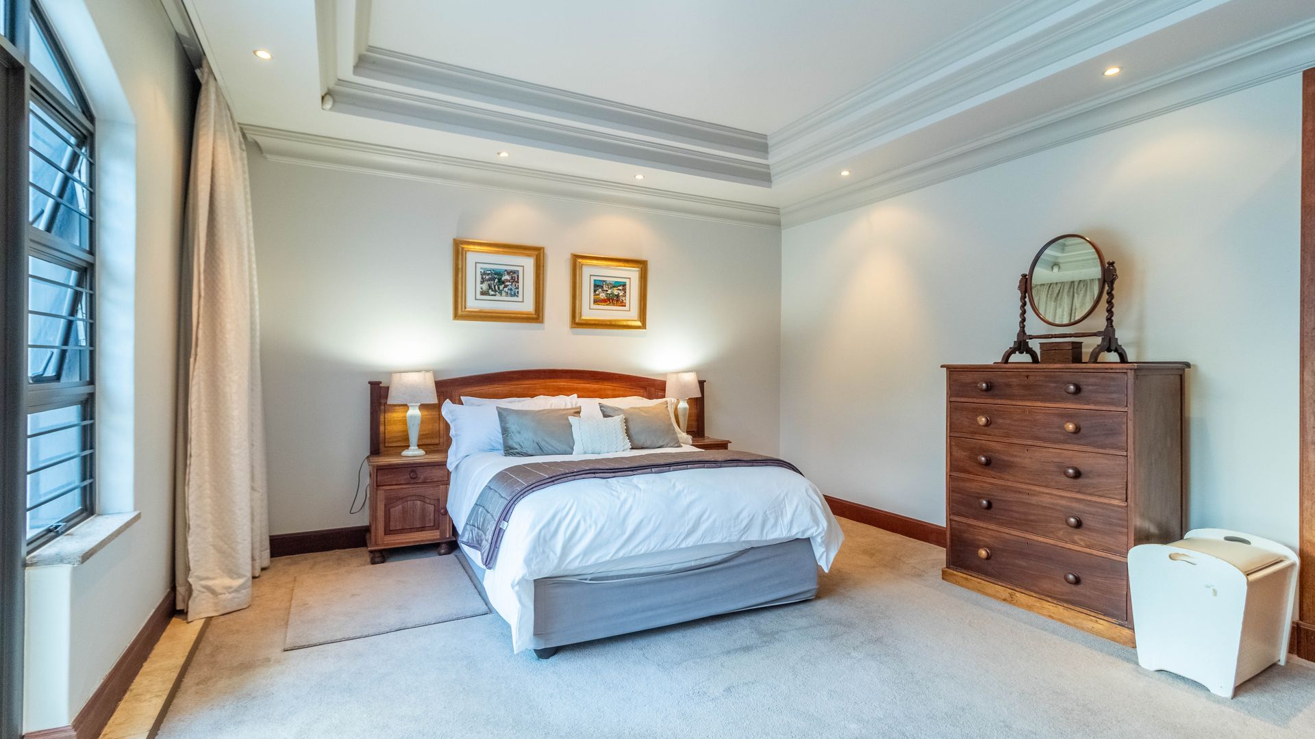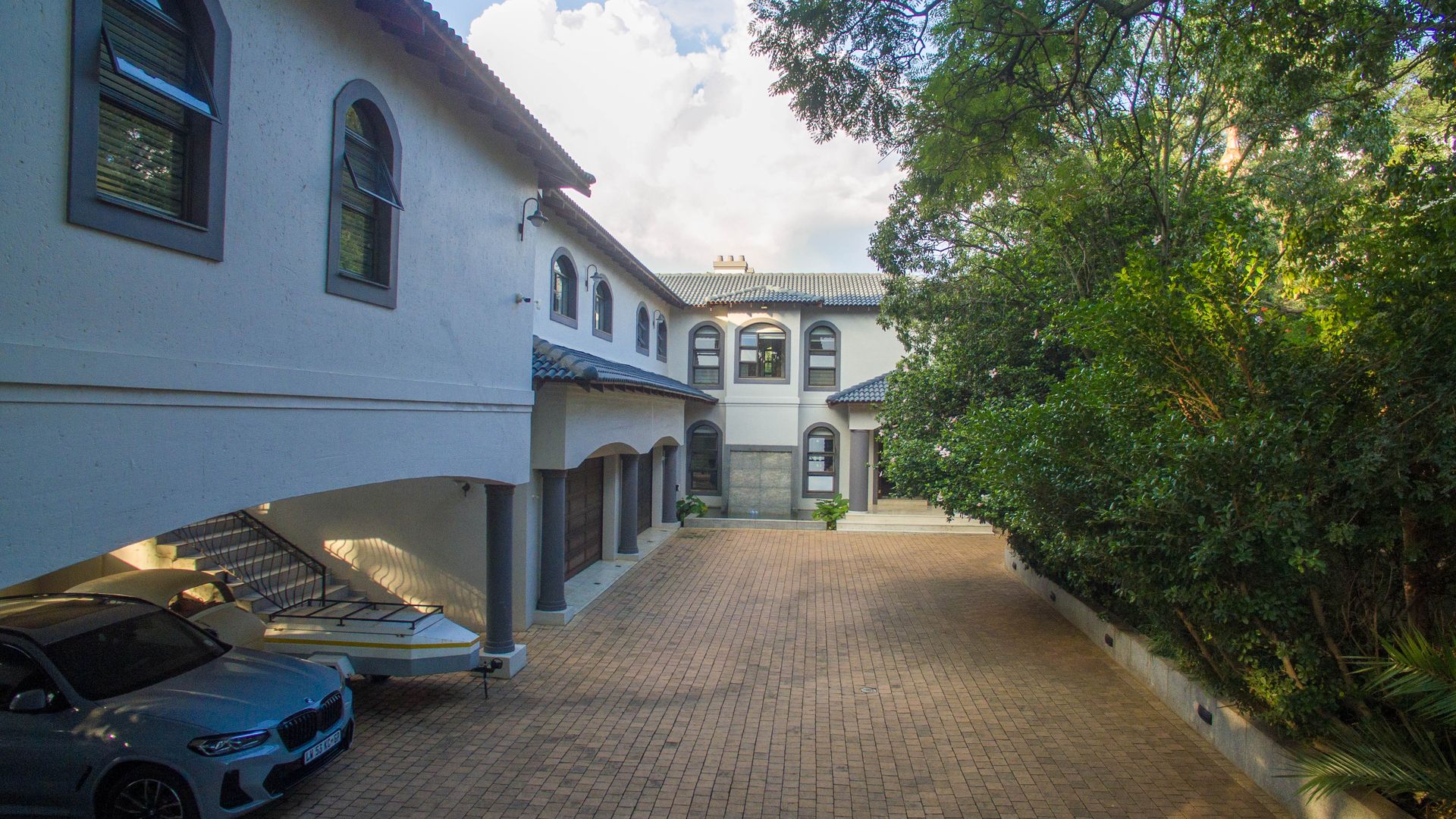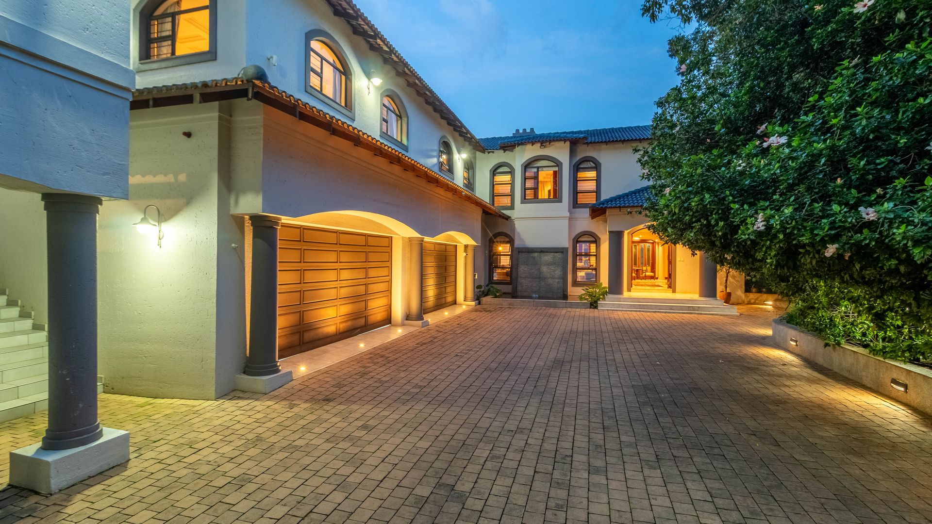The home is energy-efficient with a 13kW Sunsink solar system and 24 solar panels, ensuring sustainability. The property also boasts a borehole and a 10,000L Jojo tank with pumps. For parking, there are 4 garages and a 4-car carport.