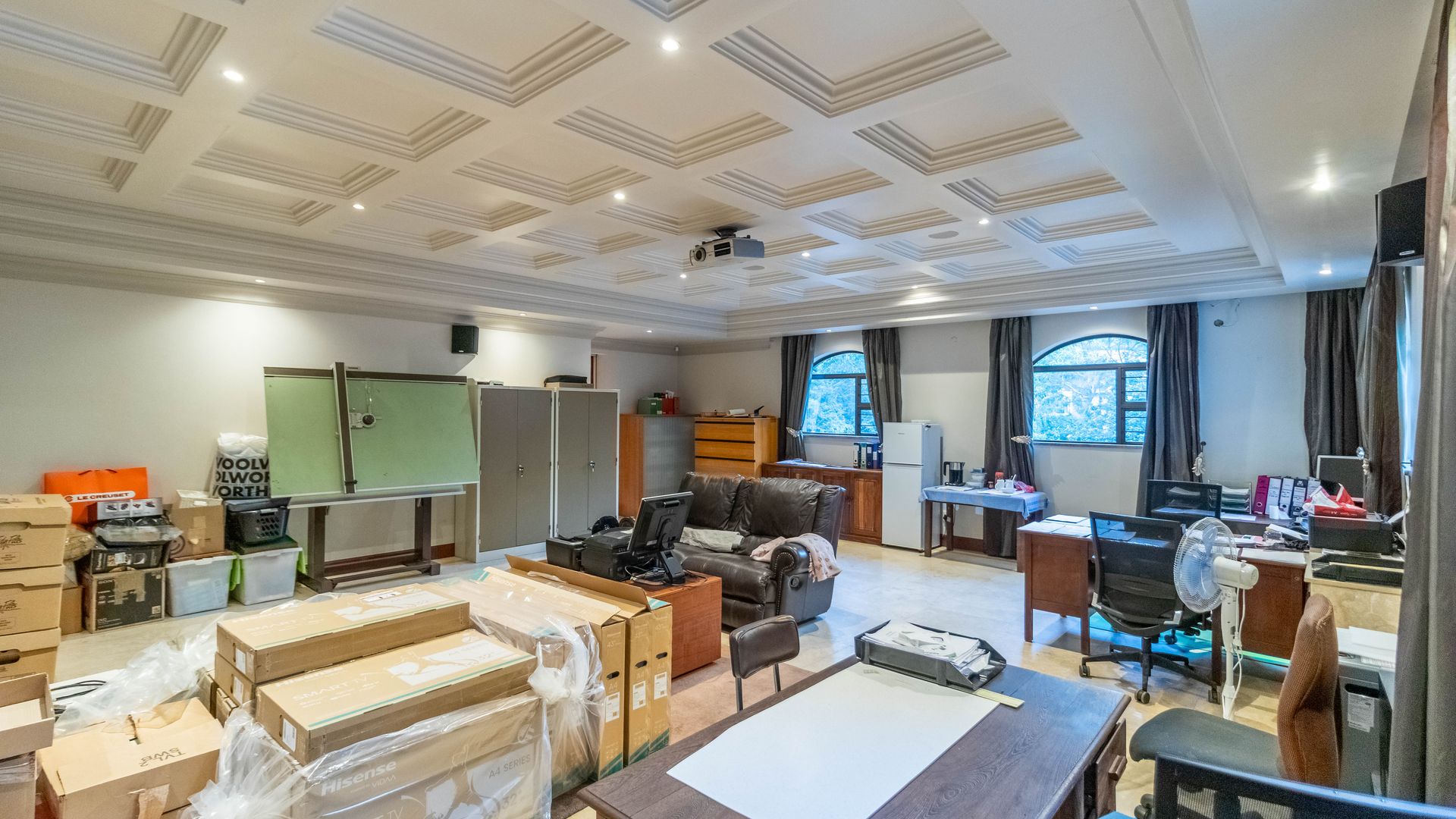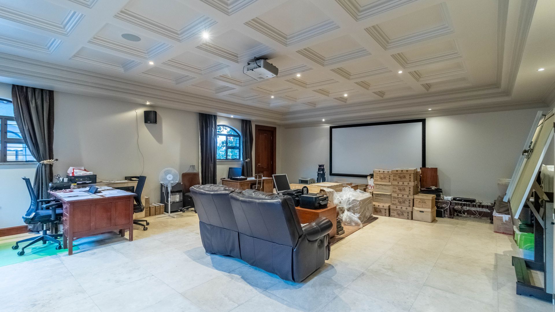 For additional space, there's a separate theater room or office with its own entrance, plus a separate cottage with a kitchen, gas stove, bathroom, and a bedroom with a balcony, offering 70sqm of living space.