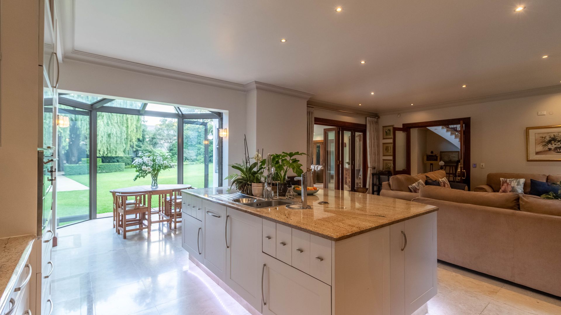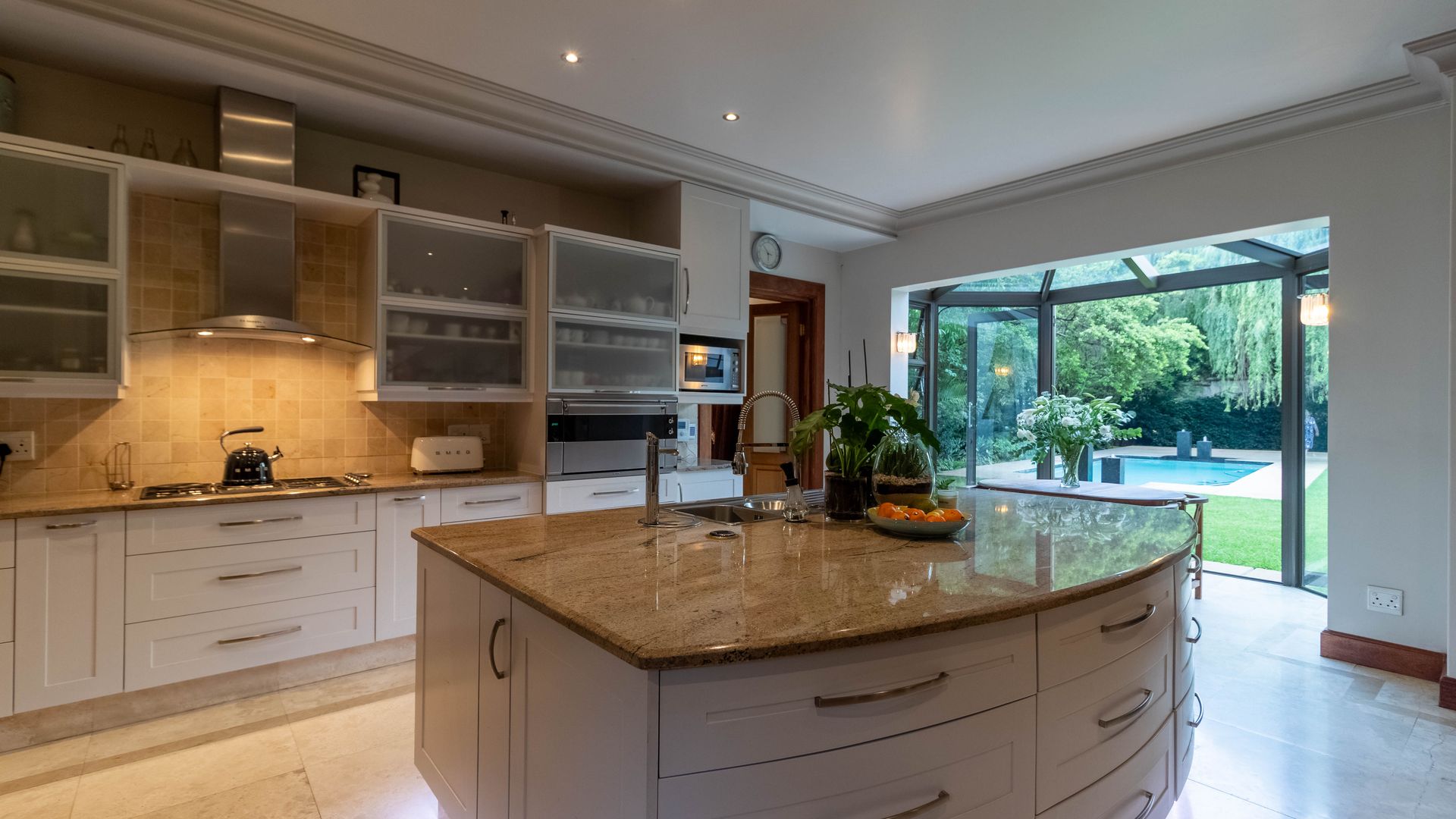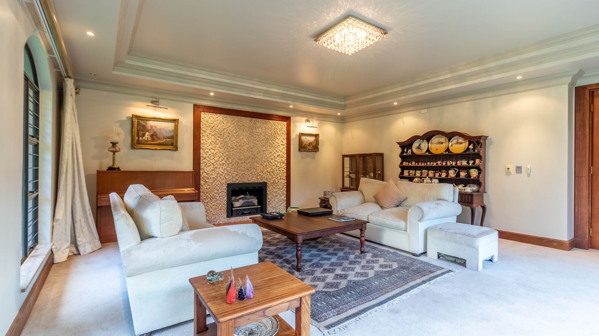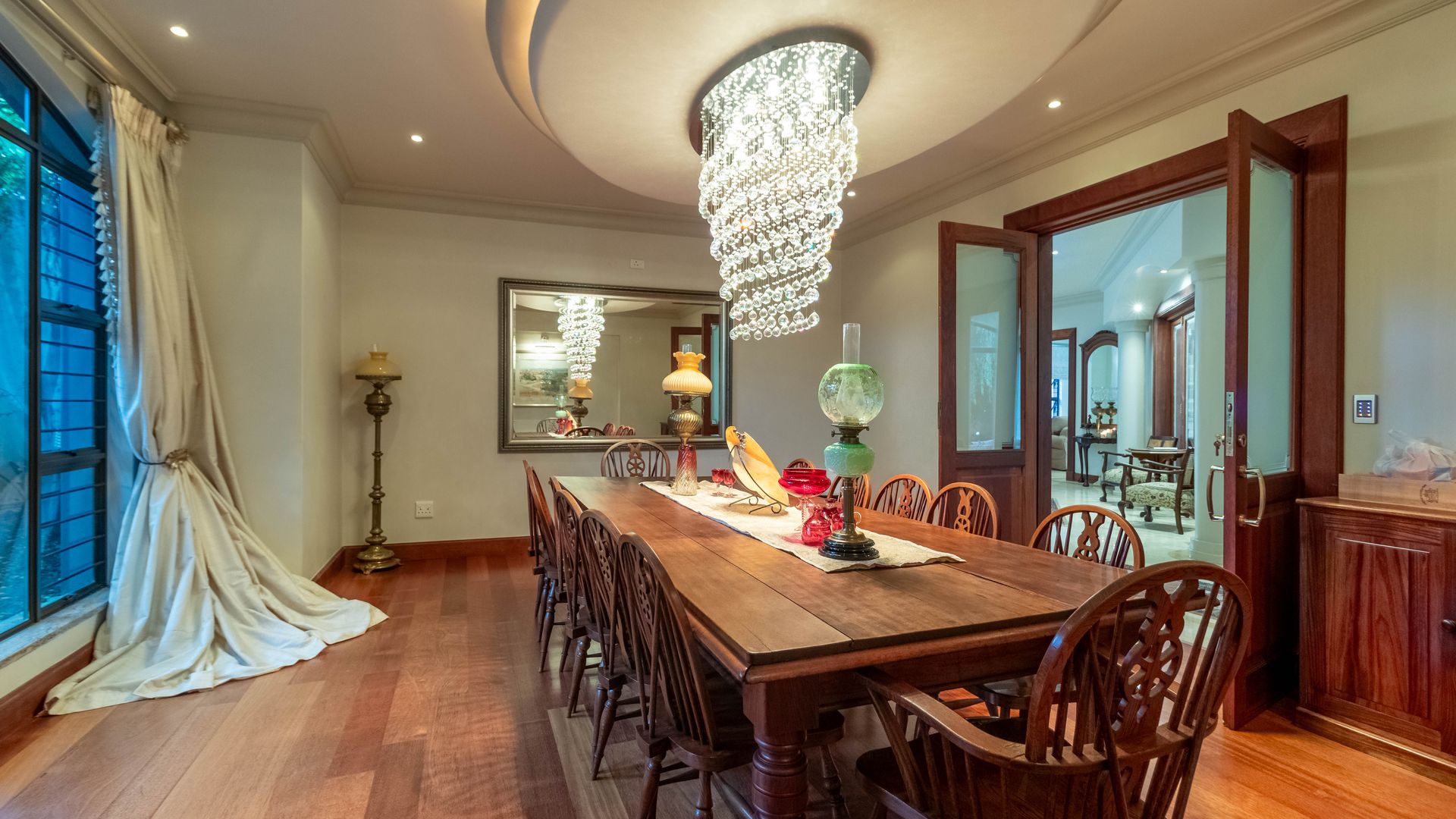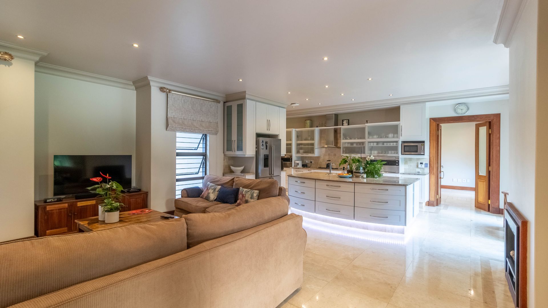 This exquisite house for sale offers luxurious living with exceptional features throughout. The entrance hall welcomes you with a breath taking experience, setting the tone for the stylish interior. The open-plan kitchen, lounge, and dining area are perfect for entertaining, with a center island featuring prep bowls, granite countertops, and top-of-the-line appliances, including two SMEG eye-level ovens and a gas hob. The kitchen comes complete with an imported instant boiling water tap.There’s also a separate scullery and laundry room for added convenience. There is a separate spacious office for working from home, and for the wine connoisseur a few steps down you have a large wine cellar
