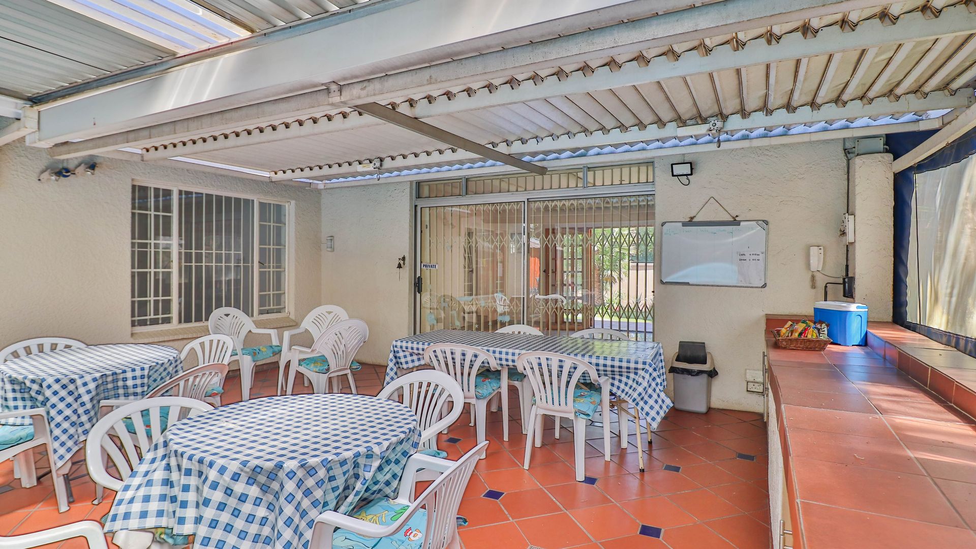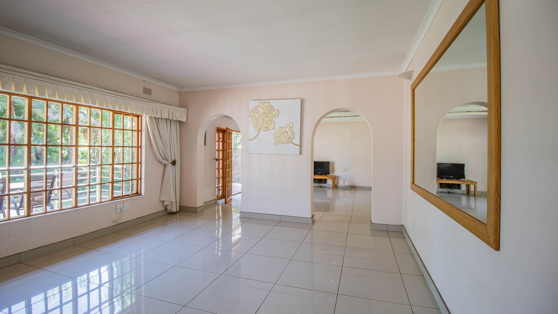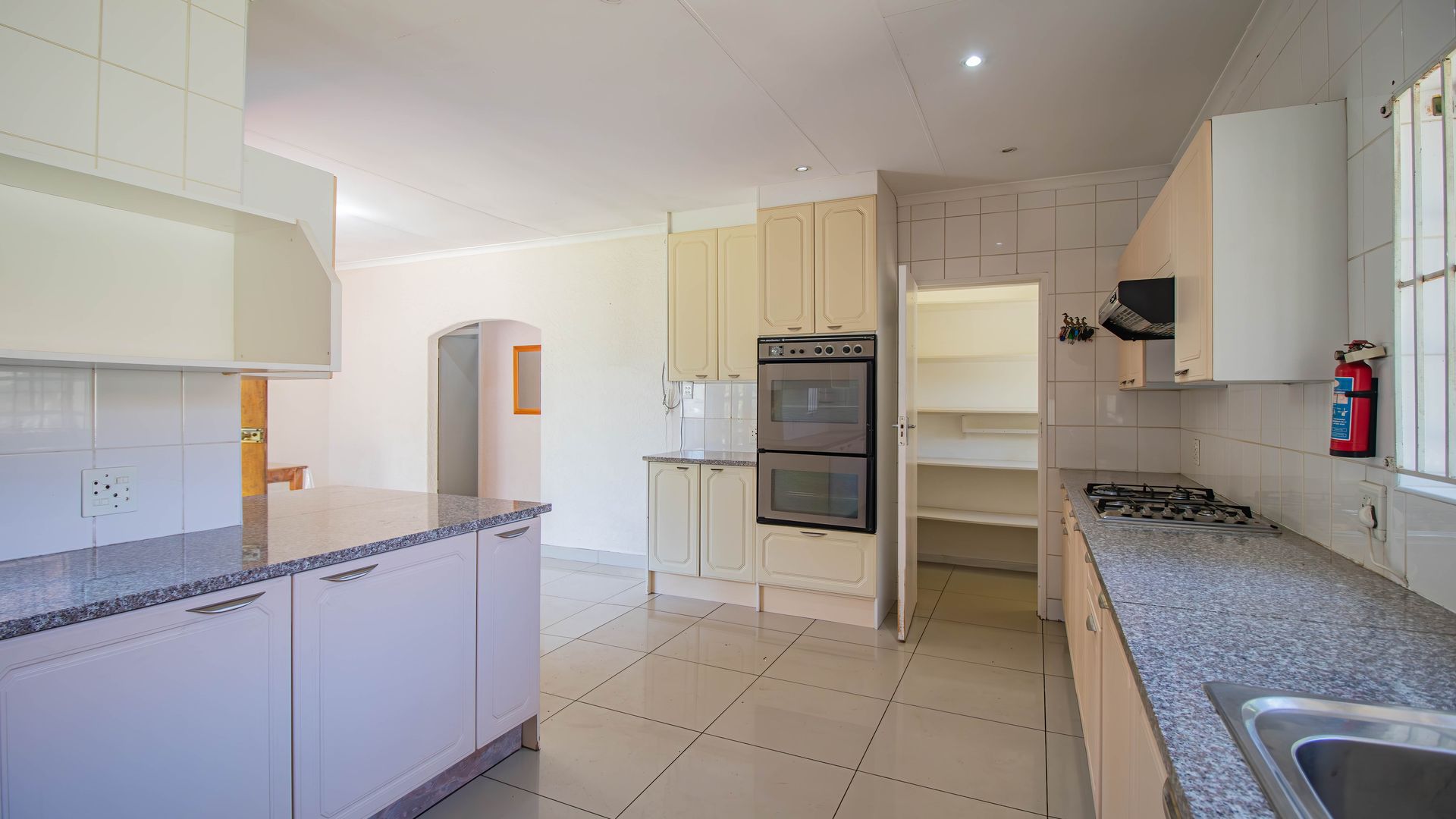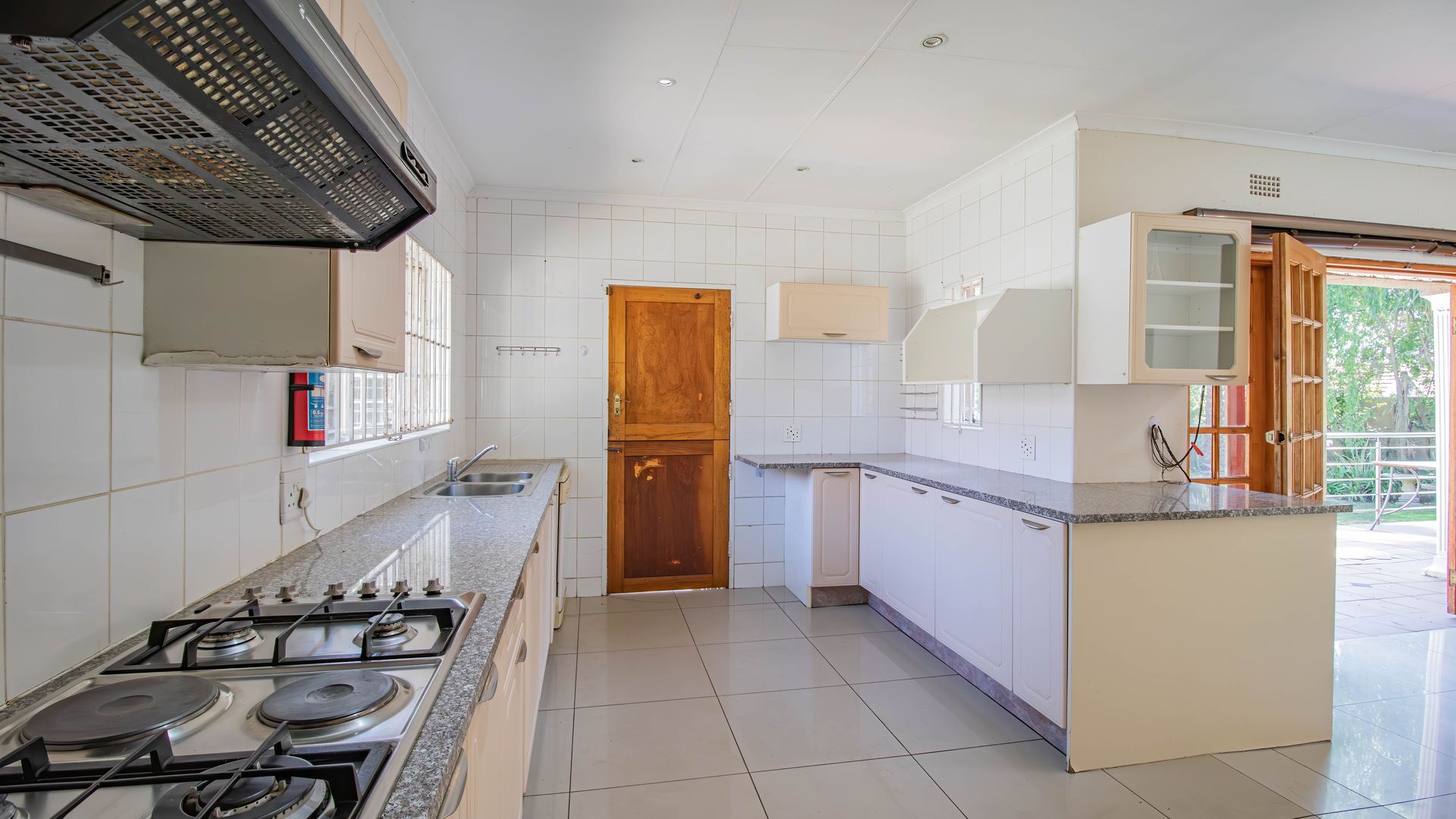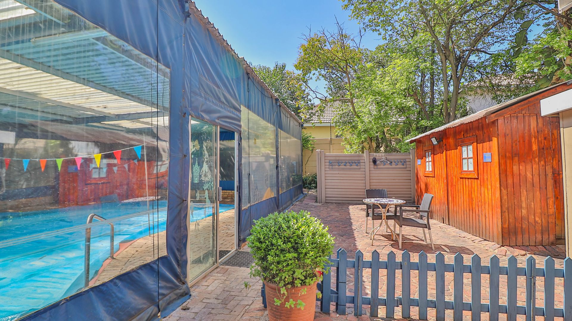 The main house has welcoming French doors leading from the vast garden, to a front patio which is perfect for al-fresco dining on a warm Summer evening! The dining area and an open-plan lounge with wide windows reflecting loads of light, flows onto the spacious kitchen which boasts a gas stove, granite tops and attractive built-in cupboards as well as an impressive walk-in pantry. The reception room has sliding doors opening onto a huge enclosed entertainment/function area featuring a handy working surface and fitted cupboards. This is adjacent to a prominent large swimming pool that is heated and covered for versatility.