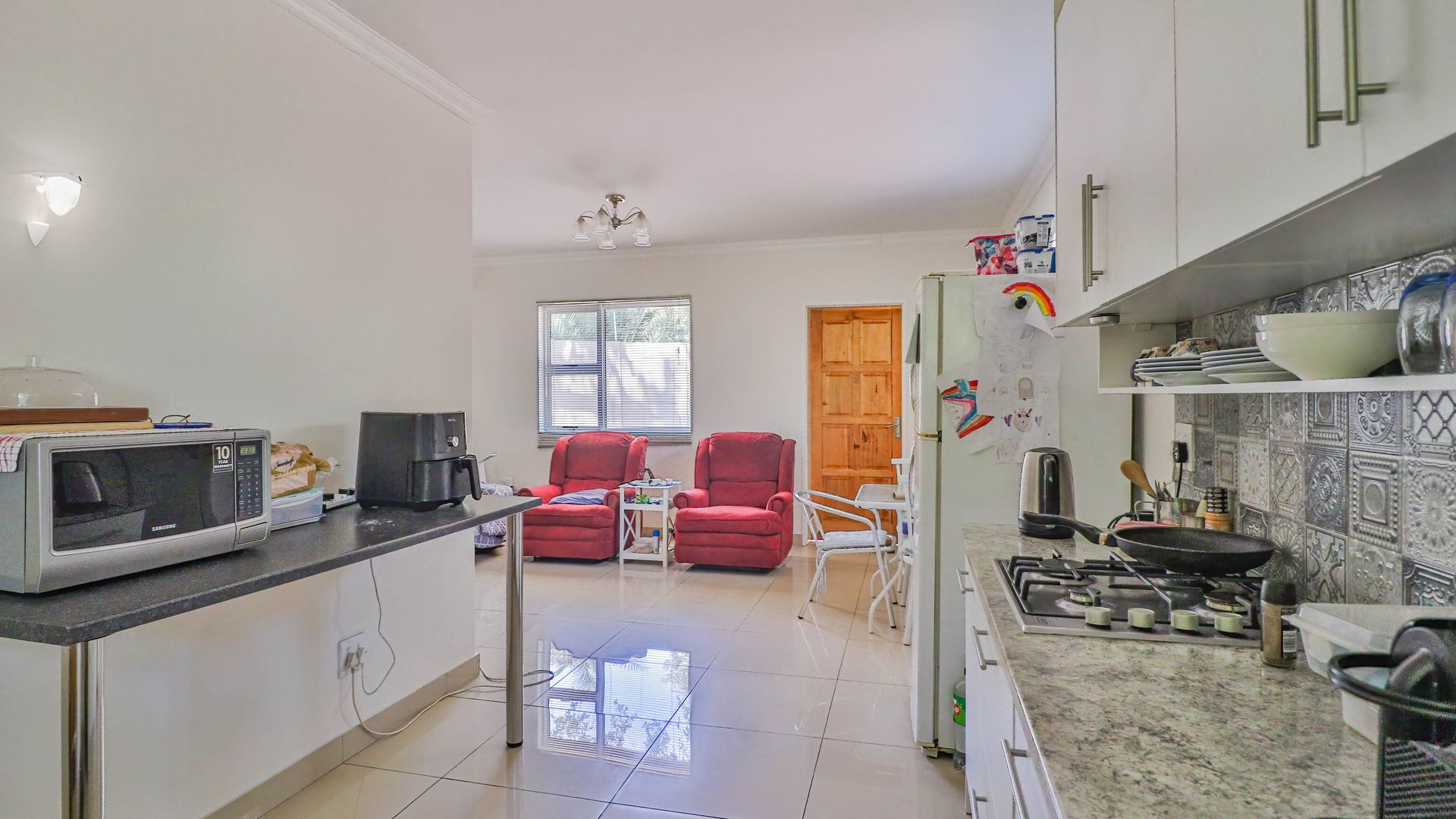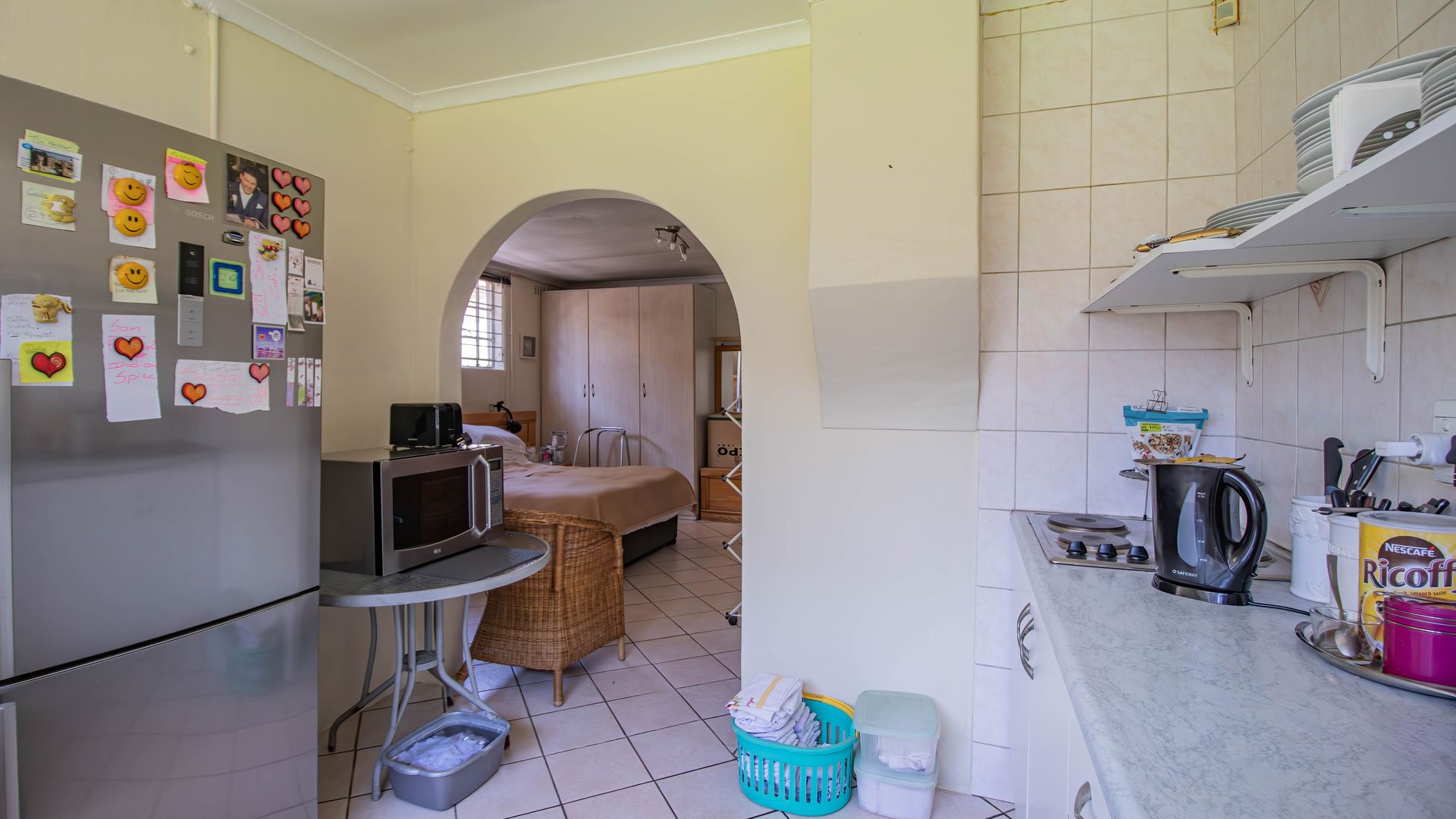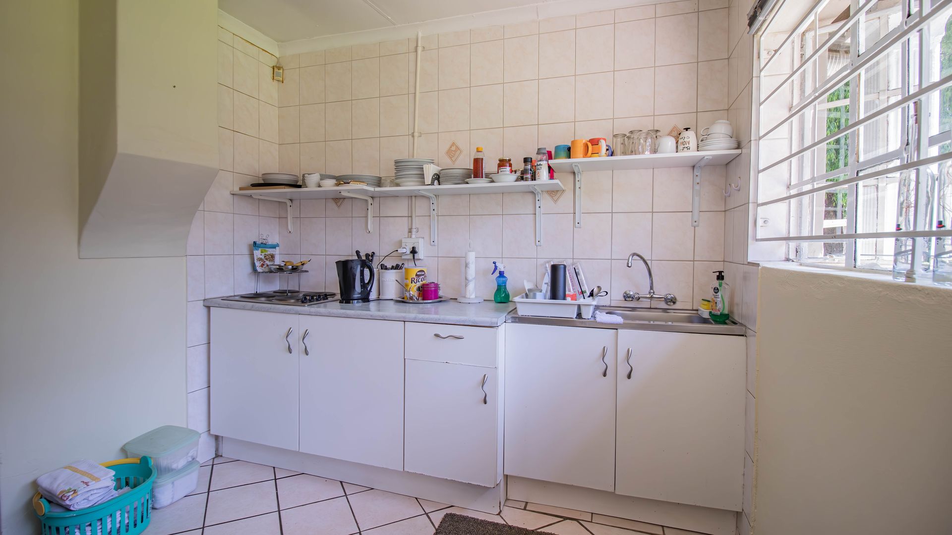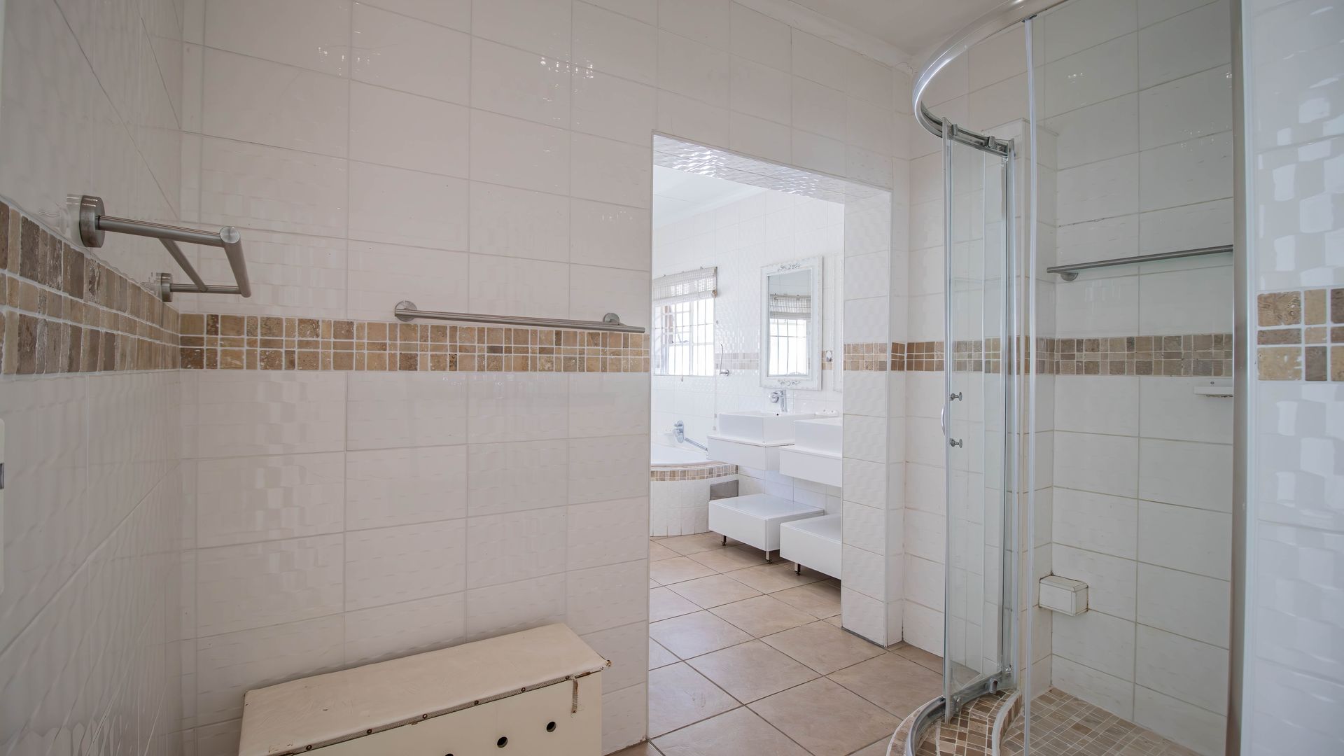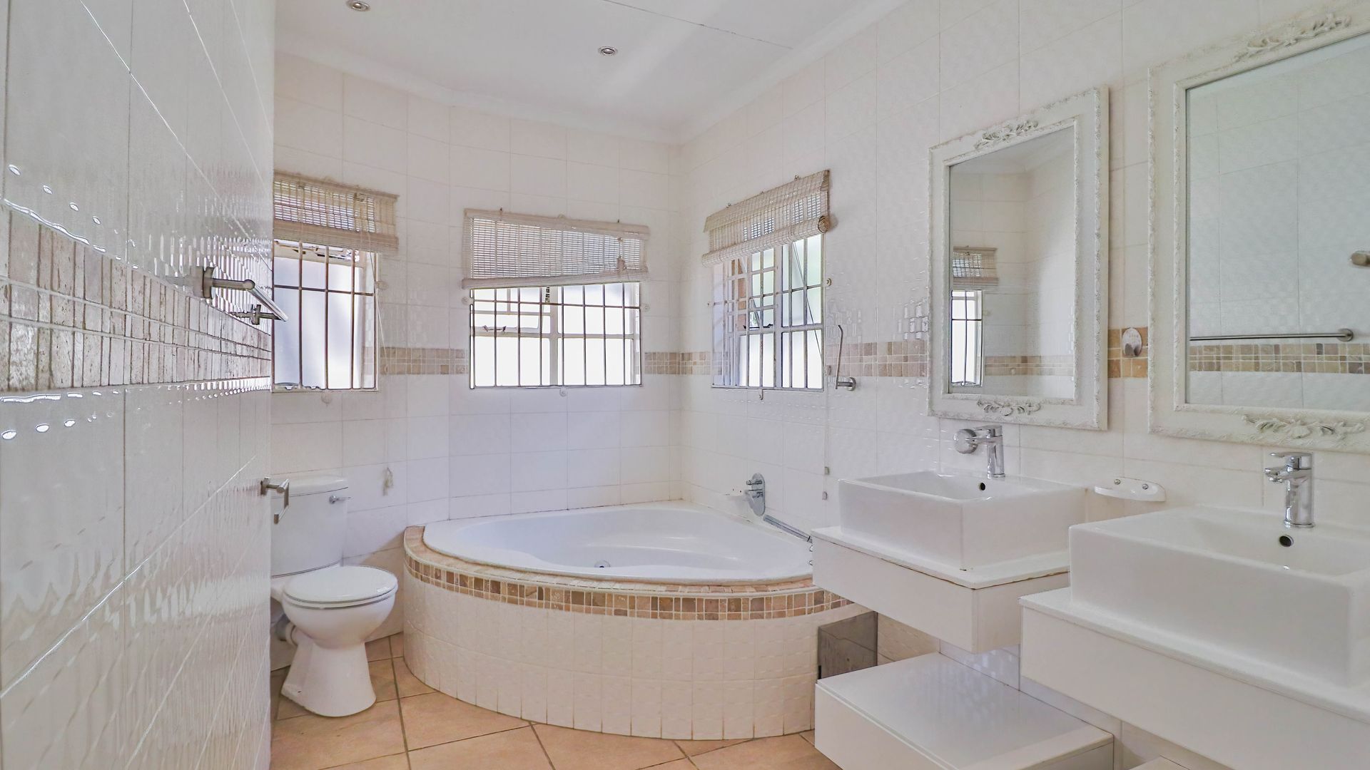 The main house has welcoming French doors leading from the vast garden, to a front patio which is perfect for al-fresco dining on a warm Summer evening! The dining area and an open-plan lounge with wide windows reflecting loads of light, flows onto the spacious kitchen which boasts a gas stove, granite tops and attractive built-in cupboards as well as an impressive walk-in pantry. The reception room has sliding doors opening onto a huge enclosed entertainment/function area featuring a handy working surface and fitted cupboards. This is adjacent to a prominent large swimming pool that is heated and covered for versatility.