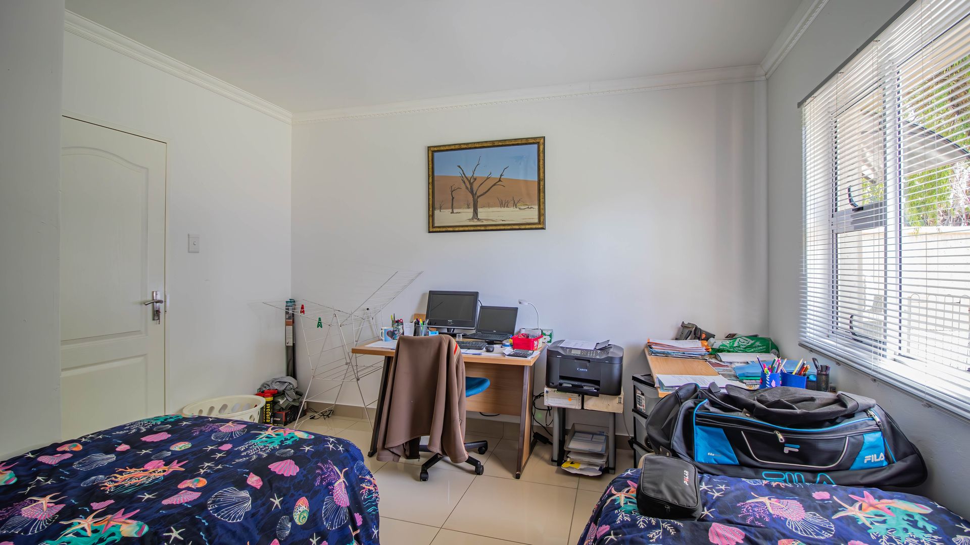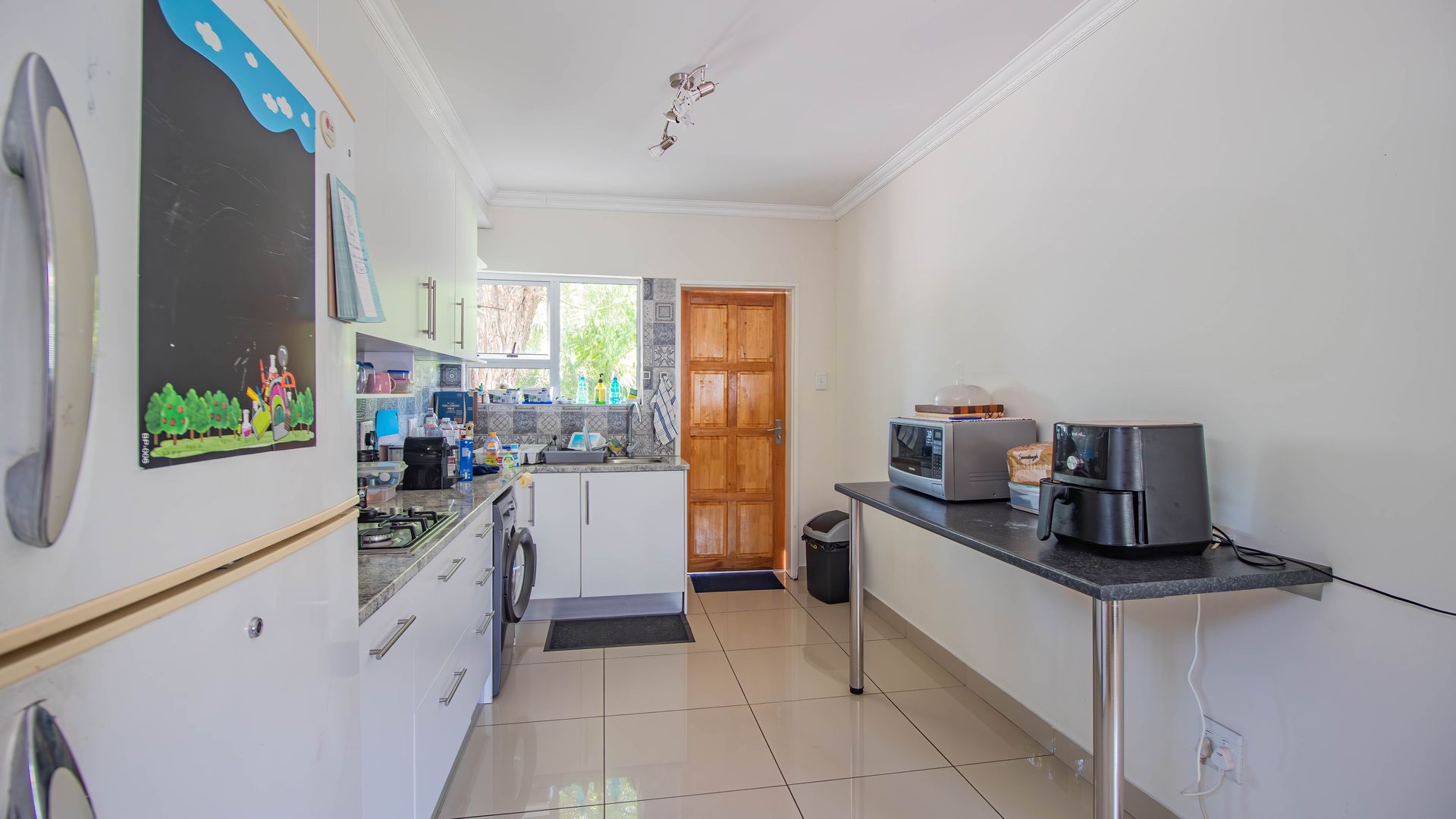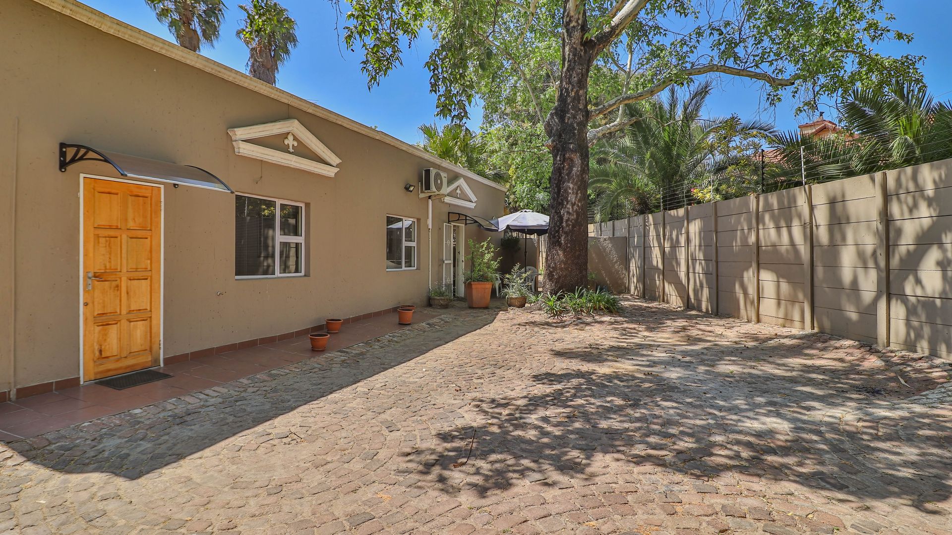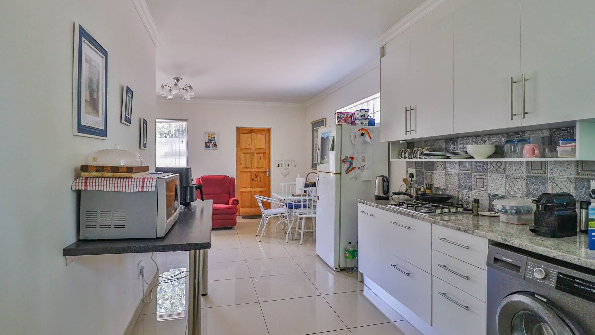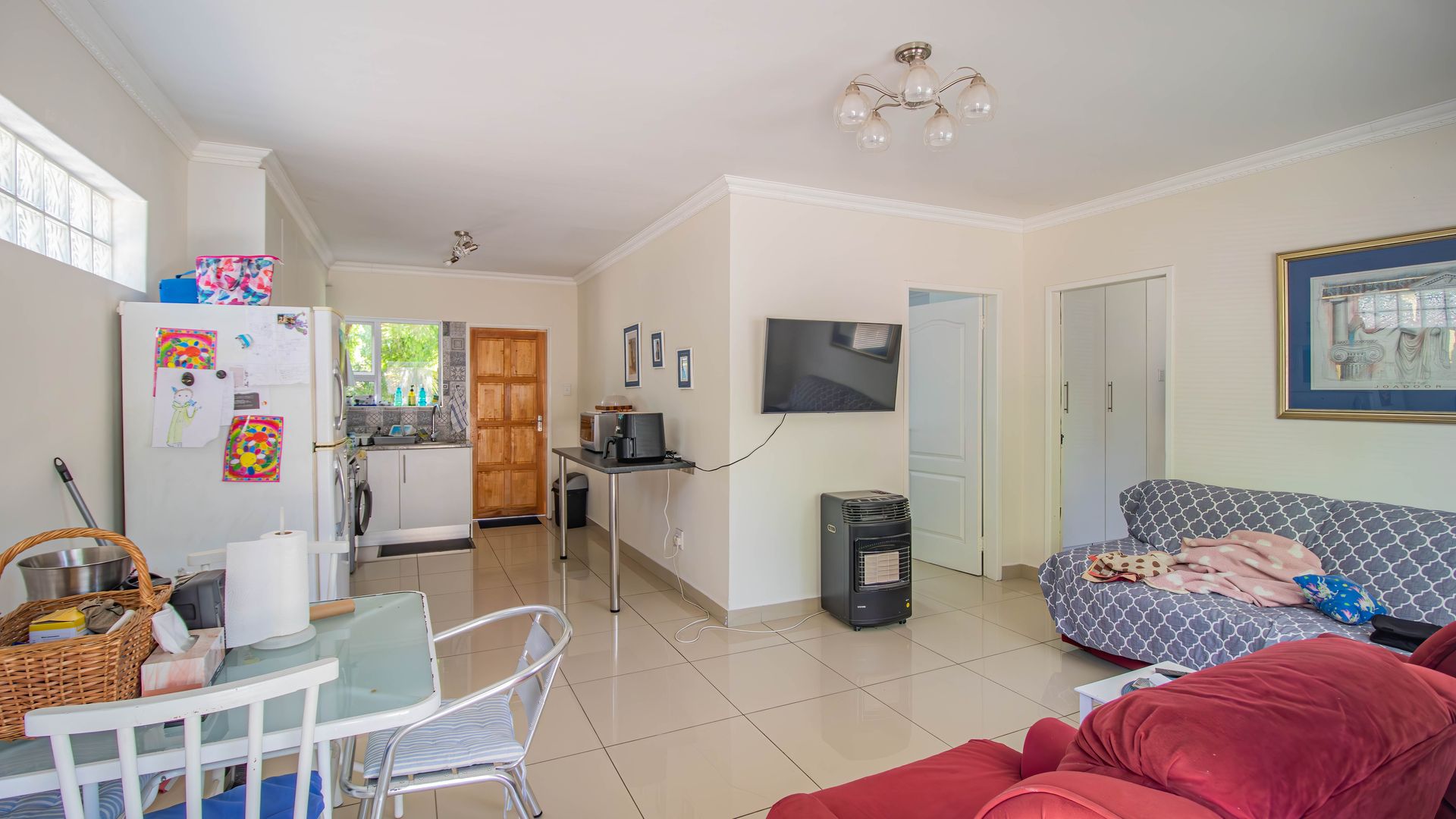 The main house has welcoming French doors leading from the vast garden, to a front patio which is perfect for al-fresco dining on a warm Summer evening! The dining area and an open-plan lounge with wide windows reflecting loads of light, flows onto the spacious kitchen which boasts a gas stove, granite tops and attractive built-in cupboards as well as an impressive walk-in pantry. The reception room has sliding doors opening onto a huge enclosed entertainment/function area featuring a handy working surface and fitted cupboards. This is adjacent to a prominent large swimming pool that is heated and covered for versatility.
