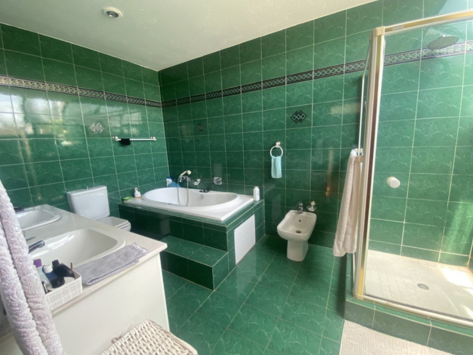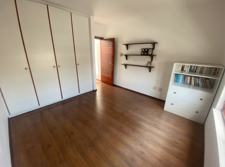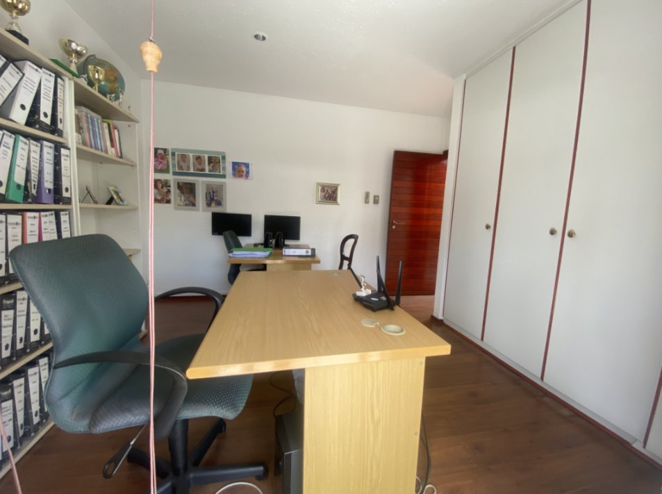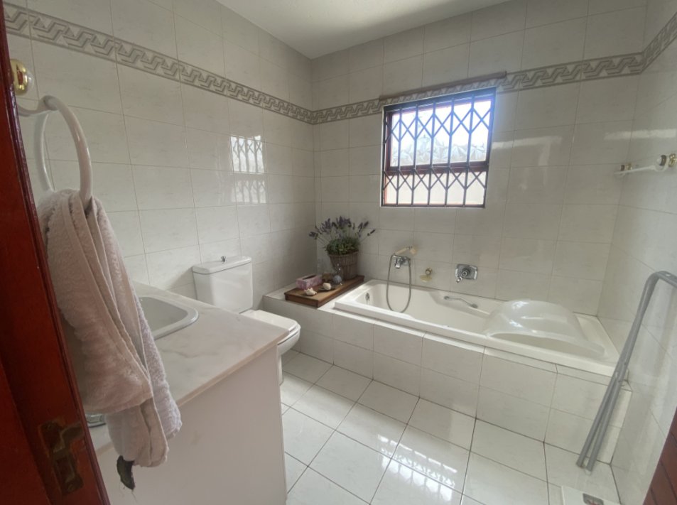 There are four bathrooms, one en-suite, and a guest toilet for added convenience. The property also includes additional parking, a double garage, staff quarters, and great outdoor amenities such as a pool and a braai area.