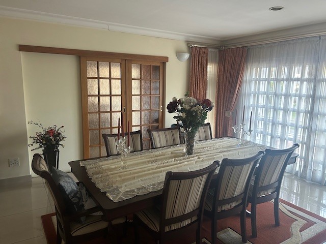 Additional features include a study, guest toilet, main en-suite, staff rooms, and ample parking with a double garage and carport. Enjoy outdoor living with a sparkling pool, braai area, and well-maintained garden. The estate offers 24/7 security for complete peace of mind. Prepaid electricity and high-end finishes throughout complete this beautiful home. Don’t miss this rare opportunity to own in one of the area’s most sought-after estates!