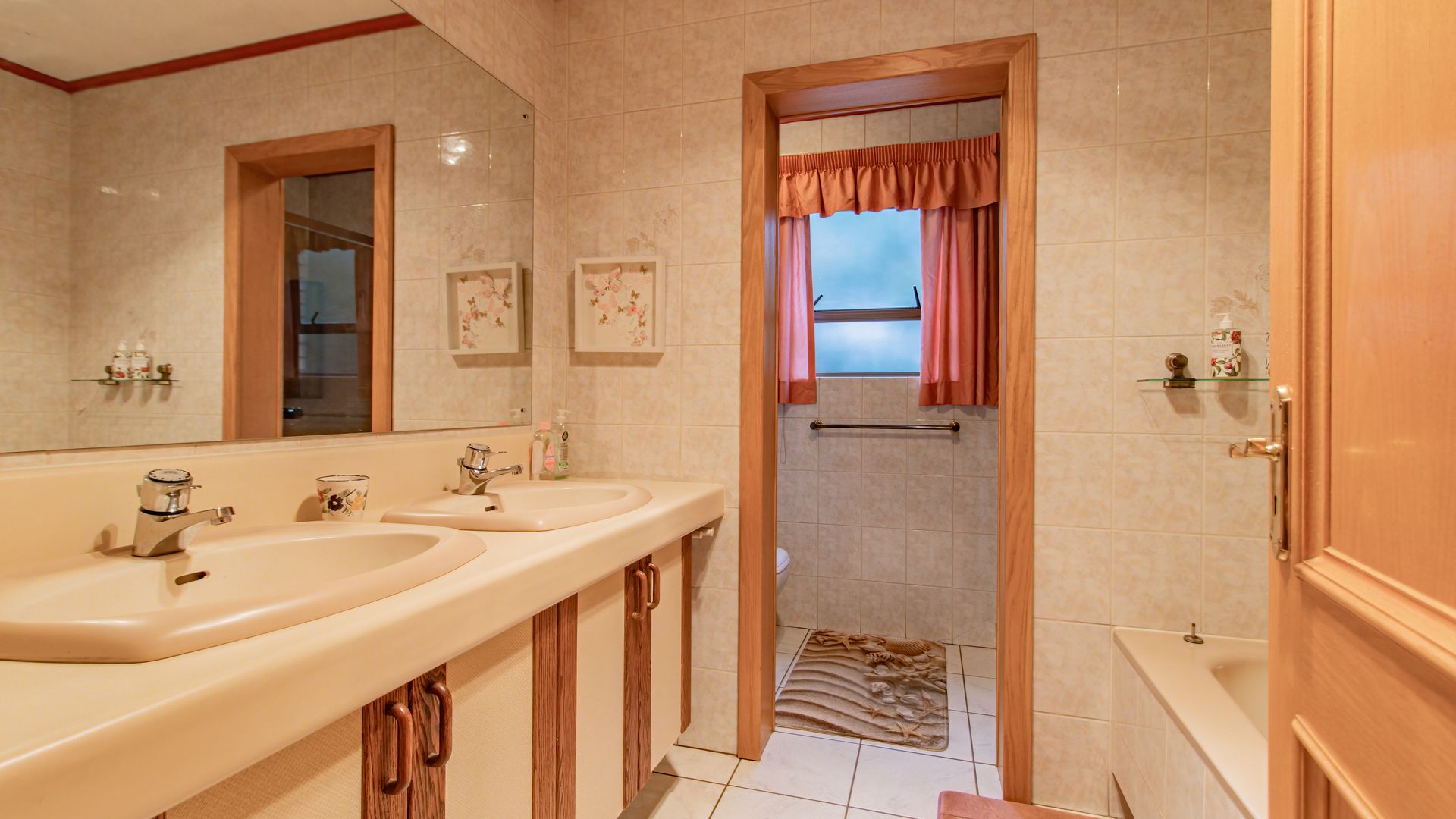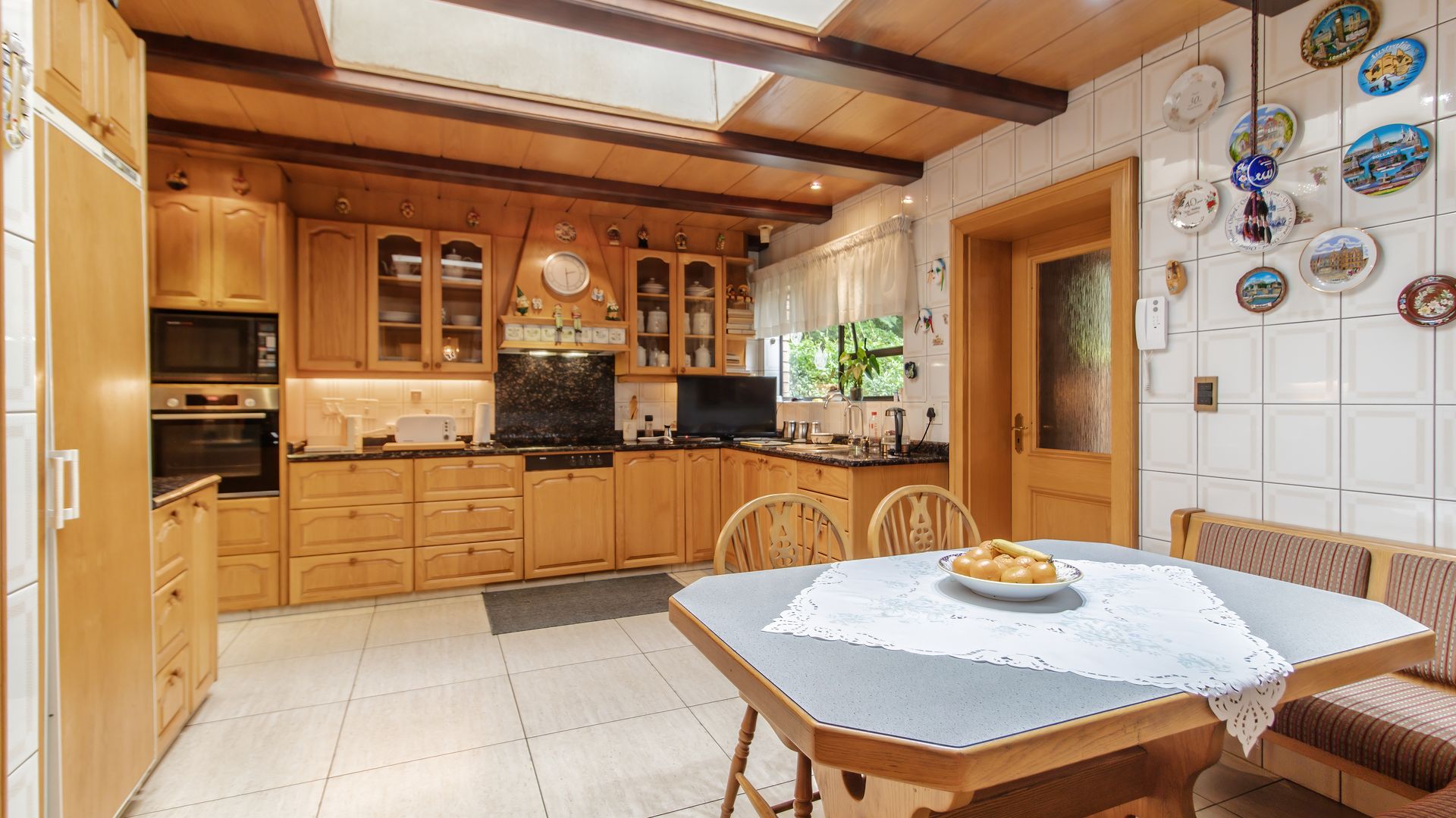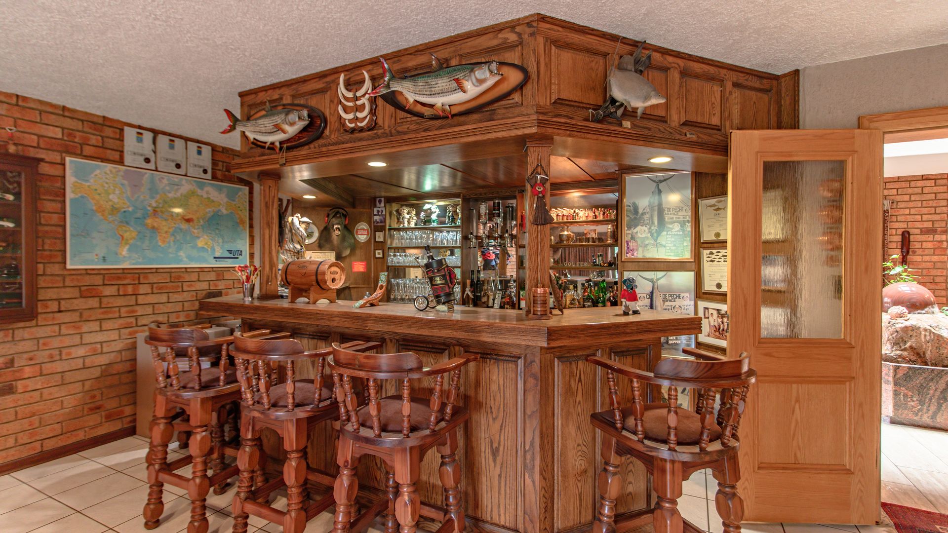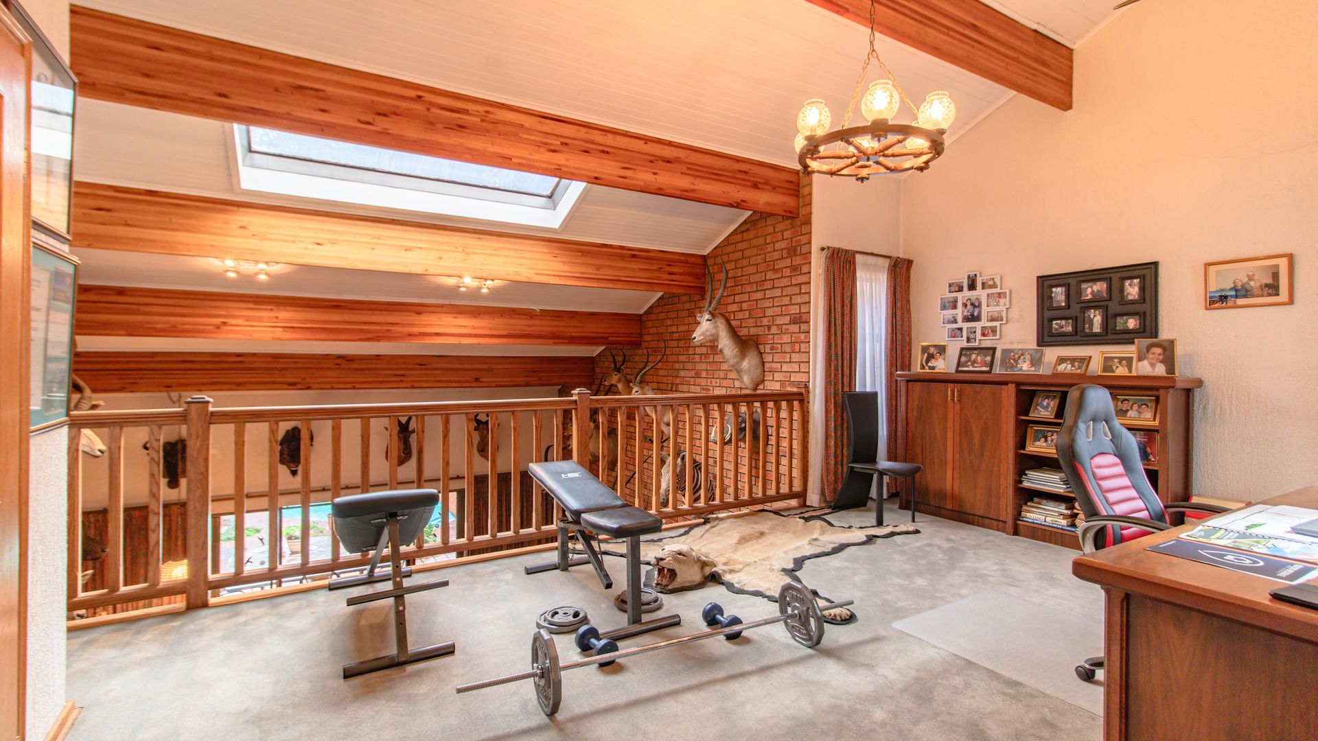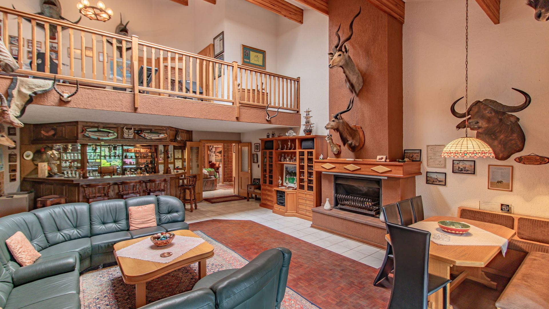 The fully fitted eat-in kitchen with a breakfast nook is a chef’s delight, featuring granite countertops, a separate scullery, laundry and pantry. The downstairs area also features a guest toilet with a steam shower.