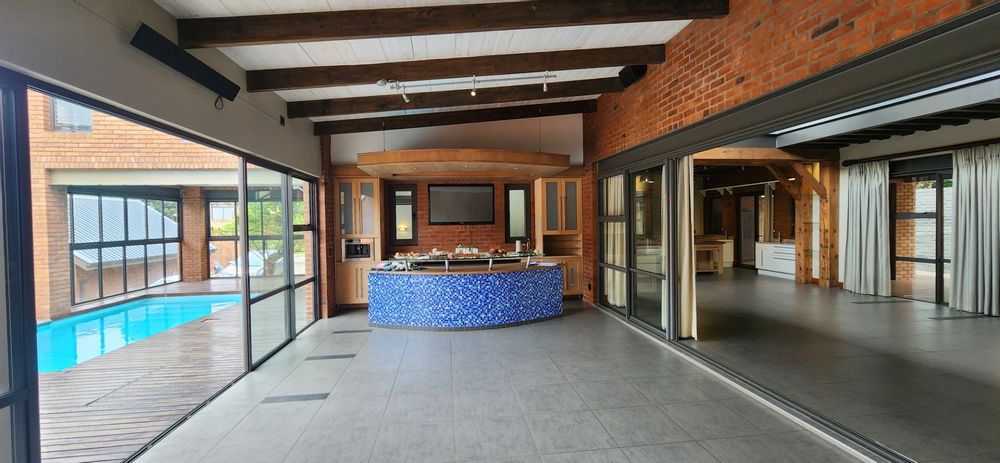 Step inside and experience the seamless flow of a fully open-plan, triple-volume living space, framed by imported Italian Murano chandeliers and extra-high doors that elevate every room. Warm wooden floors lead you through elegant dining areas, a spacious family room, and a refined study—ideal for work or quiet retreat. A built-in Morso convection stove adds ambience to the chic lounge, while a pub area creates the perfect setting for entertaining.