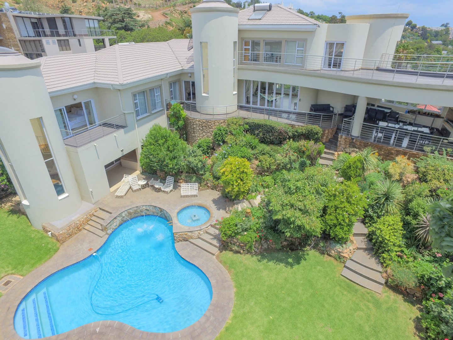 Large windows throughout the home allow natural light to flood the interiors while framing memorable Johannesburg sunrises and sunsets from multiple vantage points.