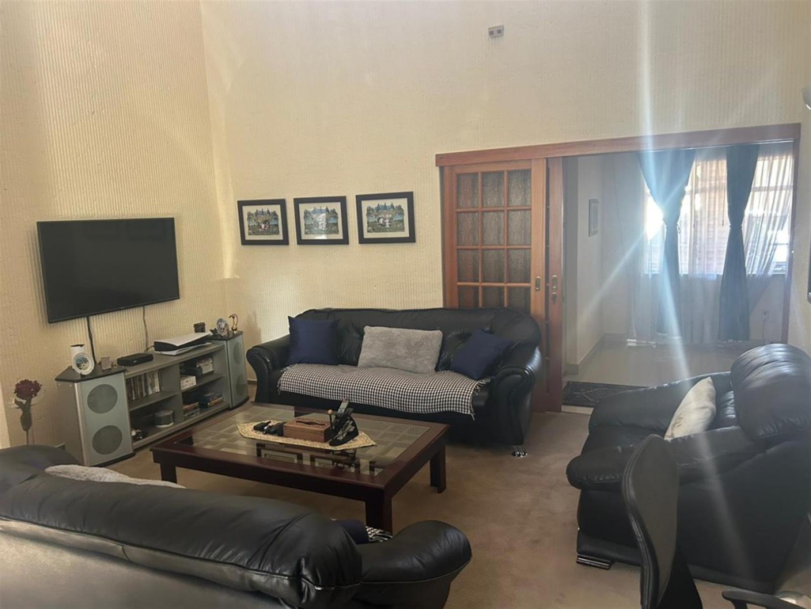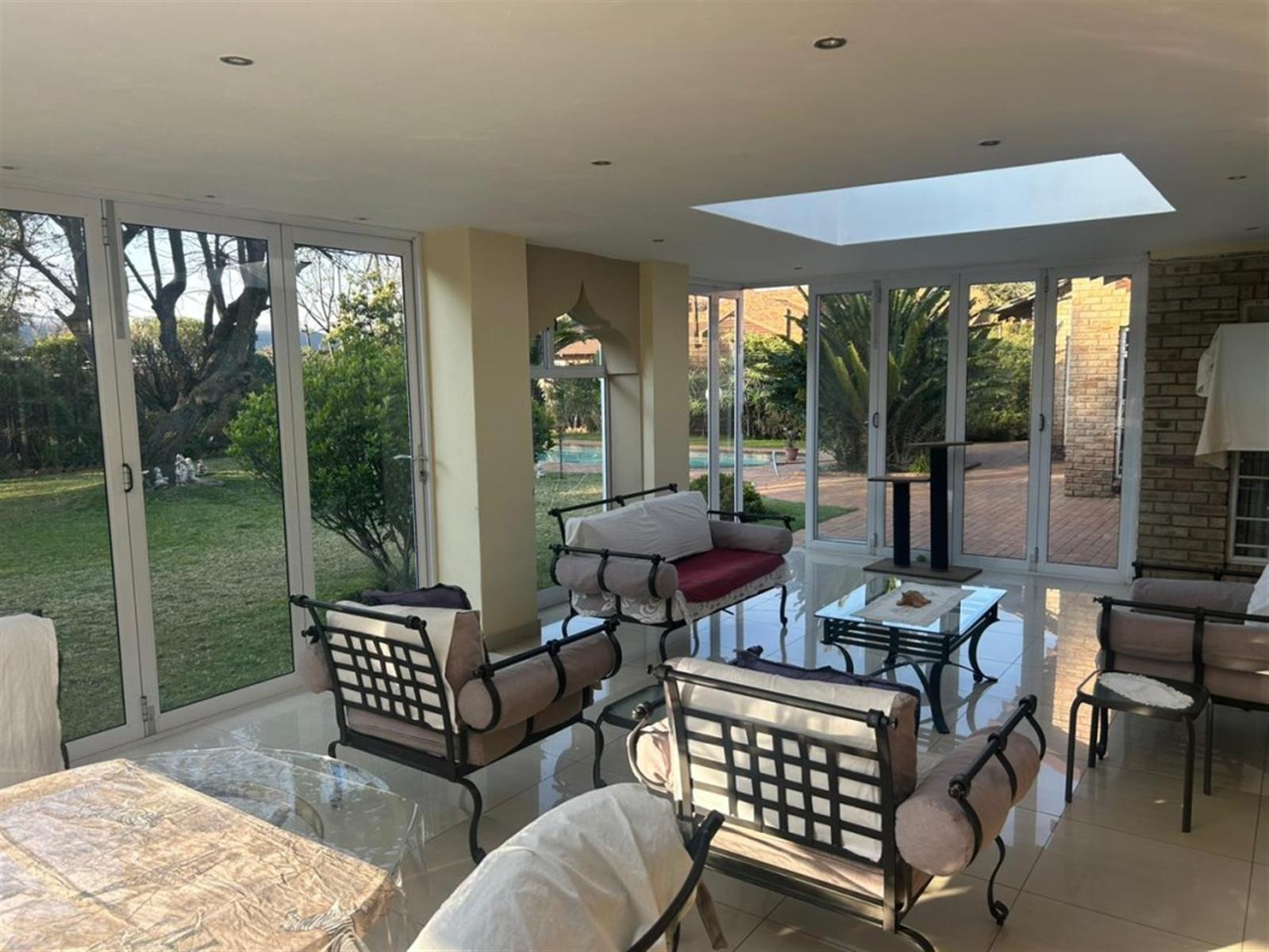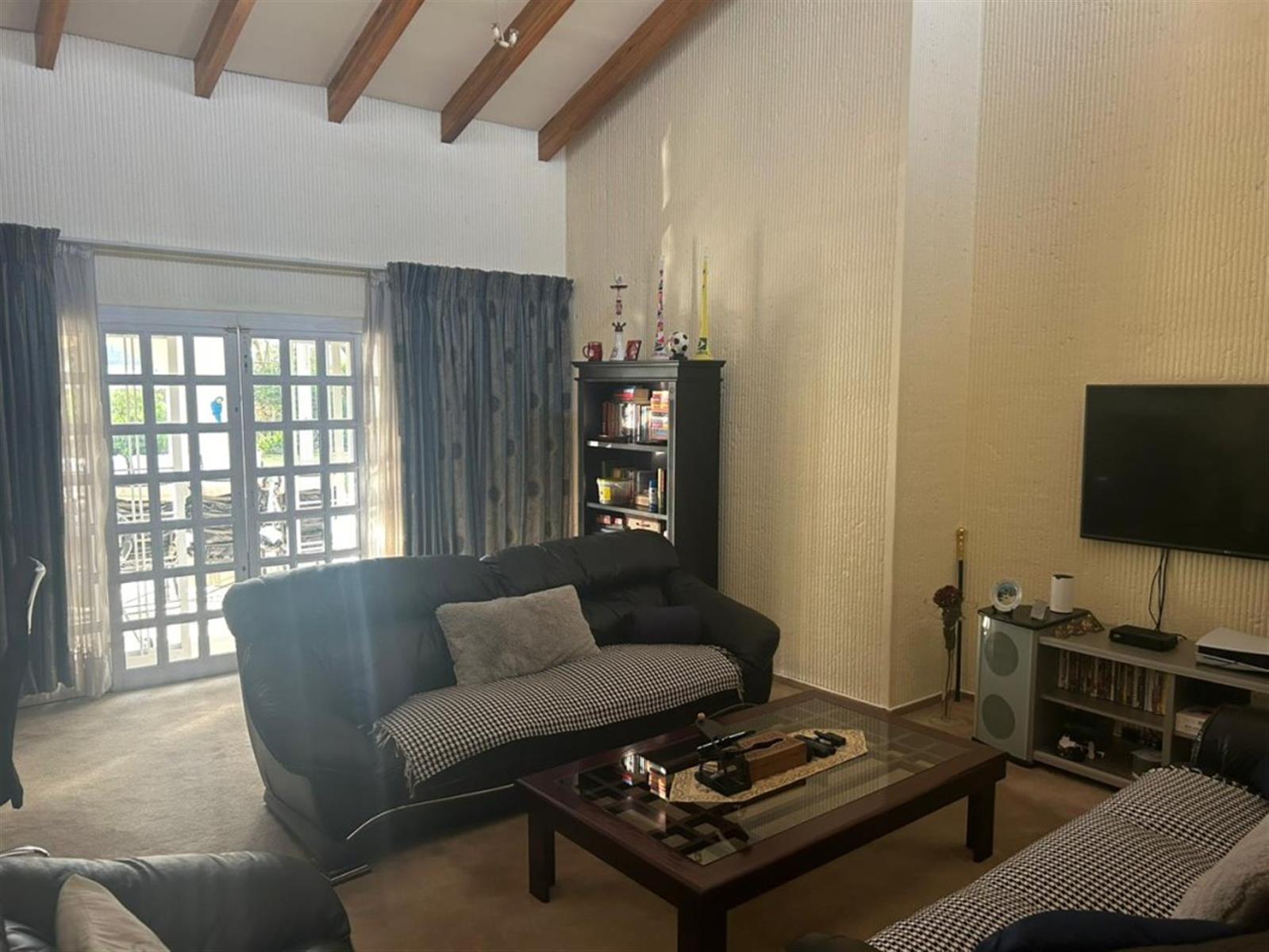 Step outside to a large sun-drenched patio overlooking the manicured garden, sparkling swimming pool, and built-in braai area—an inviting space to entertain or simply unwind with family.