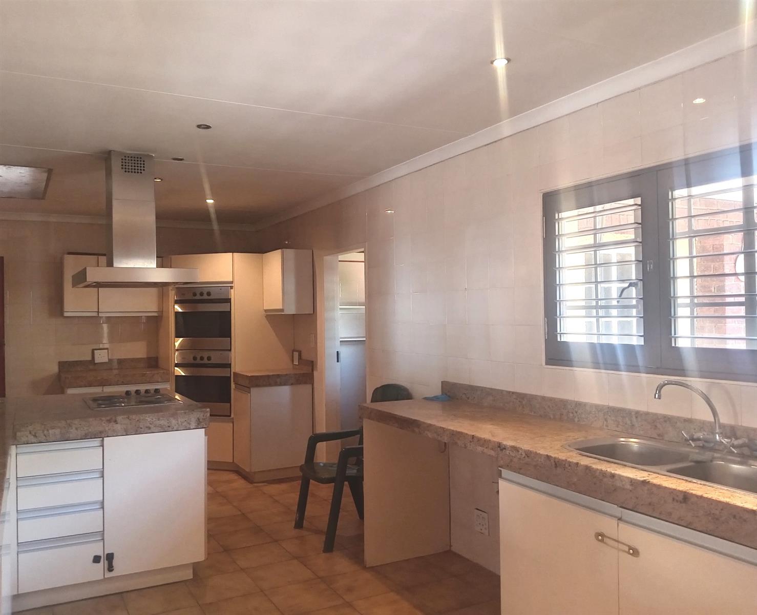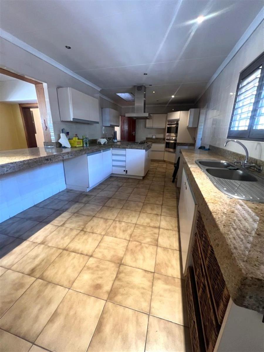 The kitchen is spacious and practical, complete with a separate scullery and breakfast nook, looking into a sunny dining area, perfect for casual family meals. A private TV lounge with a second fireplace provides a warm spot for relaxation, while the spacious entertainment lounge opens out to the garden and sparkling pool, ideal for effortless indoor-outdoor living.
