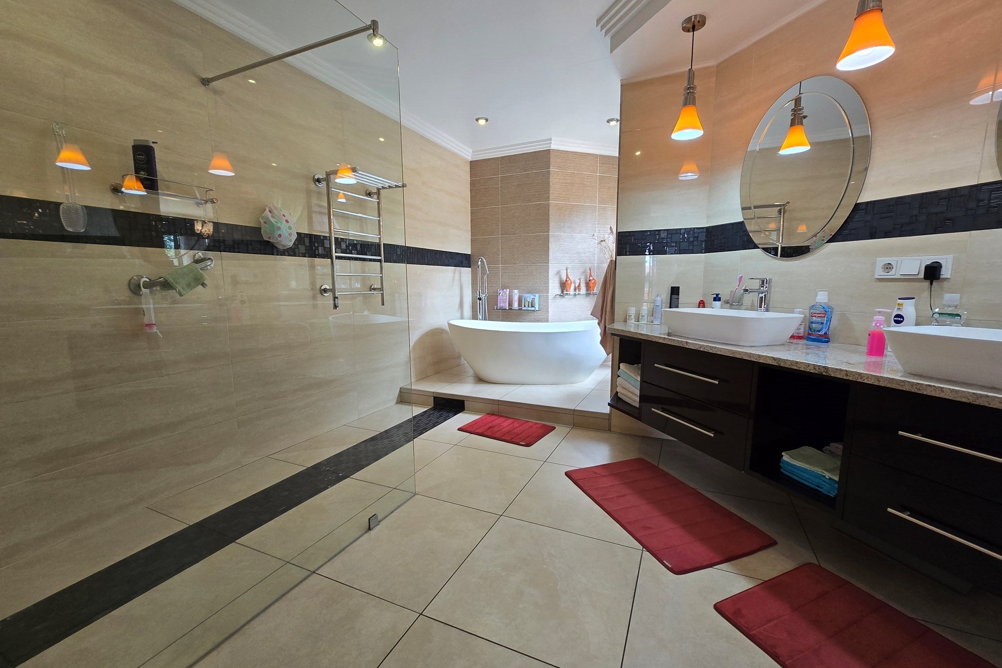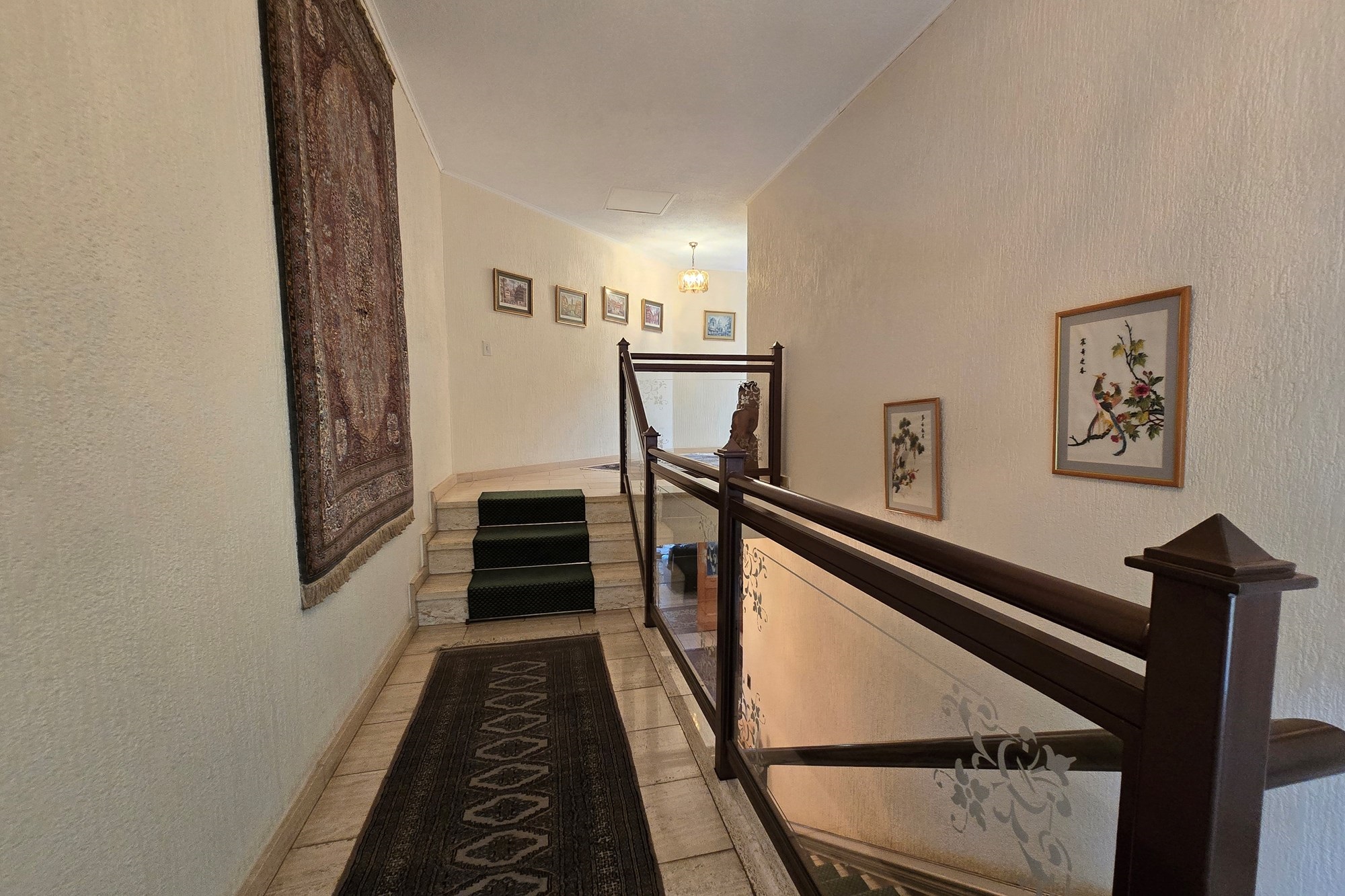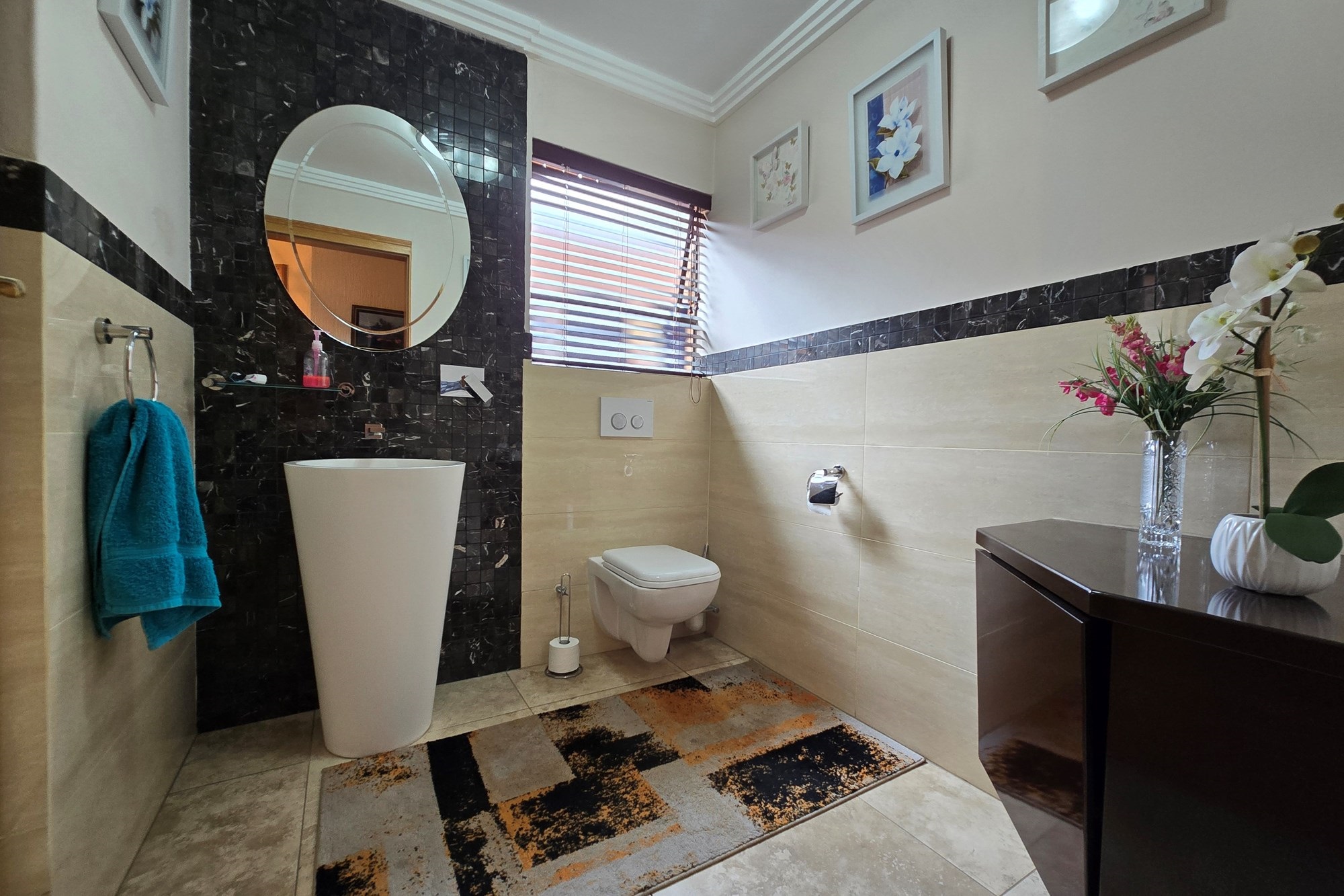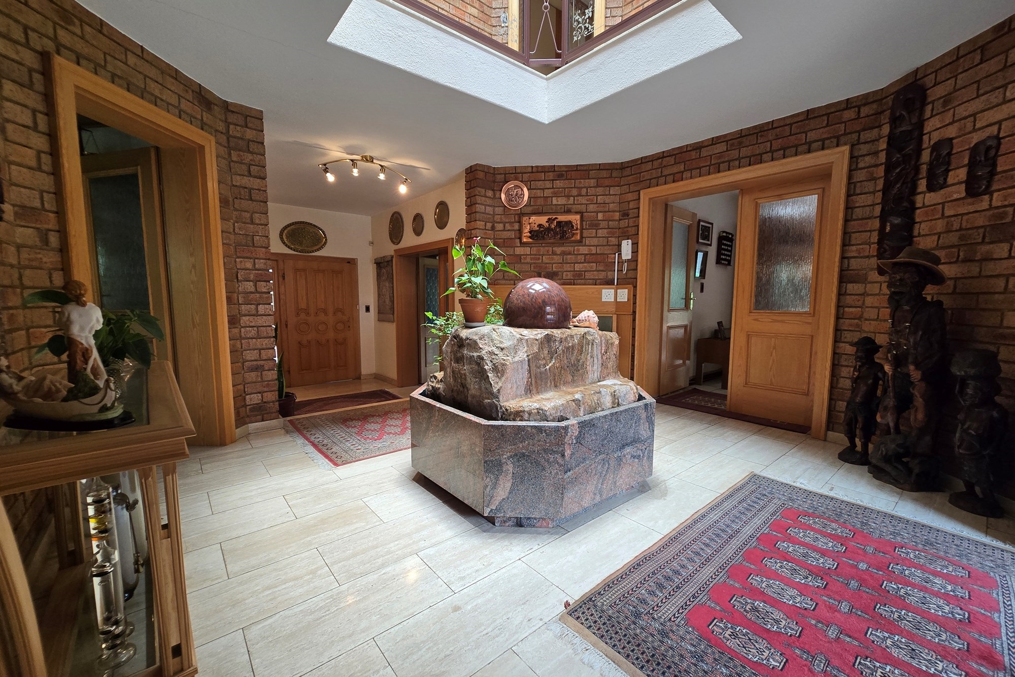 The well-appointed kitchen, complemented by a scullery, has all you need. The Guest loo hosts a steam room and opposite you will find the wine cellar, enhancing the luxurious lifestyle.