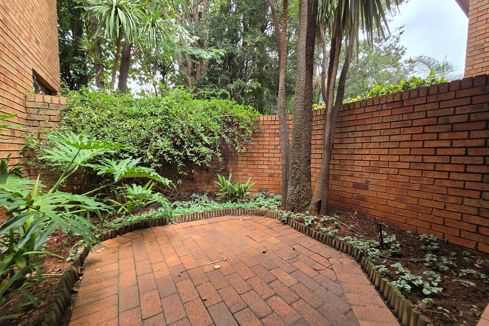 Upstairs, two bedrooms share a full bathroom and a balcony, while the main bedroom enjoys a private balcony overlooking the serene garden.